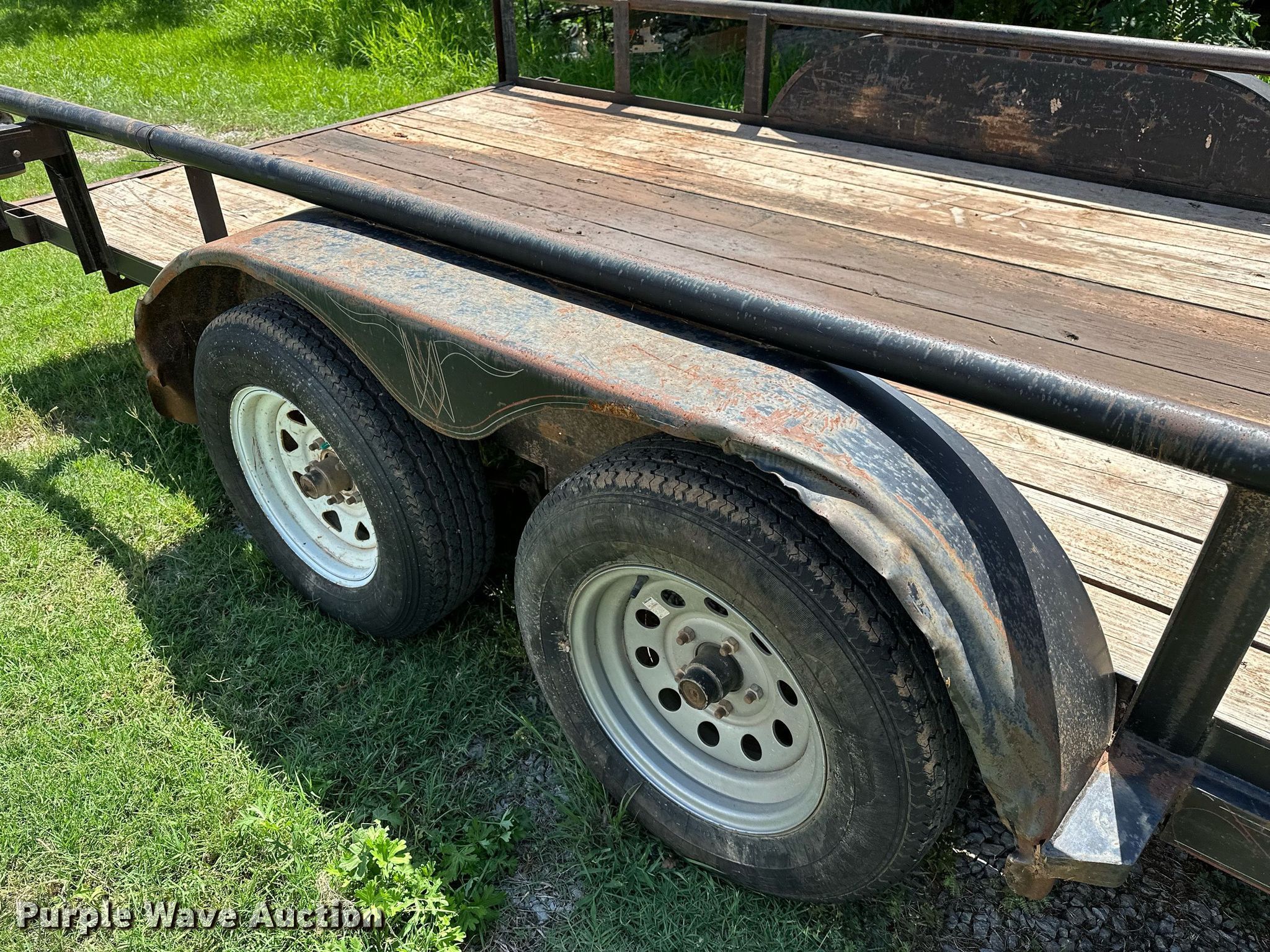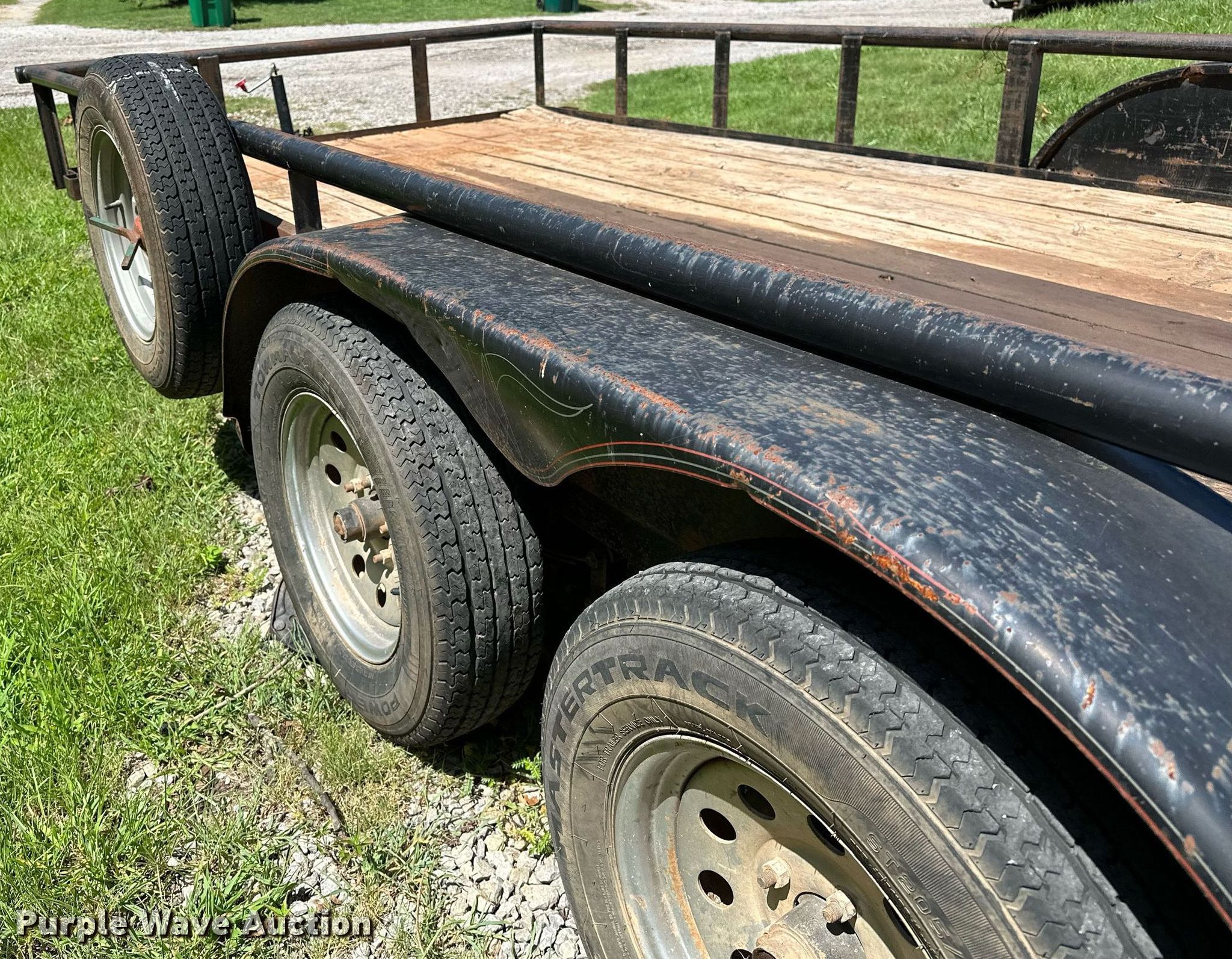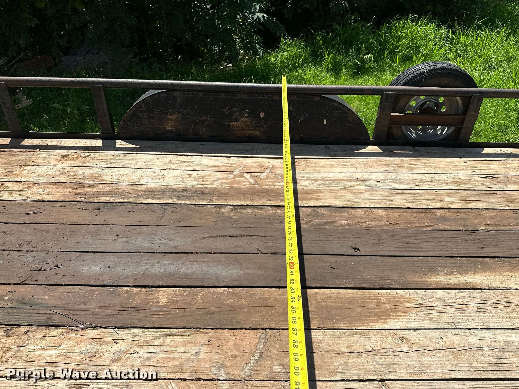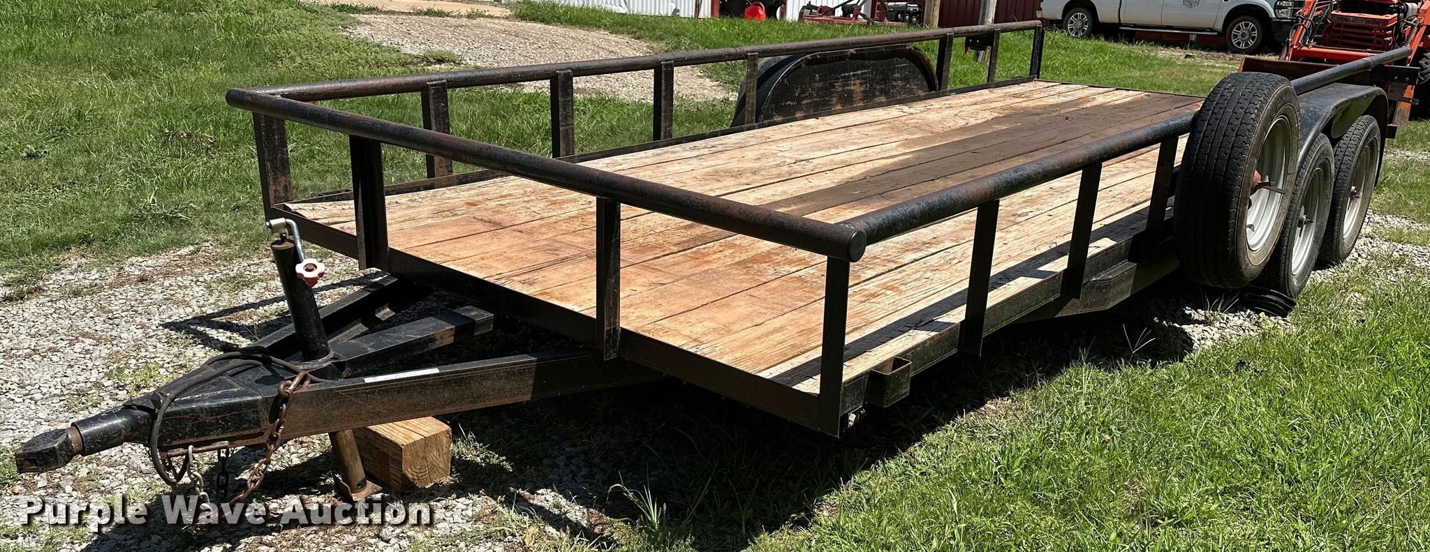 Purple Wave is selling a used Car or Utility Trailer in Oklahoma. This item is a Shop built utility trailer with the following: Overall: 21' 8" L x 102" W, Deck: 18' 2" L x 82" W, Ramps: Manual, Length: 60"