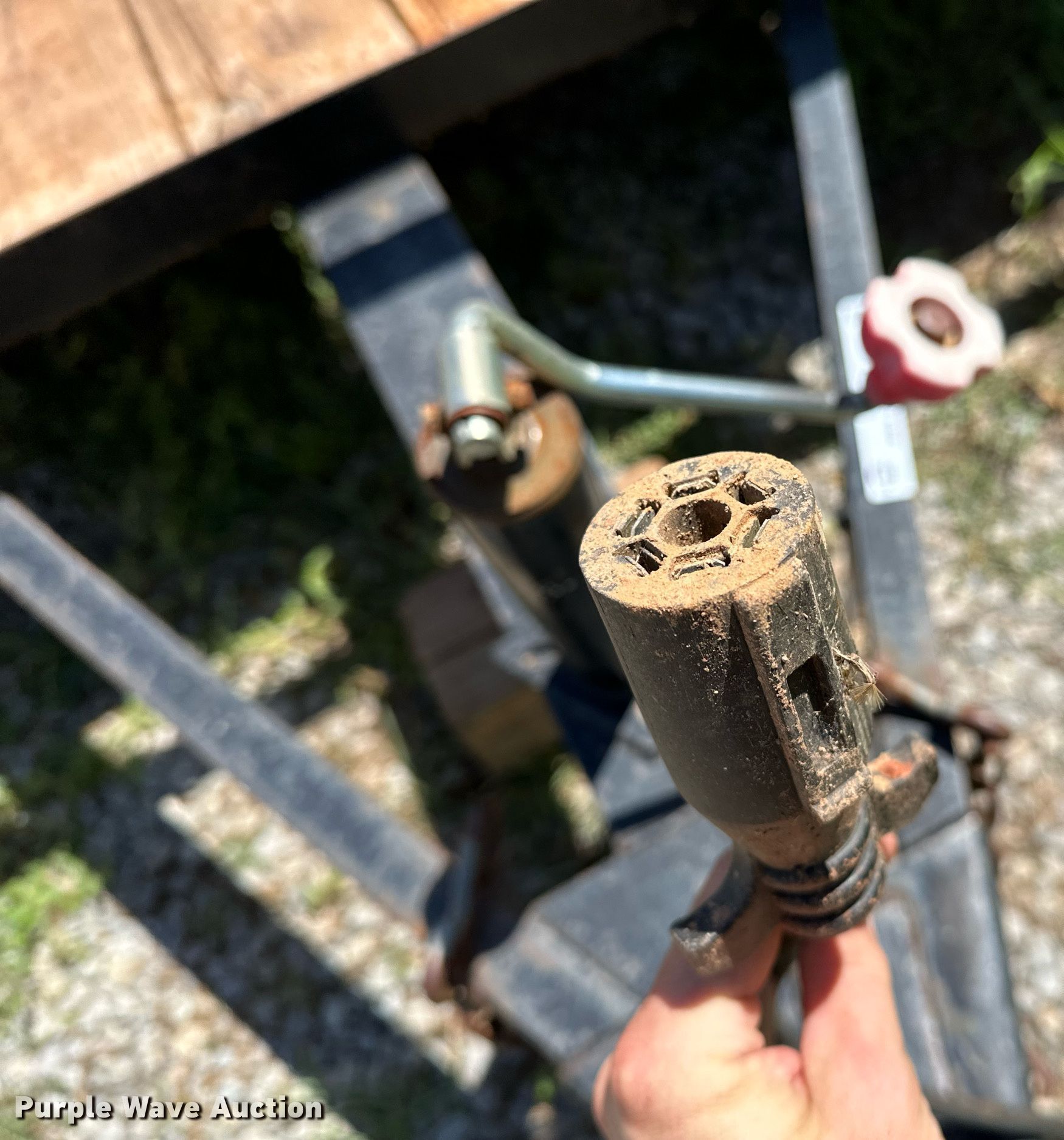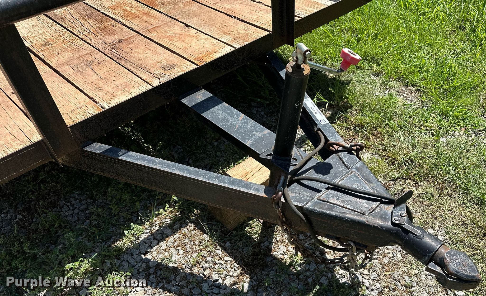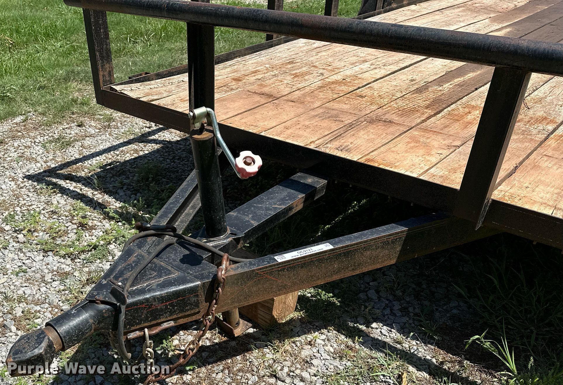 Shop built utility trailer. Dimensions. Overall: 21' 8" L x 102" W, Deck: 18' 2" L x 82" W, Ramps: Manual Length: 60". Features Deck type: Wood. Chassis Ball hitch: 2", Landing gear: Single, Suspension: Spring, Brakes: Electric, Axles: Tandem. Tires Steel wheels, Size: 205/75R15. Notes Non-operational trailer lights. Transfer of ownership documentation will be a bill of sale. Town of Ripley. Ripley, OK 74062
