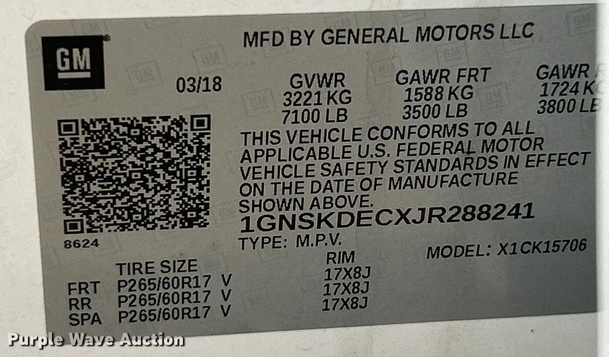 Purple Wave is selling a used Passenger Vehicle in Missouri. This item is a 2018 Chevrolet Tahoe Police SUV with the following: Miles: 122,623 on odometer, VIN: 1GNSKDECXJR288241
