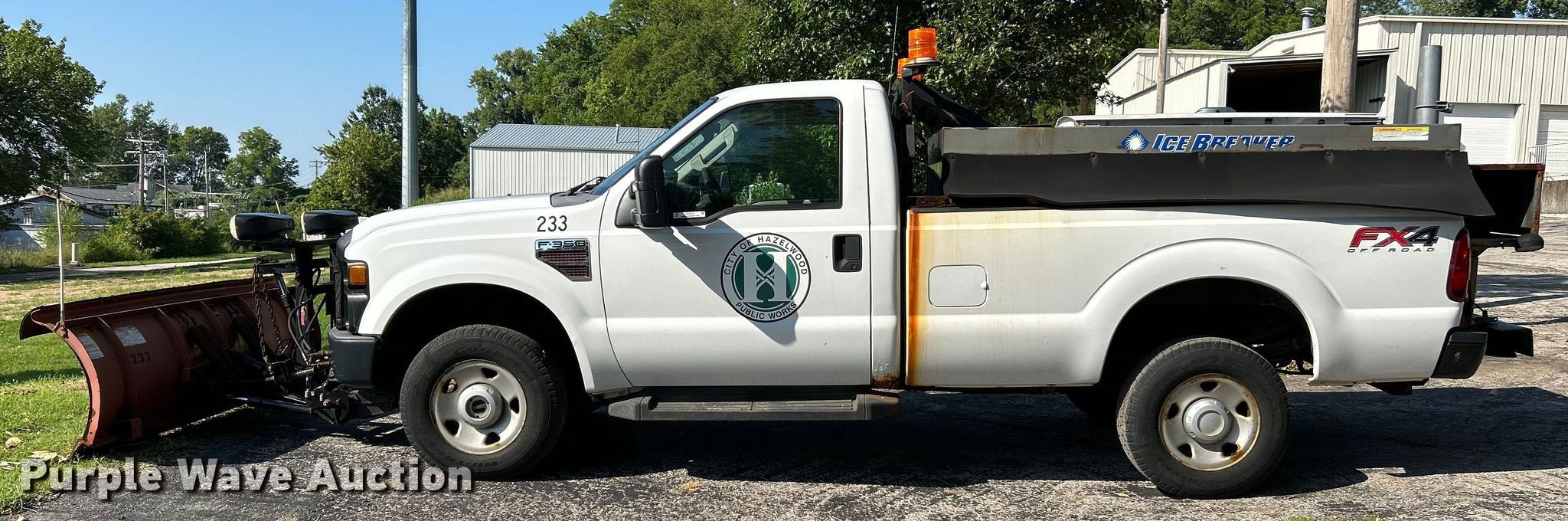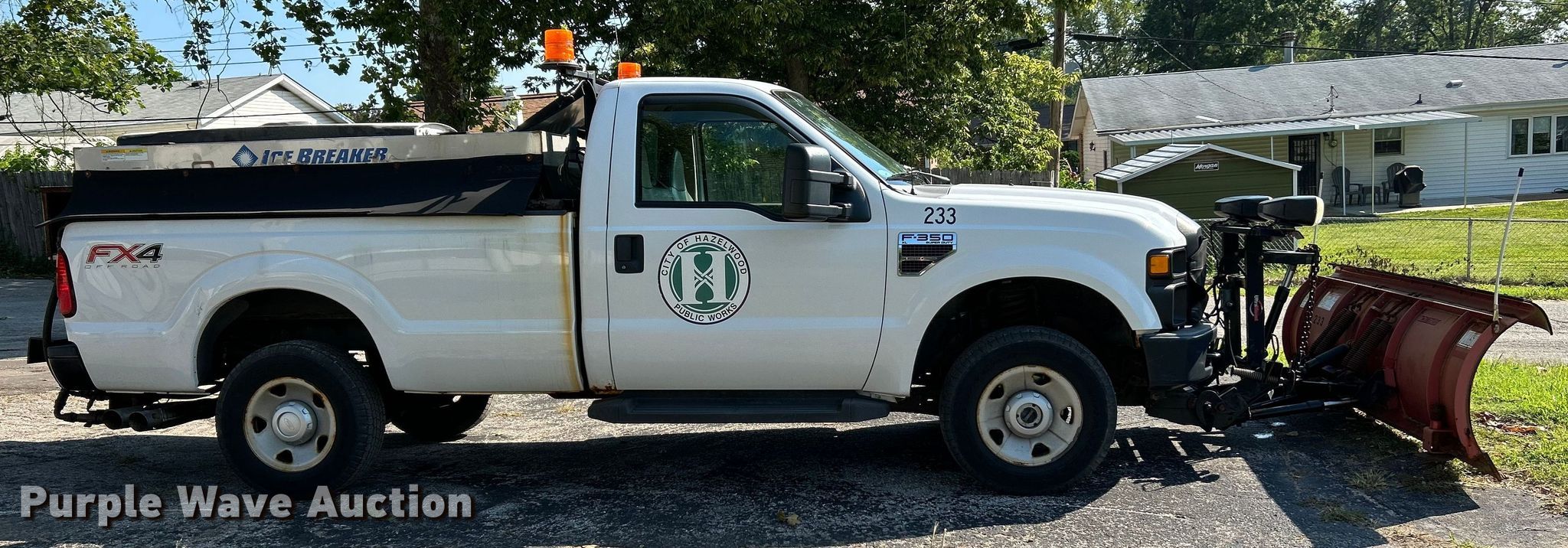 2008 Ford F350 Super Duty XL pickup truck. Miles: 75,909 on odometer, VIN: 1FTWF31R38EE12757. Engine Displacement: 6.4L V8 OHV, Cylinders: 8, Fuel type: Diesel. Transmission Automatic, Four wheel drive. Interior AC, Heat, Cruise control. Features Ice Breaker 8' W salt spreader, Western Ultra Finish 8' W snow plow. Tires Size: 245/75R17. Notes Decals will be removed prior to auction, CB radio not included , Exhaust leak, Tailgate removed but included. Missouri title. Title distribution may be delayed up to 14 days from verification of funds. City of Hazelwood, MO. Hazelwood, MO 63042