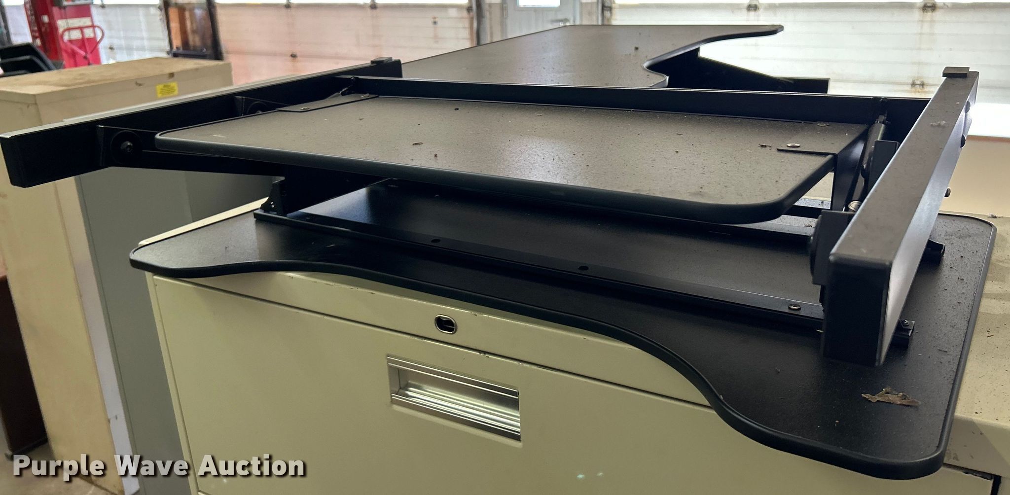 Purple Wave is selling a used Furniture in Missouri. This item is a Furniture with the following: (3) office chairs, (14) chairs, (21) folding chairs, (6) filing cabinets, (2) desks, Metal shelf, Ice maker