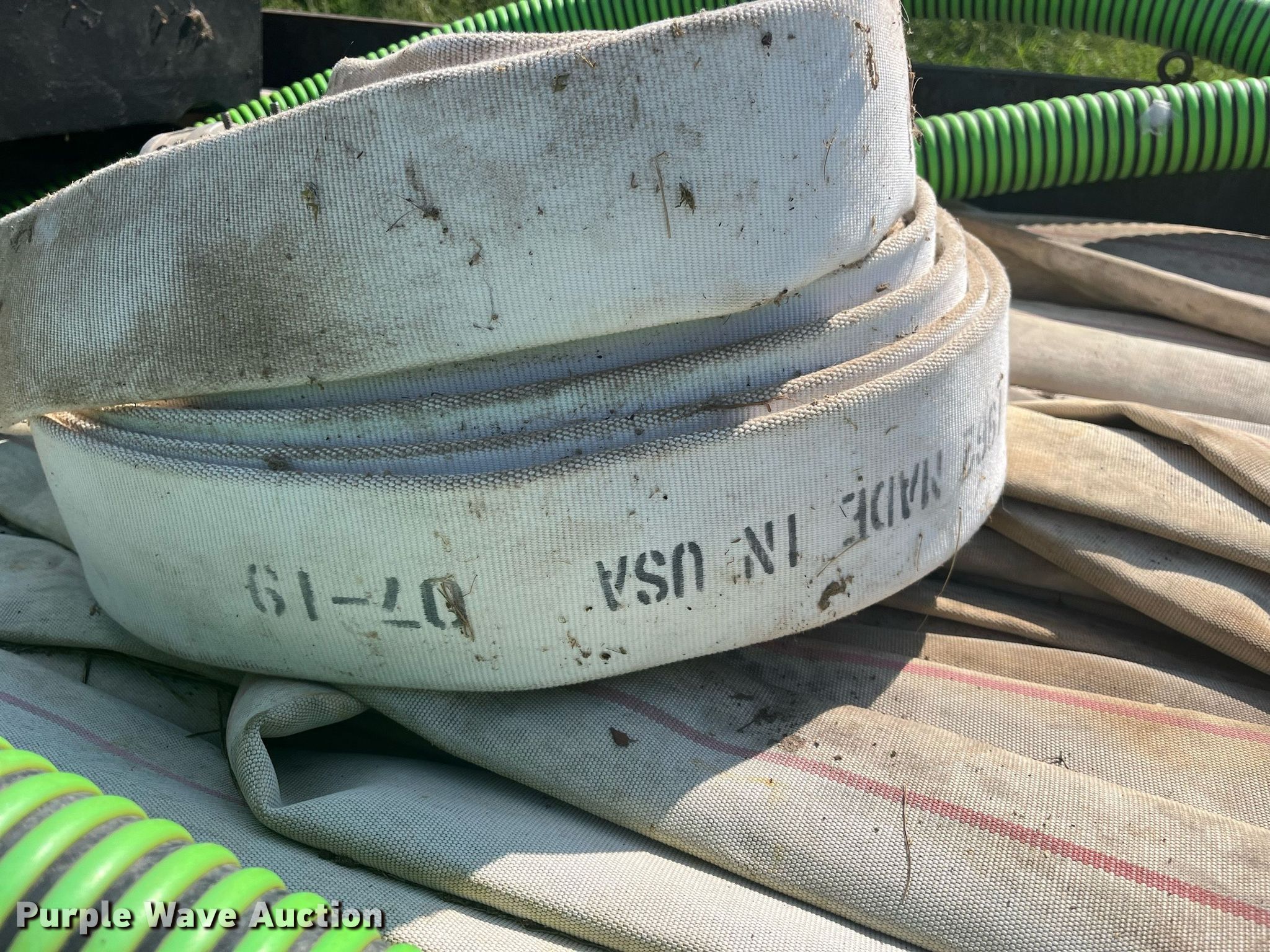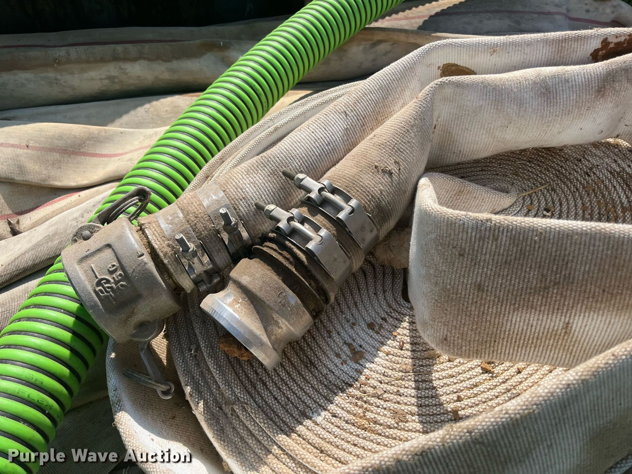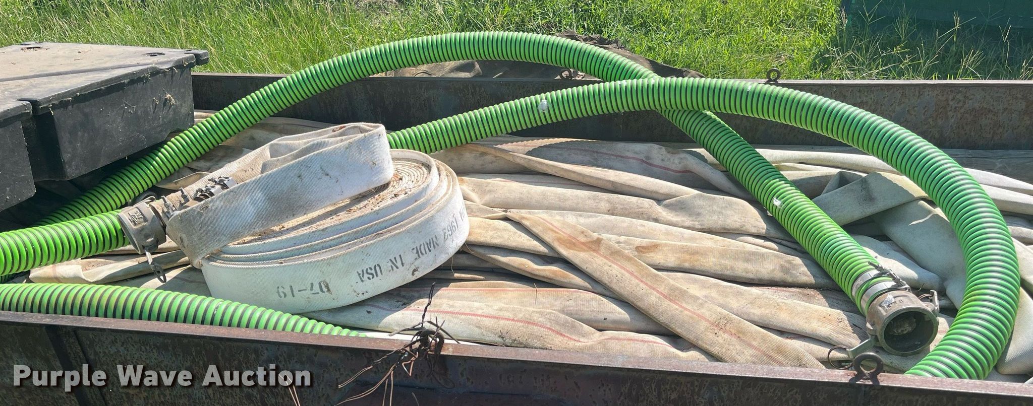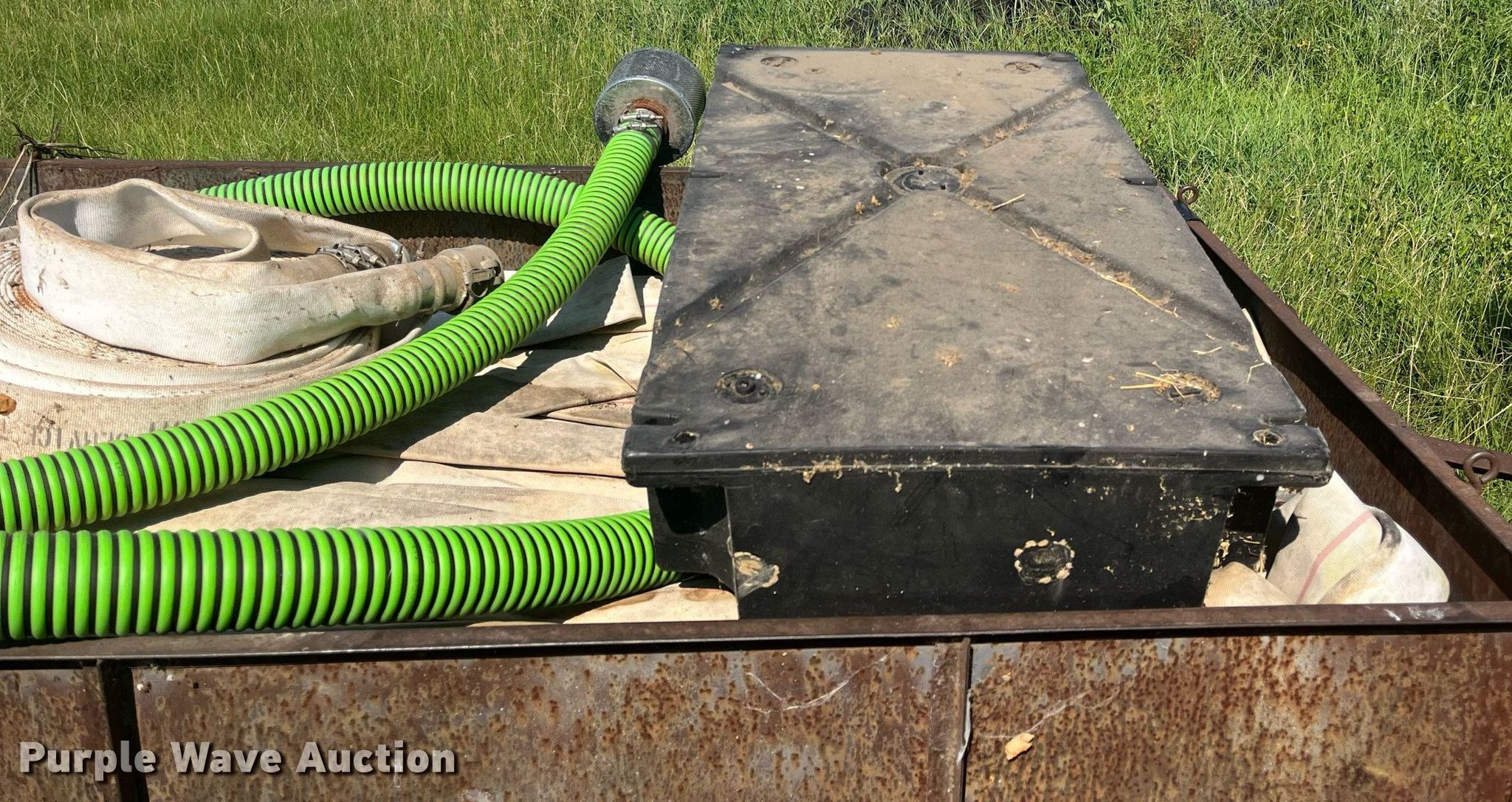 Kifco T200CL hose reel. Serial: 481104. Features Hose Reel 24" W x 58" diameter, Approximately: 580' L hose, Twin max water cannon, Gorman Rupp Pump Inlet: 3" , Discharge: 2.5" , Briggs & Stratton Vanguard 23, Cylinders: 1, Hose Approx. 500' L, Suction hose: 20' L , Float box. Tires Front: 18x8.50-8, Rear: 20x10.00-8. Notes Utility trailer not included. 1285 County Road 1540. Alba, TX 75410