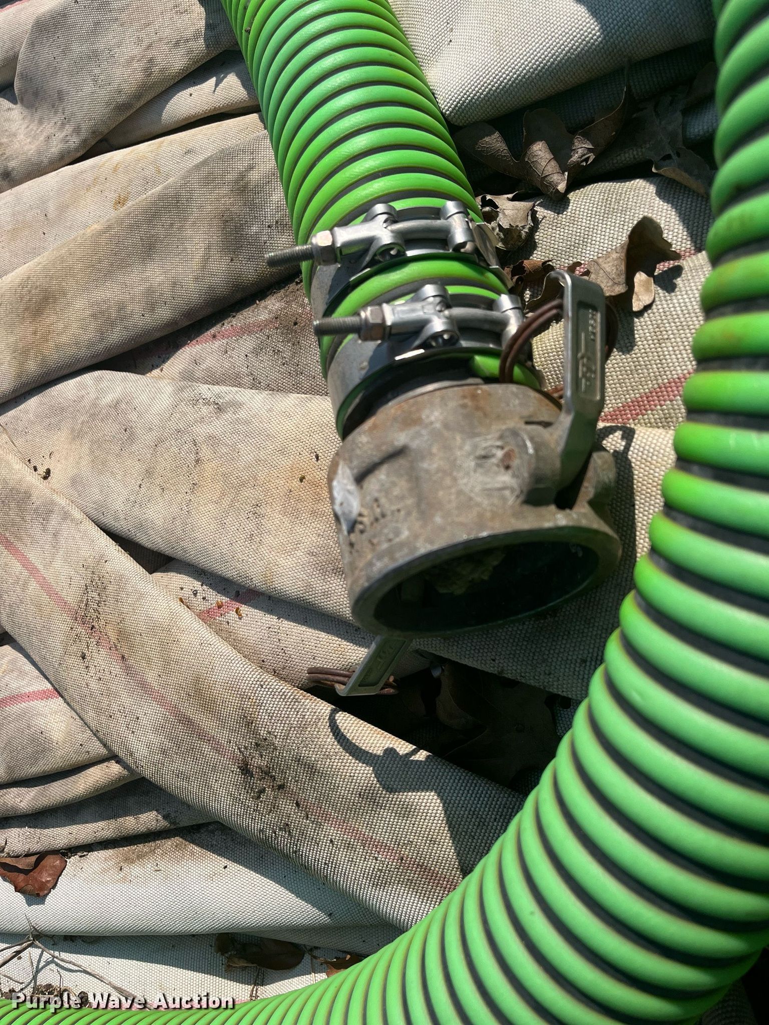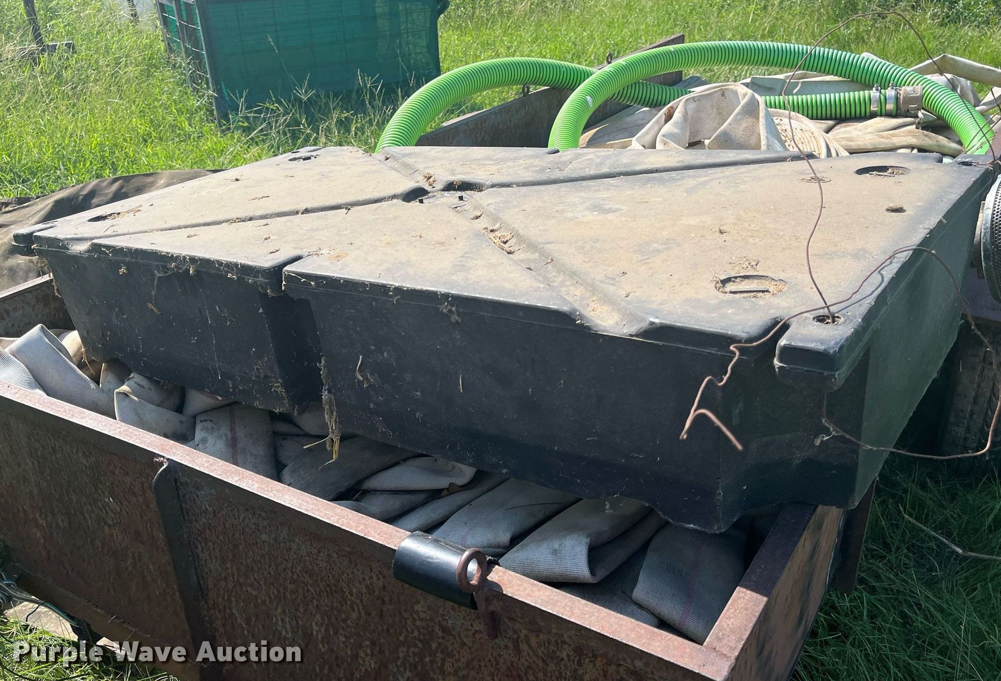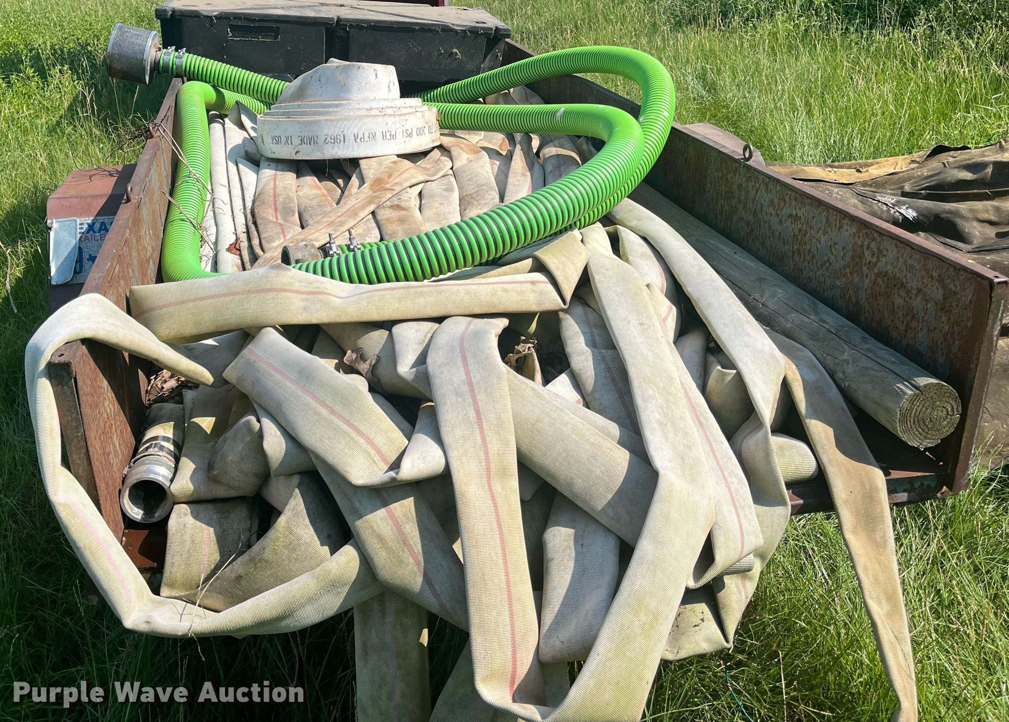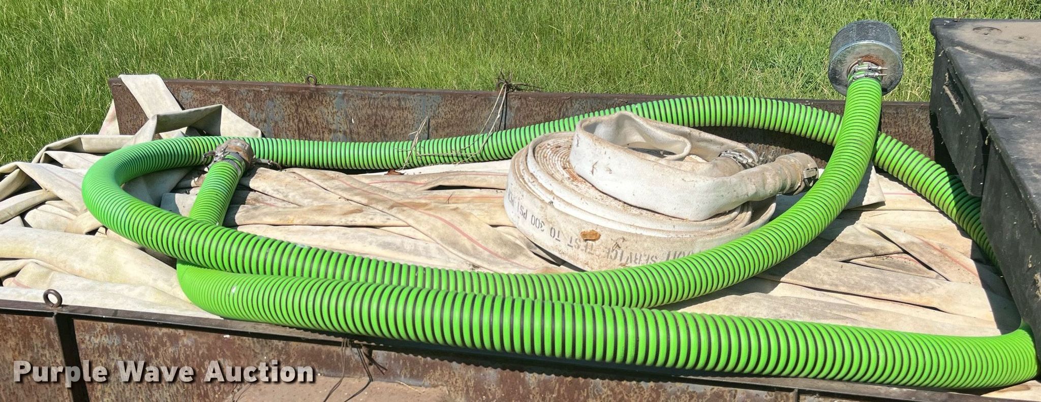 Kifco T200CL hose reel. Serial: 481104. Features Hose Reel 24" W x 58" diameter, Approximately: 580' L hose, Twin max water cannon, Gorman Rupp Pump Inlet: 3" , Discharge: 2.5" , Briggs & Stratton Vanguard 23, Cylinders: 1, Hose Approx. 500' L, Suction hose: 20' L , Float box. Tires Front: 18x8.50-8, Rear: 20x10.00-8. Notes Utility trailer not included. 1285 County Road 1540. Alba, TX 75410