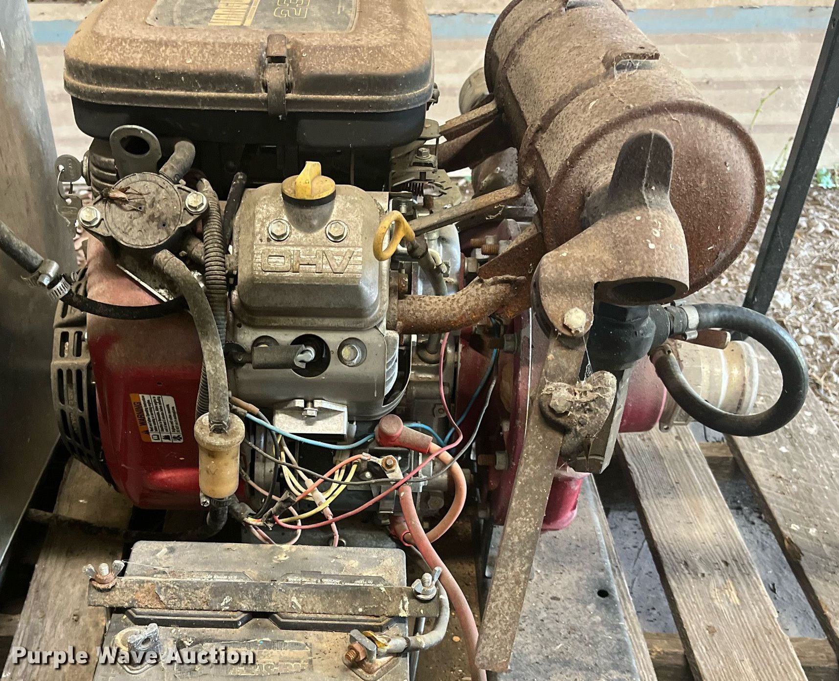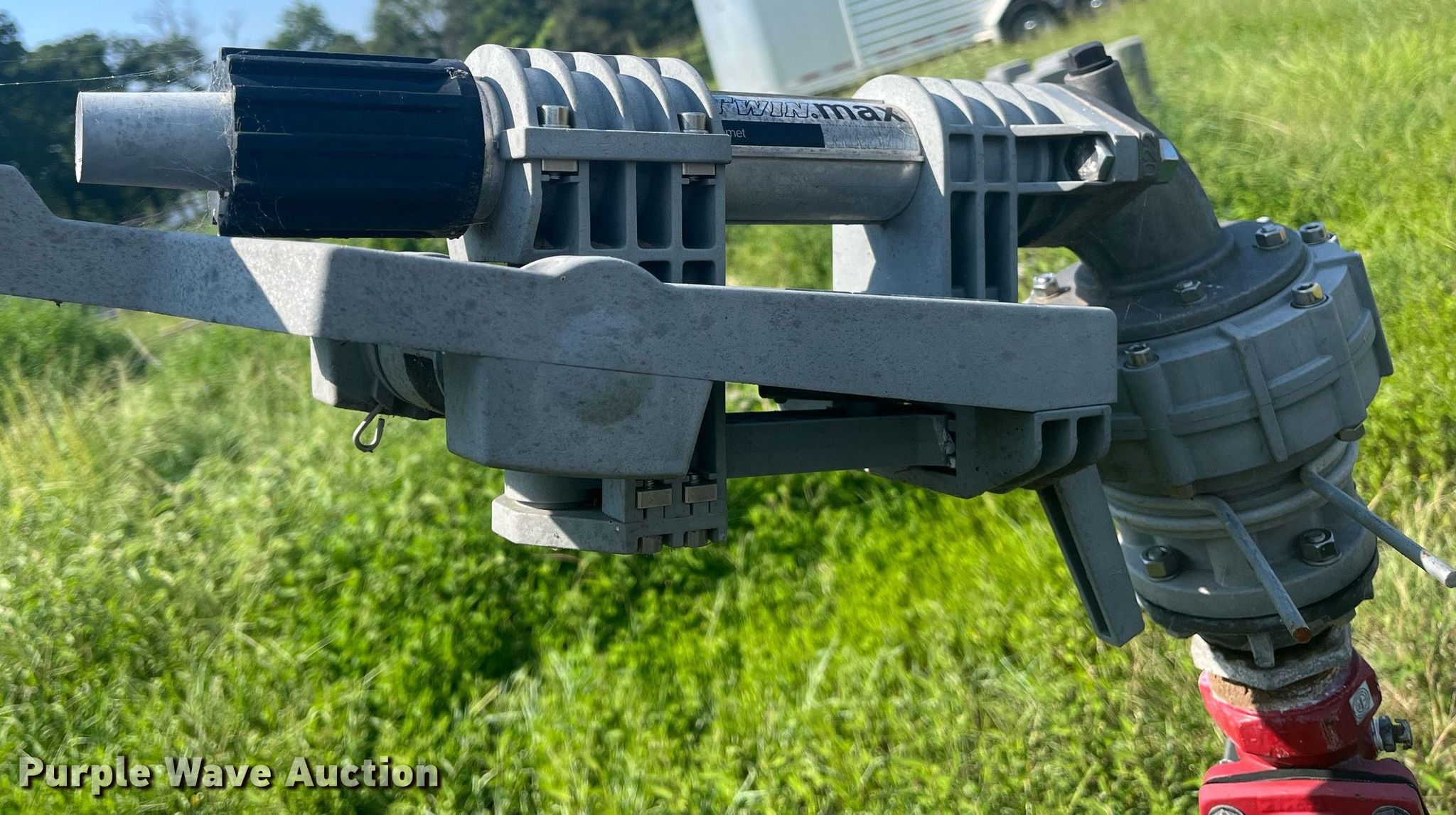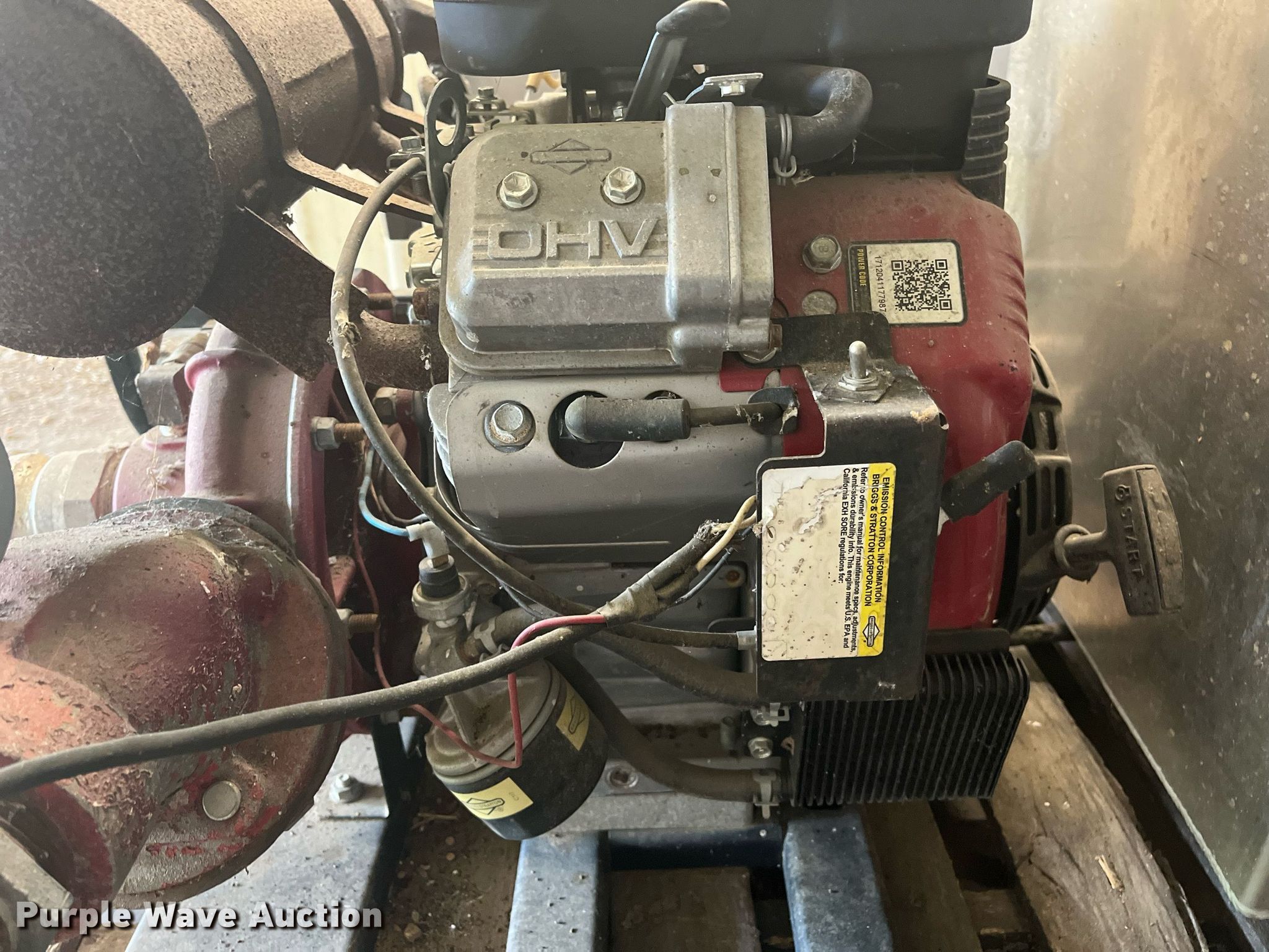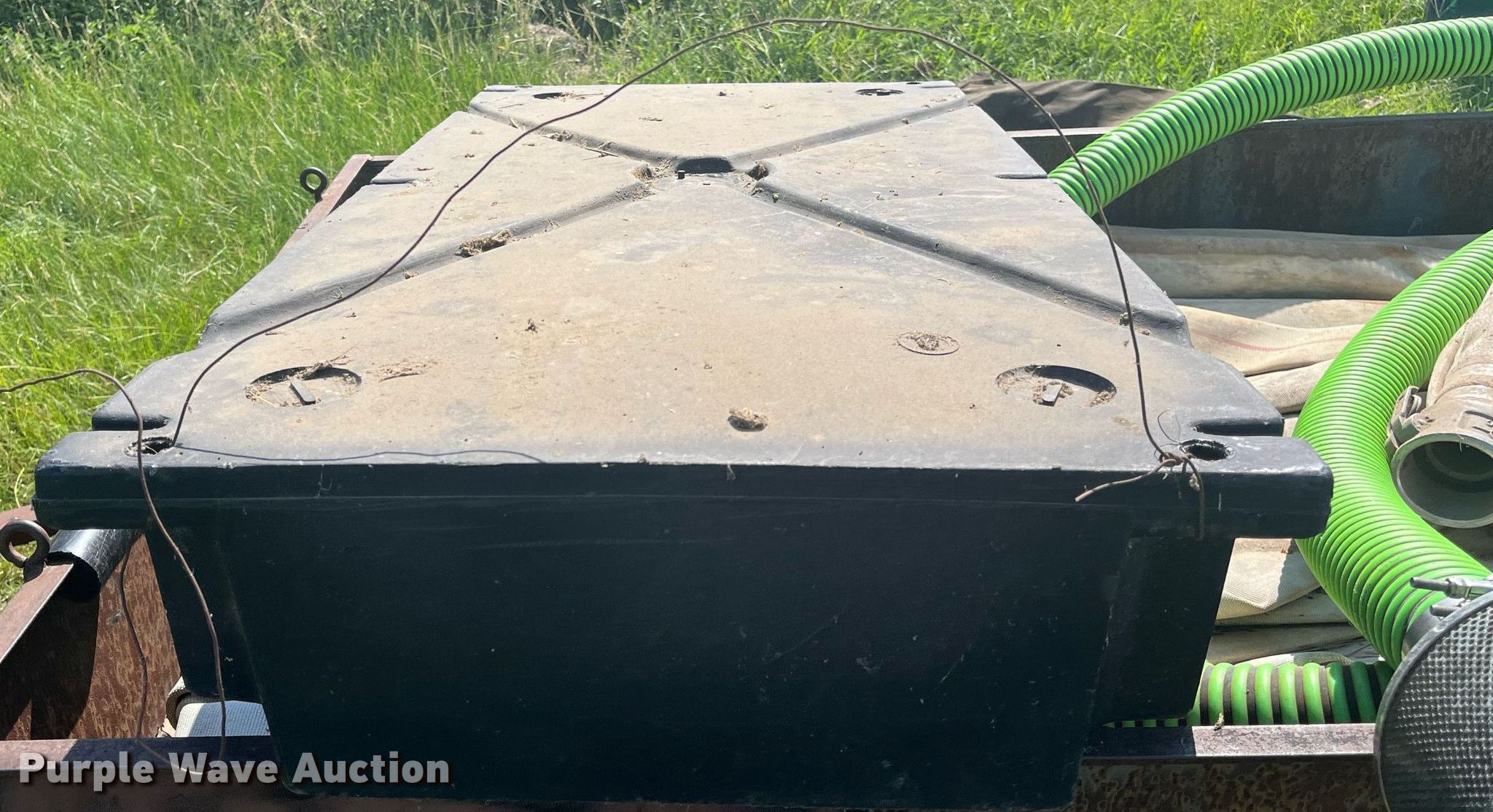 Kifco T200CL hose reel. Serial: 481104. Features Hose Reel 24" W x 58" diameter, Approximately: 580' L hose, Twin max water cannon, Gorman Rupp Pump Inlet: 3" , Discharge: 2.5" , Briggs & Stratton Vanguard 23, Cylinders: 1, Hose Approx. 500' L, Suction hose: 20' L , Float box. Tires Front: 18x8.50-8, Rear: 20x10.00-8. Notes Utility trailer not included. 1285 County Road 1540. Alba, TX 75410