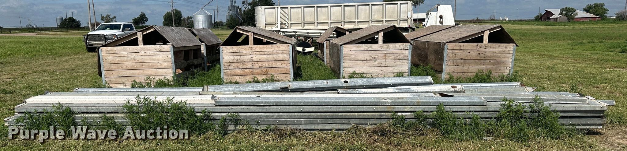 Purple Wave is selling a used Livestock Equip. in Kansas. This item is a Livestock equipment with the following: (8) calf huts, Approx. 40 pieces of galvanized steel framing, Maximum length 24'
