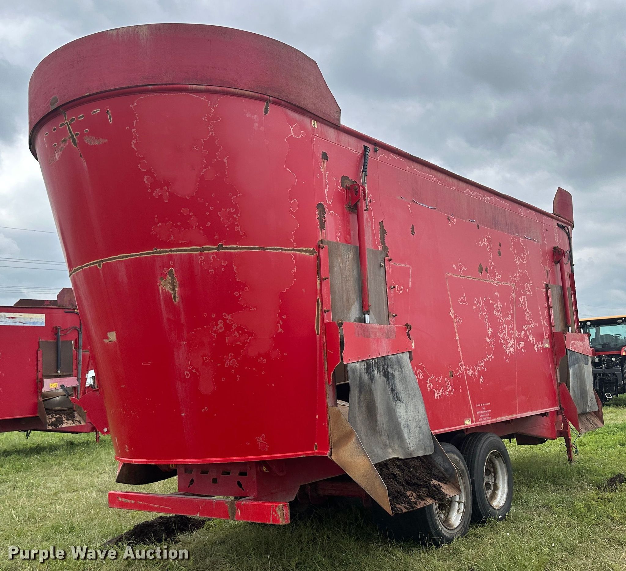 2015 Peecon VME 400 feed grinder/mixer. Serial: 1451-5433. Features PTO: 1 3/4" 1000, Auger Quantity: 3, Diameter: 84", Discharge: Side Width: 42", Door: Hydraulic. Chassis Axles: Tandem. Tires Size: 275/70R22.5. Forget-Me-Not Farms. Cimarron, KS 67835