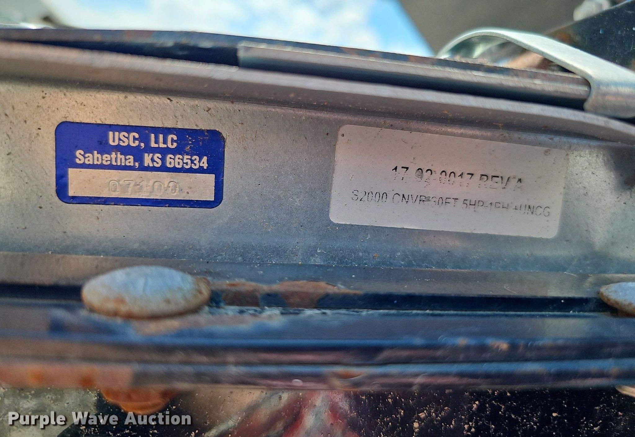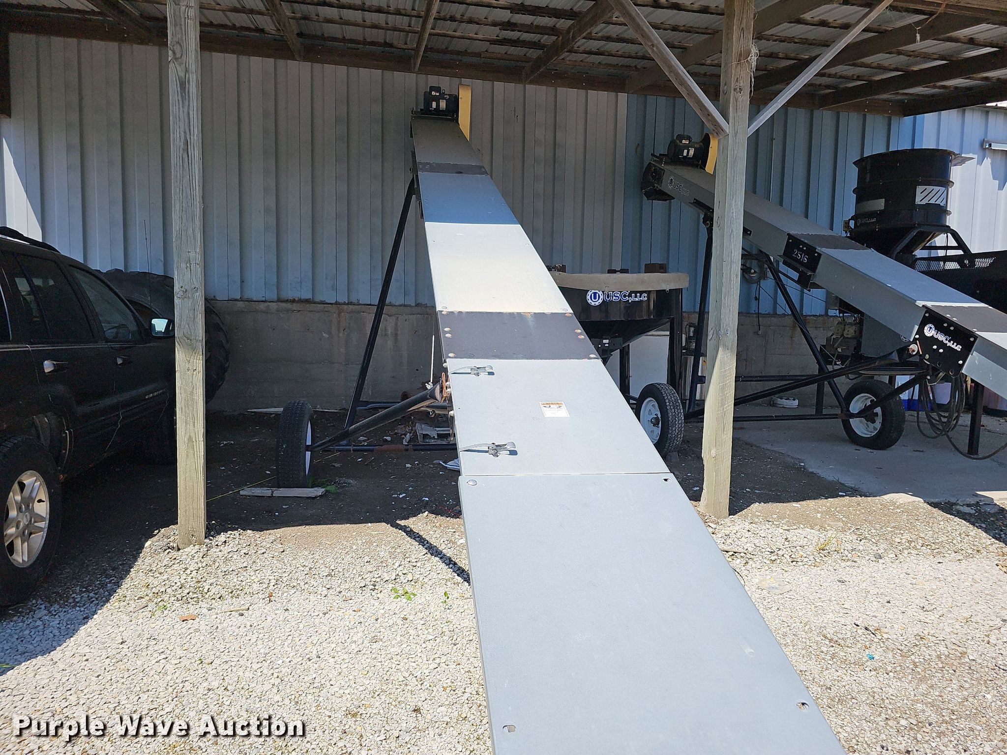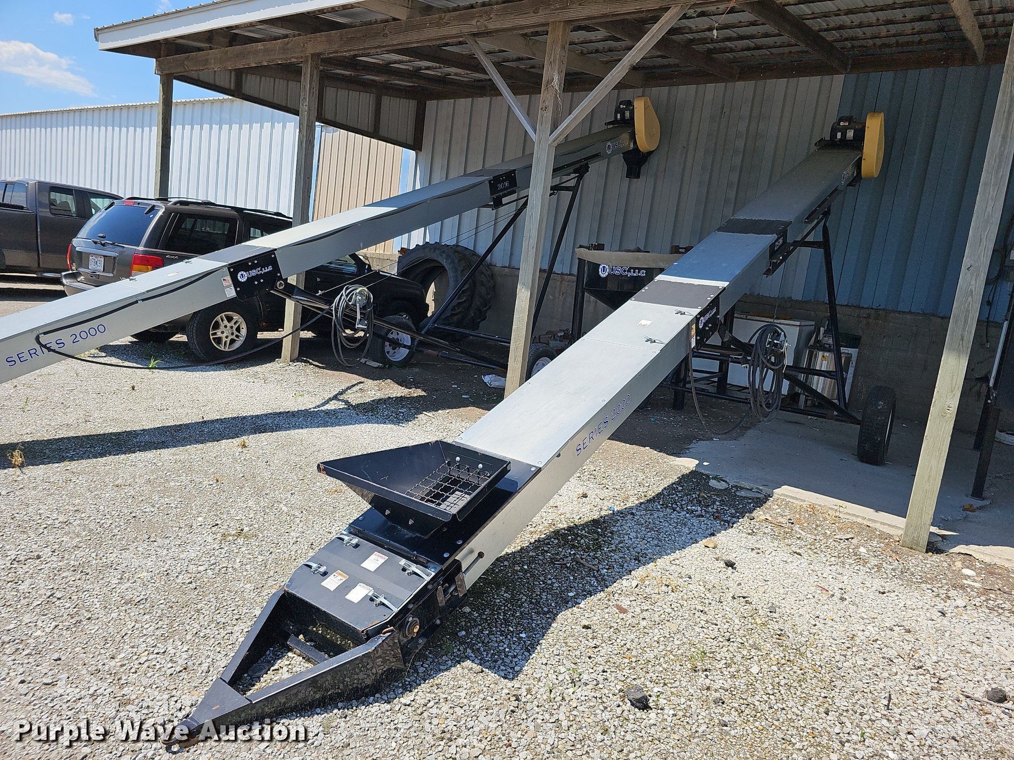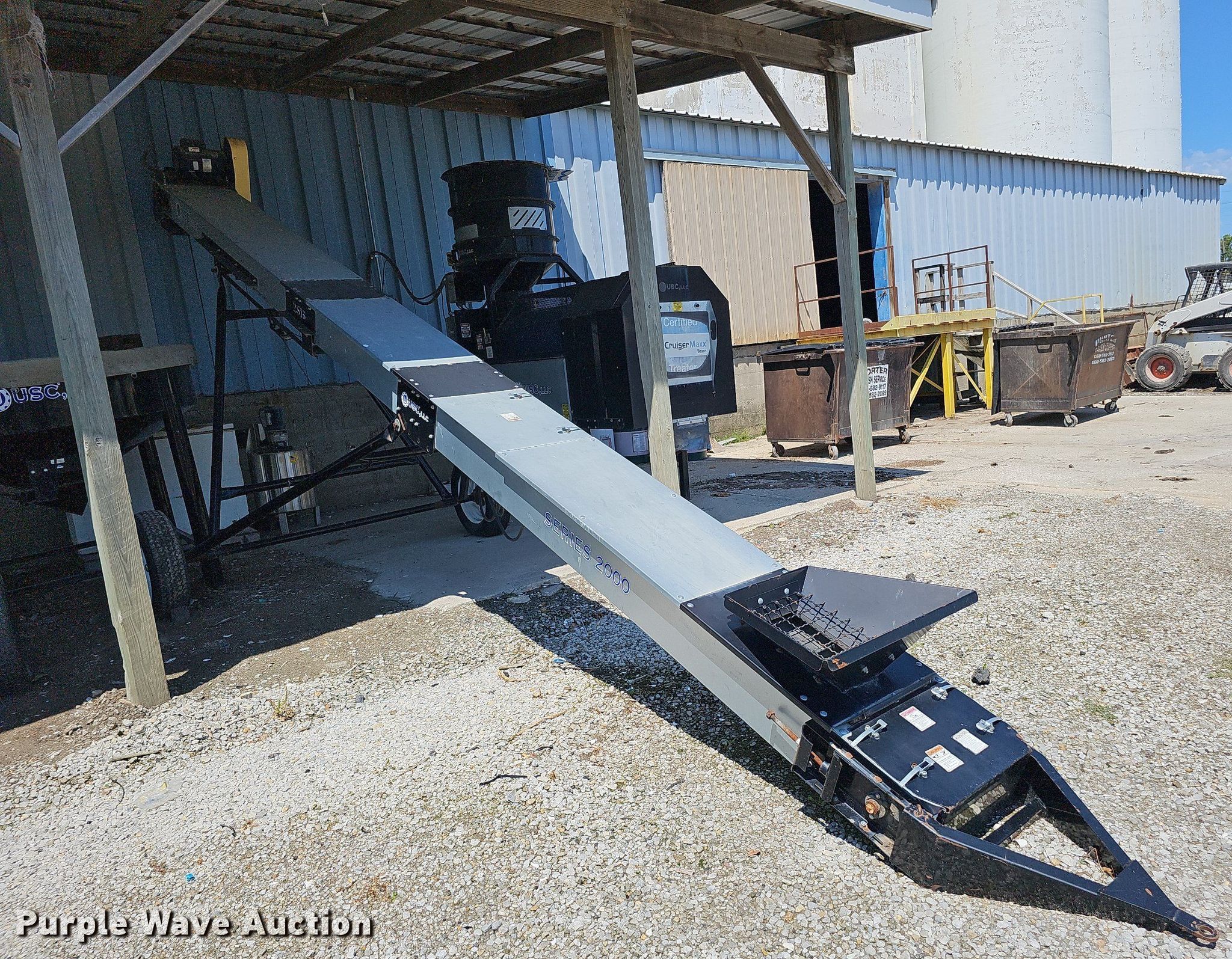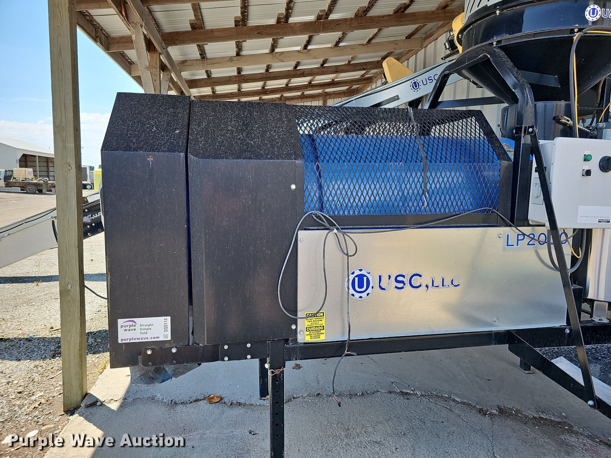 Purple Wave is selling a used Other Grain or Fertilizer Handling in Missouri. This item is a USC LP2000 seed treater with the following: Approx. 114" L x 77" W x 120" H overall, PIXY AE-PIXYAPP-ATM Seed Shine & Flow Aid applicator, Leeson electric motor, Volts: 115/208-230, Phase: Single, HP: 1/3, USC stainless steel tank, 44"H x 20" diameter, Leeson electric motor, Volts: 115/208-230, Phase: Single, HP: 1/3, Housing cracked, USC hopper, 64"H x 76" diameter, Serial: 070313, USC 2516 conveyor, 25'L x 16.75"W, Serial: 07122, Leeson electric motor, HP: 5, ST205/75D15 tires, USC 3016 conveyor, 30' L x 16.5" W, Serial: 07100, Leeson electric motor, HP: 5, ST205/75D15 tires