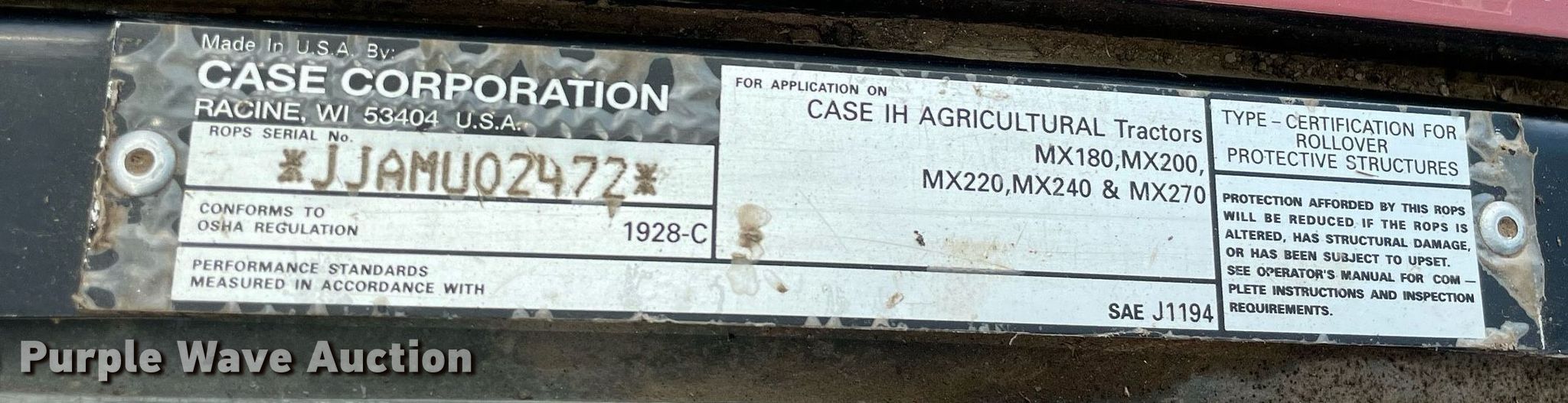 Purple Wave is selling a used Tractor in Kansas. This item is a 1999 Case MX220 Magnum MFWD tractor with the following: Hours: 8,472 on meter, Serial: X2204C4JJA0102156