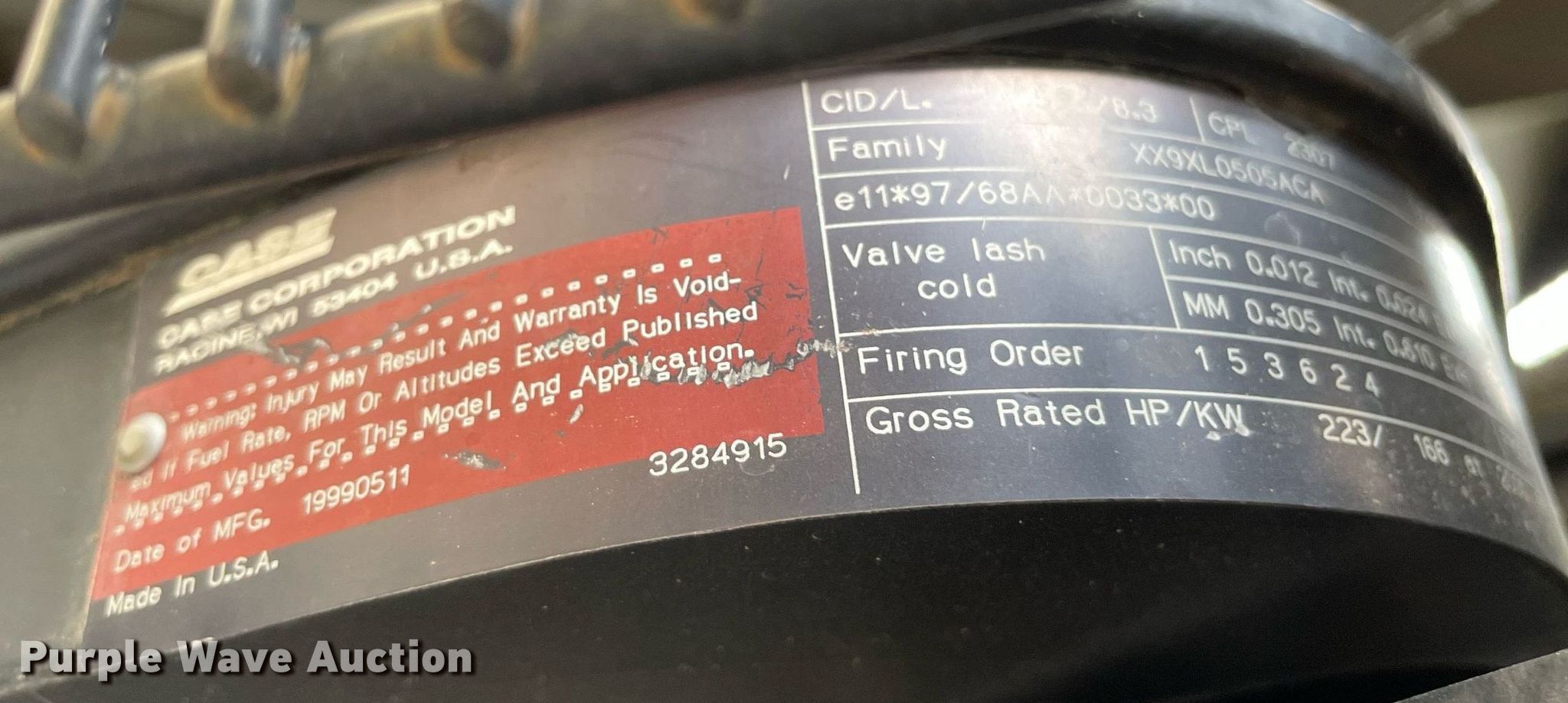 1999 Case MX220 Magnum MFWD tractor. Hours: 8,472 on meter, Serial: X2204C4JJA0102156. Engine Displacement: 8.3L, Cylinders: 6, Fuel type: Diesel. Transmission Powershift, 18F - 4R, Left-hand reverser. Operators station AC, Heat. Features PTO: 1000, Three point Top link, Quick attach, Seven pin outlet, Hydraulic remote sets Rear: 5, Suitcase weights: 10. Tires Front: 380/85R34, Rear: 480/80R46, Wheel weights: 2, Duals. Lindsborg, KS 67456