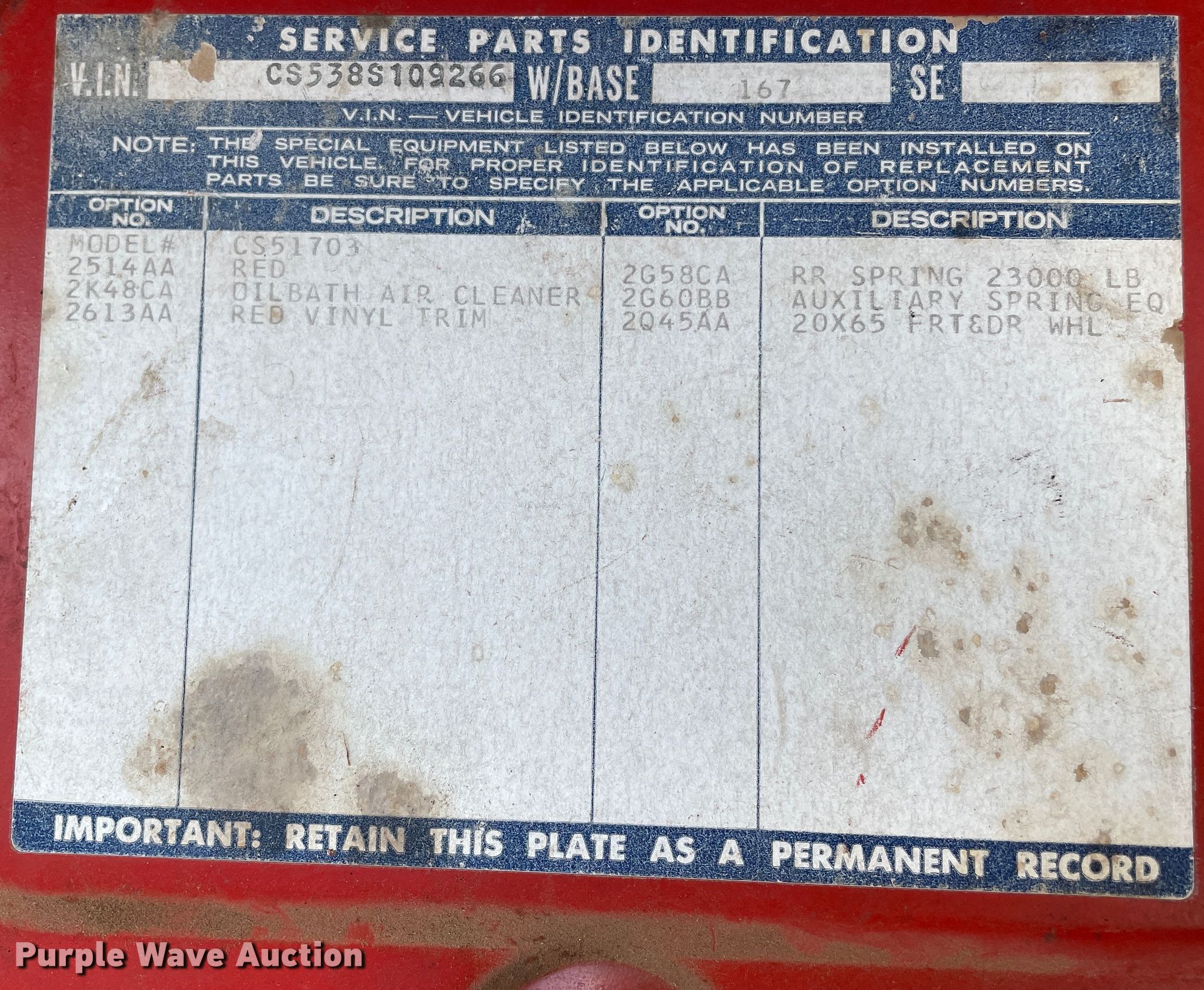 Purple Wave is selling a used Grain Truck in Texas. This item is a 1968 Chevrolet 50 grain truck with the following: Miles: 58,444 on odometer, VIN: CS538S109266