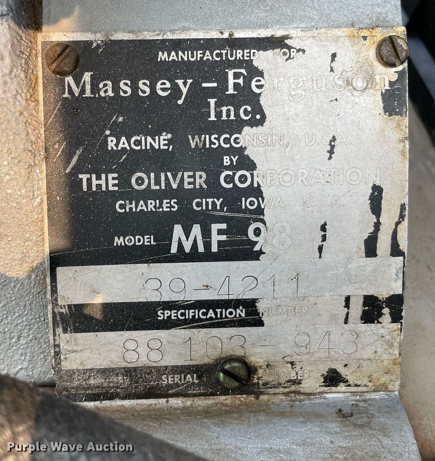 Purple Wave is selling a used Tractor in Illinois. This item is a 1960 Massey Ferguson 98 tractor with the following: Hours: 3,939 on meter, Serial: 88103-943