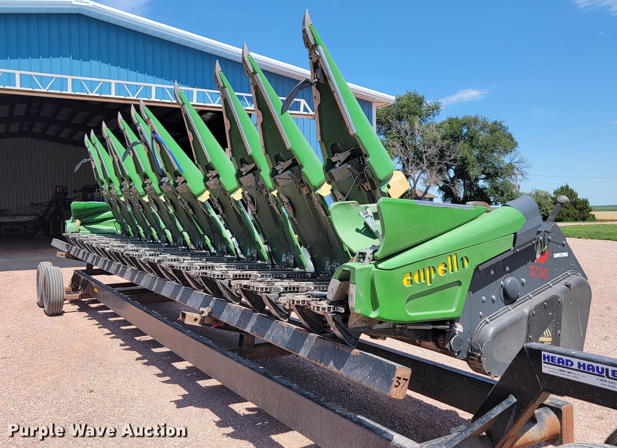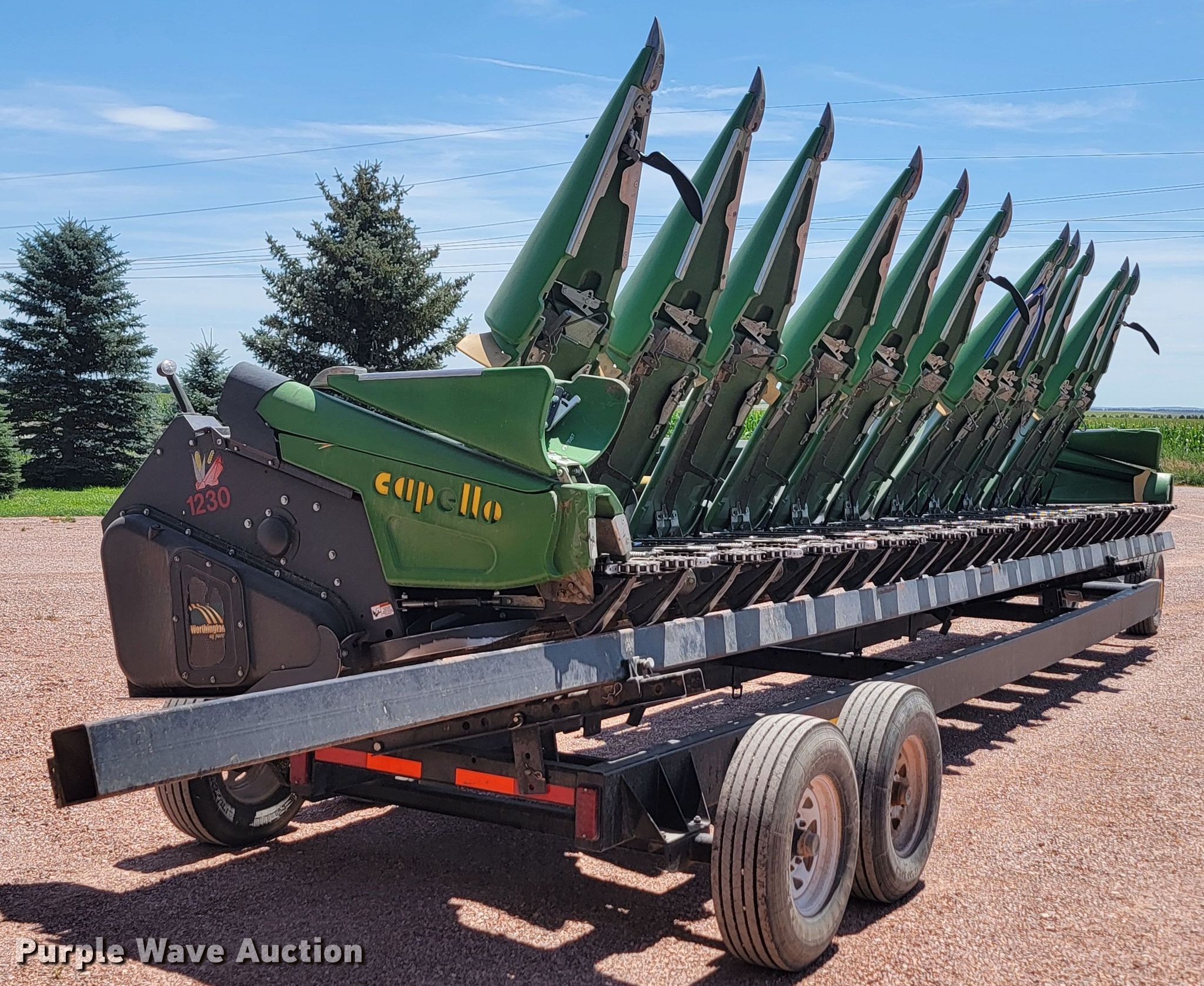 Purple Wave is selling a used Corn or Row Head in Nebraska. This item is a 2014 Capello Quasar F12 corn head with trailer with the following: Serial: 11030