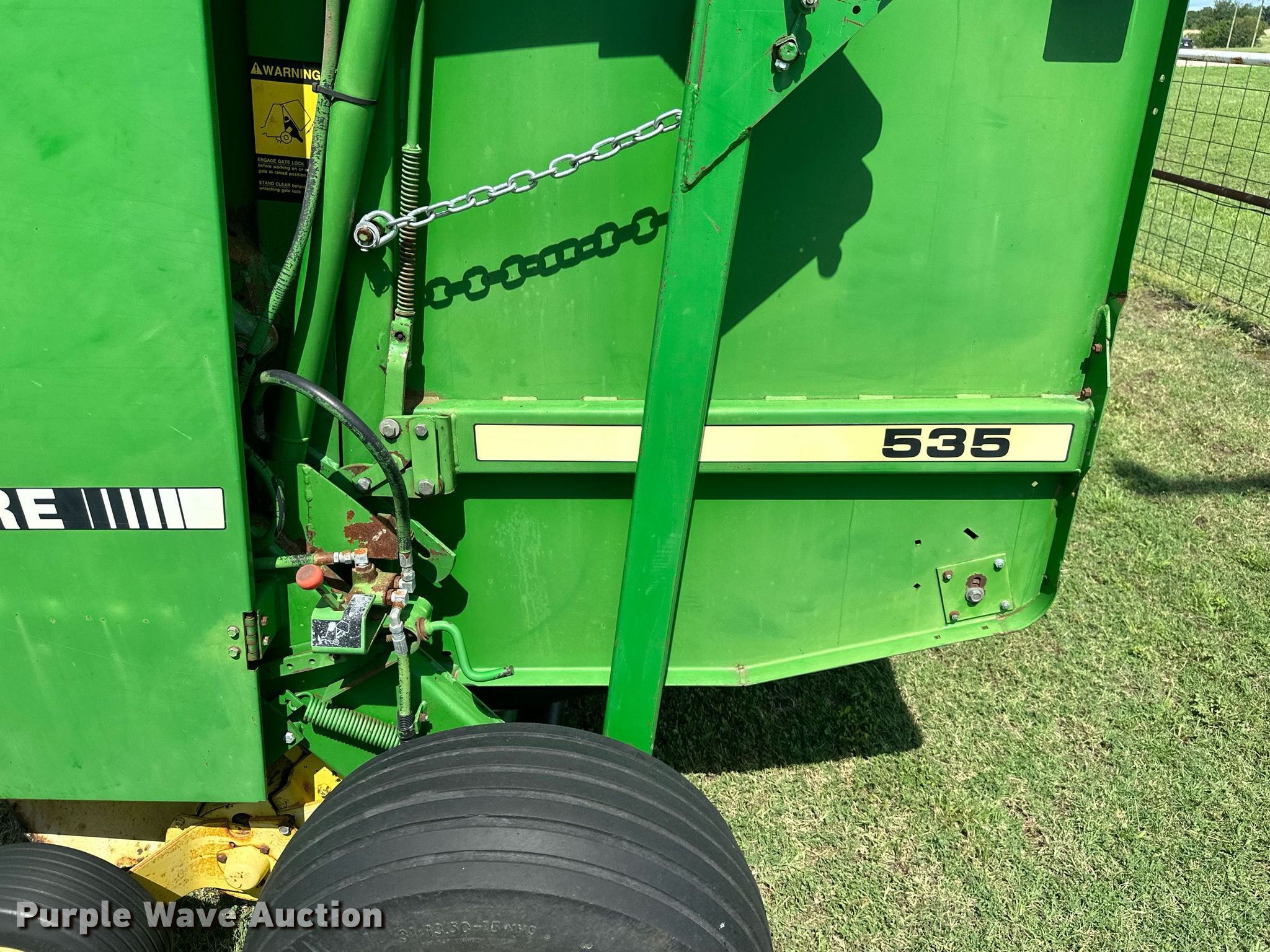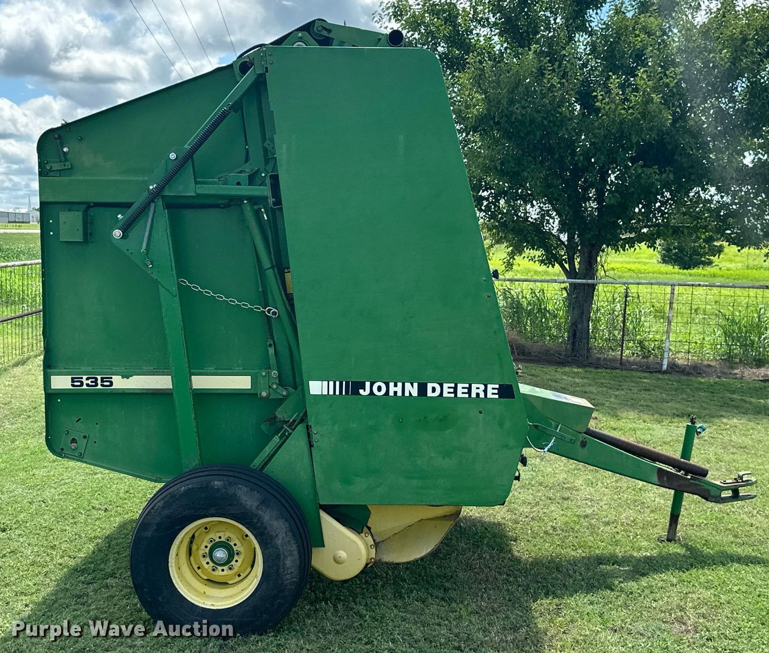 Purple Wave is selling a used Round Baler in Oklahoma. This item is a 1991 John Deere 535 round baler with the following: Serial: E00535X901136
