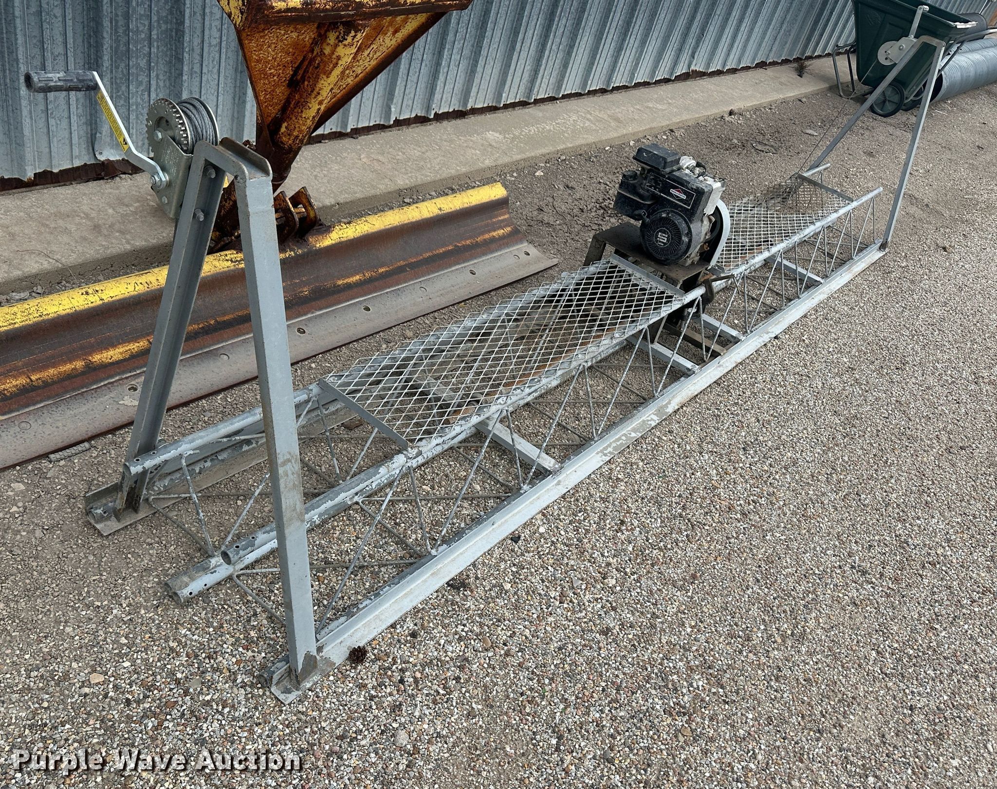 Purple Wave is selling a used Tools in Kansas. This item is a Tools with the following: Concrete curb screeds, Concrete curb forms, Screed, Briggs & Stratton single cylinder engine, 14'6'' W, (2) picnic table movers, Poulan Pro string trimmer, Trimmer head missing, Three point blade not included
