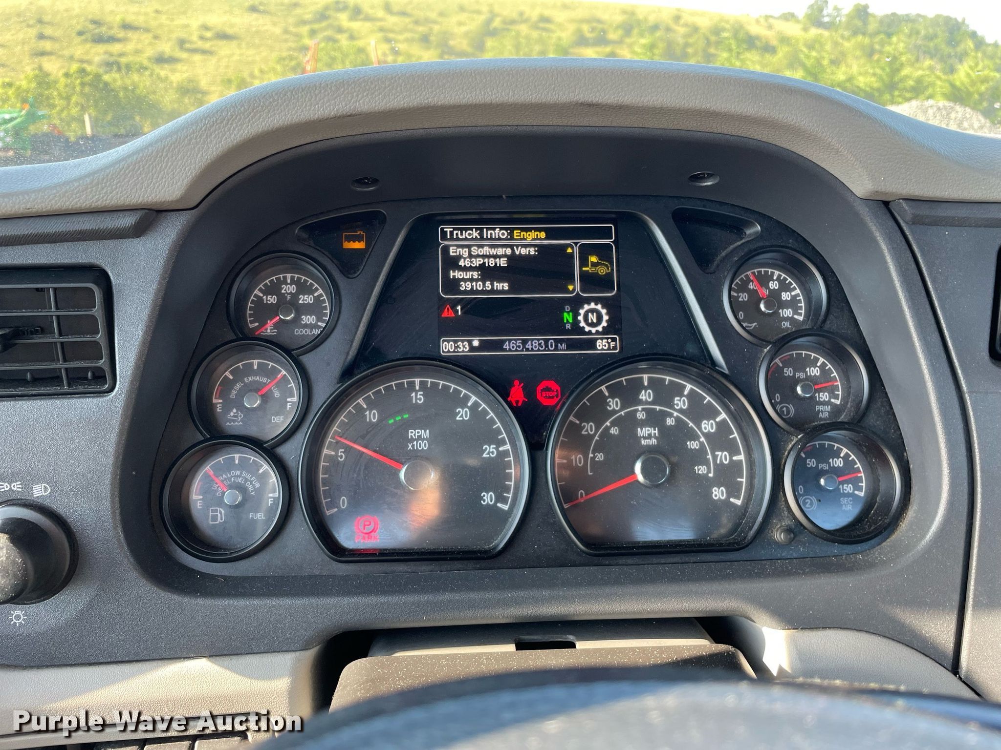 2019 Peterbilt 579 semi truck. Miles: 465,483 on odometer, Hours: 3,911 on meter, VIN: 1XPBDP9X5KD369226, Unit #: 1874. Engine Paccar MX-13, Displacement: 12.9L, Cylinders: 6, Fuel type: Diesel, Engine brake. Transmission Automated manual. Chassis Axles: Tandem, Differential lock: Inter-axle, Suspension: Air Dump valves, Brakes: Air, GVWR: 50,350 lbs FAWR: 12,350 lbs, IAWR: 19,000 lbs, RAWR: 19,000 lbs. Interior AC, Heat, Heated mirrors, Power windows, Power locks, Cruise control, Air ride cab. Features Deck plate: Aluminum, Fifth wheel type: Fixed, Fuel tank: Single. Tires Front: 295/75R22.5, Rear: 445/50R22.5. Notes Dash warning indicator: Stop engine, Coolant. Oklahoma title. Title distribution may be delayed up to 30 days from verification of funds. Gemini Motor Transport. 4333 East Lee Highway. Max Meadows, VA 24360