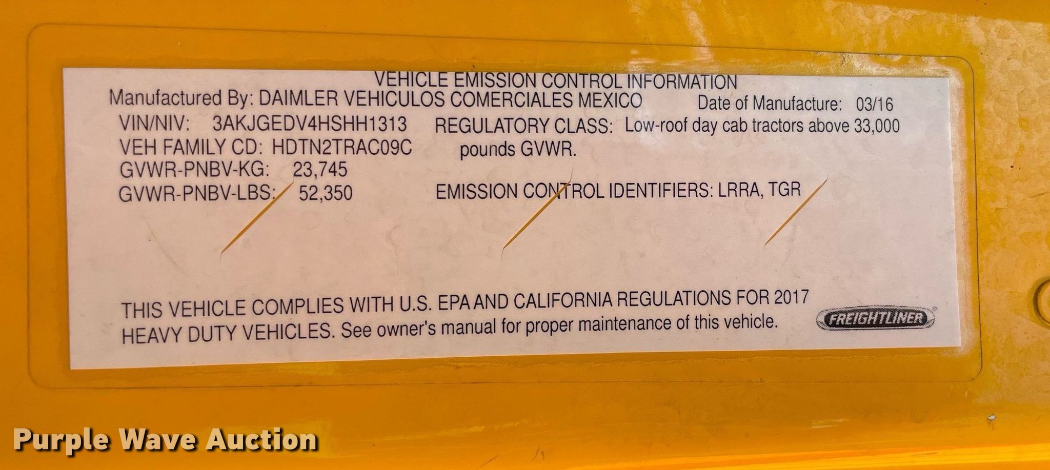 • DL3856 image for item DL3856 2017 Freightliner Cascadia 125  semi truck