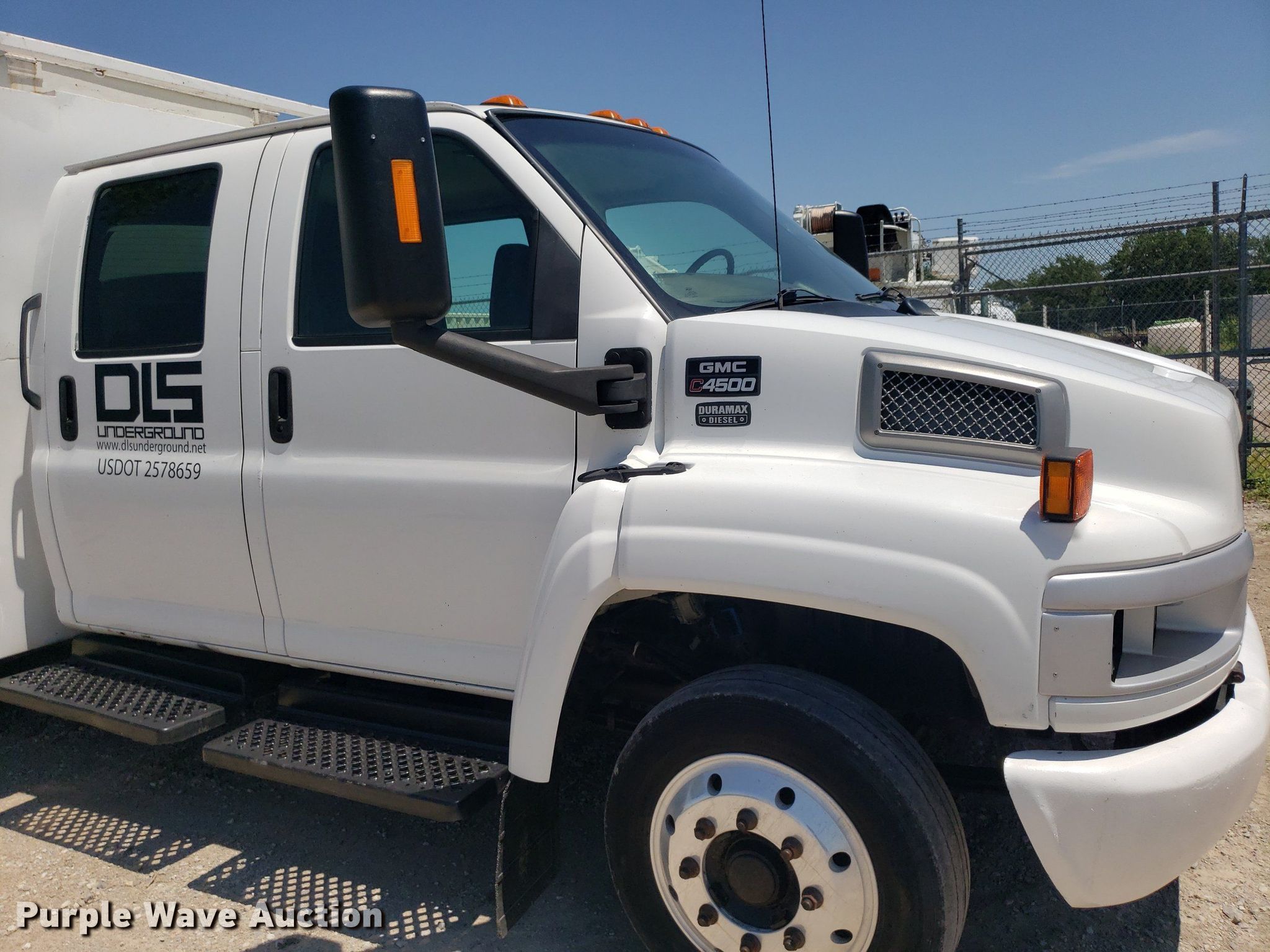 2003 GMC C4500 Crew Cab utility / service truck. Miles: 244,675 on odometer, VIN: 1GDE4D1153F516991. Engine Displacement: 6.6L, Cylinders: 8, Fuel type: Diesel. Transmission Automatic. Chassis Axles: Single, Suspension: Spring, Brakes: Hydraulic, GVWR: 17,500 lbs. Interior AC, Heat, Heated mirrors, Power windows. Features Bed 9' L x 94" W. Tires Size: 225/70R19.5. Kansas title. Title distribution may be delayed up to 30 days from verification of funds. DLS Underground LLC. Harper, KS 67058