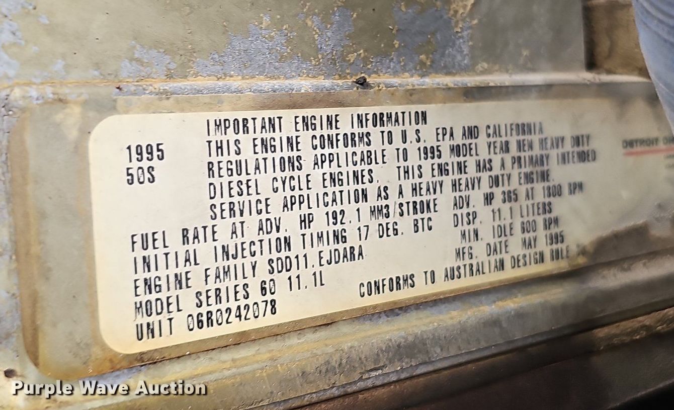 1996 International 9200 hook lift truck. Miles: 920,527 on odometer, VIN: 2HSFMALR3TC047221. Engine Detroit Diesel Series 60, Displacement: 11.1L, Cylinders: 6, Fuel type: Diesel. Transmission Spicer, Manual, Speed: 10. Chassis Axles: Tandem, Differential lock: Inter-axle, Suspension: Air, Brakes: Air, PTO, GVWR: 52,000 lbs FAWR: 12,000 lbs, IAWR: 20,000 lbs, RAWR: 20,000 lbs, Wheelbase: 218". Interior AC, Heat, Heated mirrors, Cruise control. Features Deck plate: Aluminum, Fuel tank: Dual, IPAC American Hooklift Capacity: 31,000 lbs, 14' L, Ram: Double. Tires Size: 11R22.5. Notes AC belt missing. Nebraska title. Title distribution may be delayed up to 14 days from verification of funds. Heartland Disposal. 1839 East 4th Street. Grand Island, NE 68801
