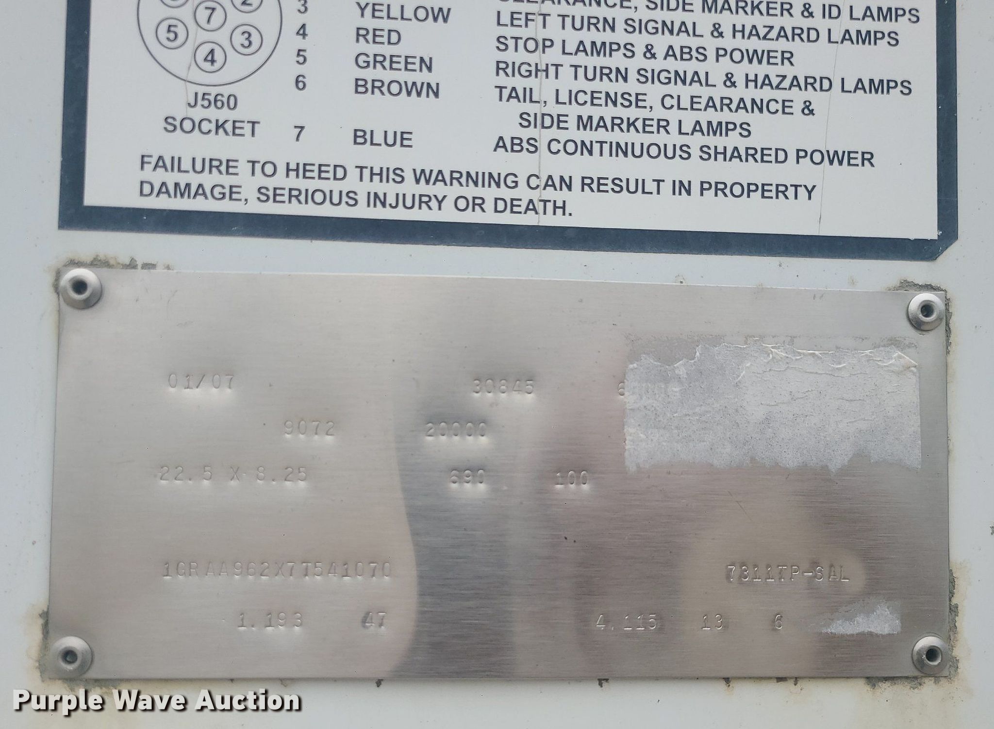 Purple Wave is selling a used Dry Van Trailer in Missouri. This item is a 2007 Great Dane Trailers dry van trailer with the following: VIN: 1GRAA962X7T541070