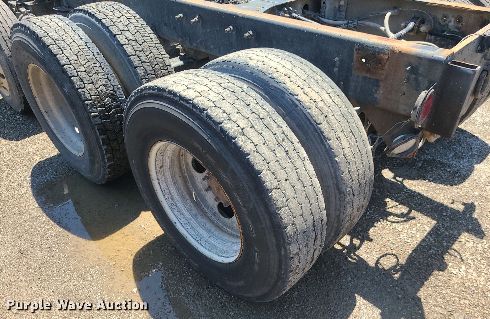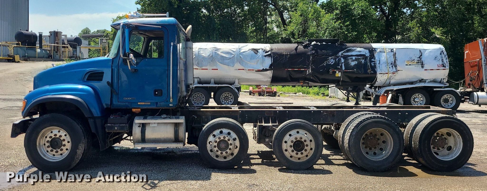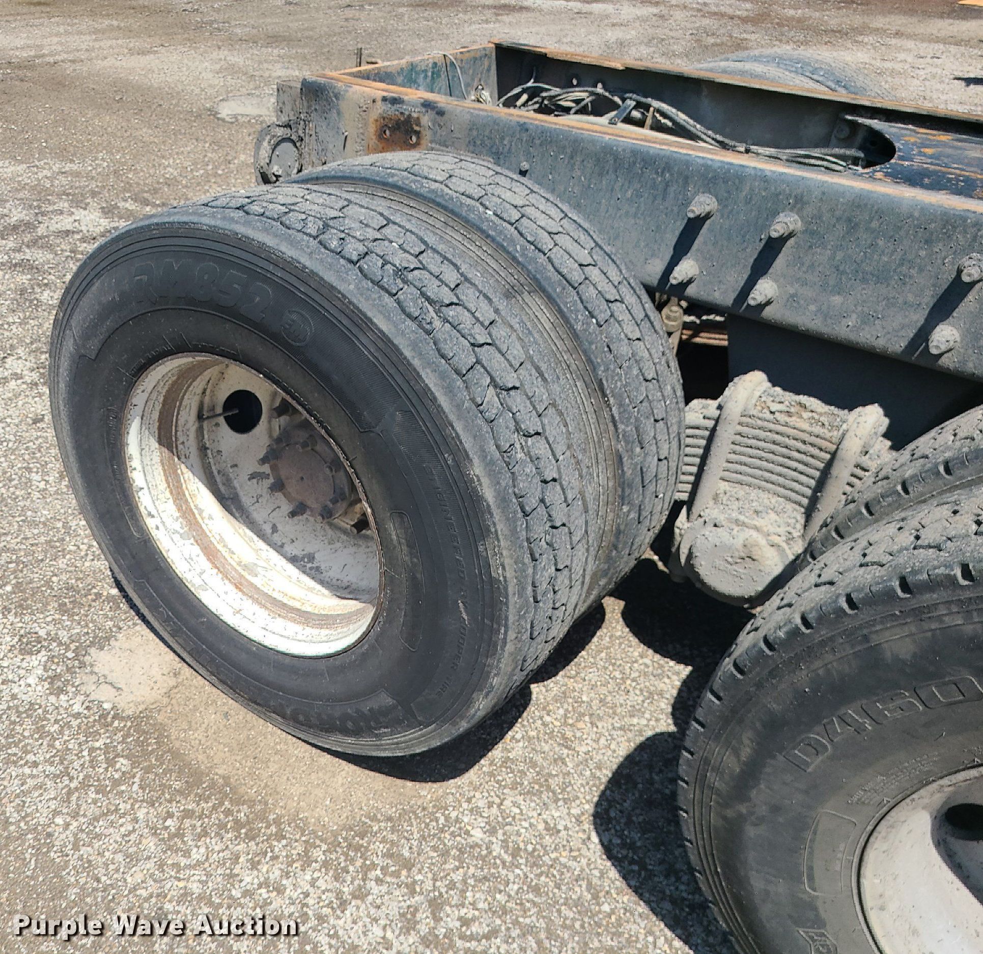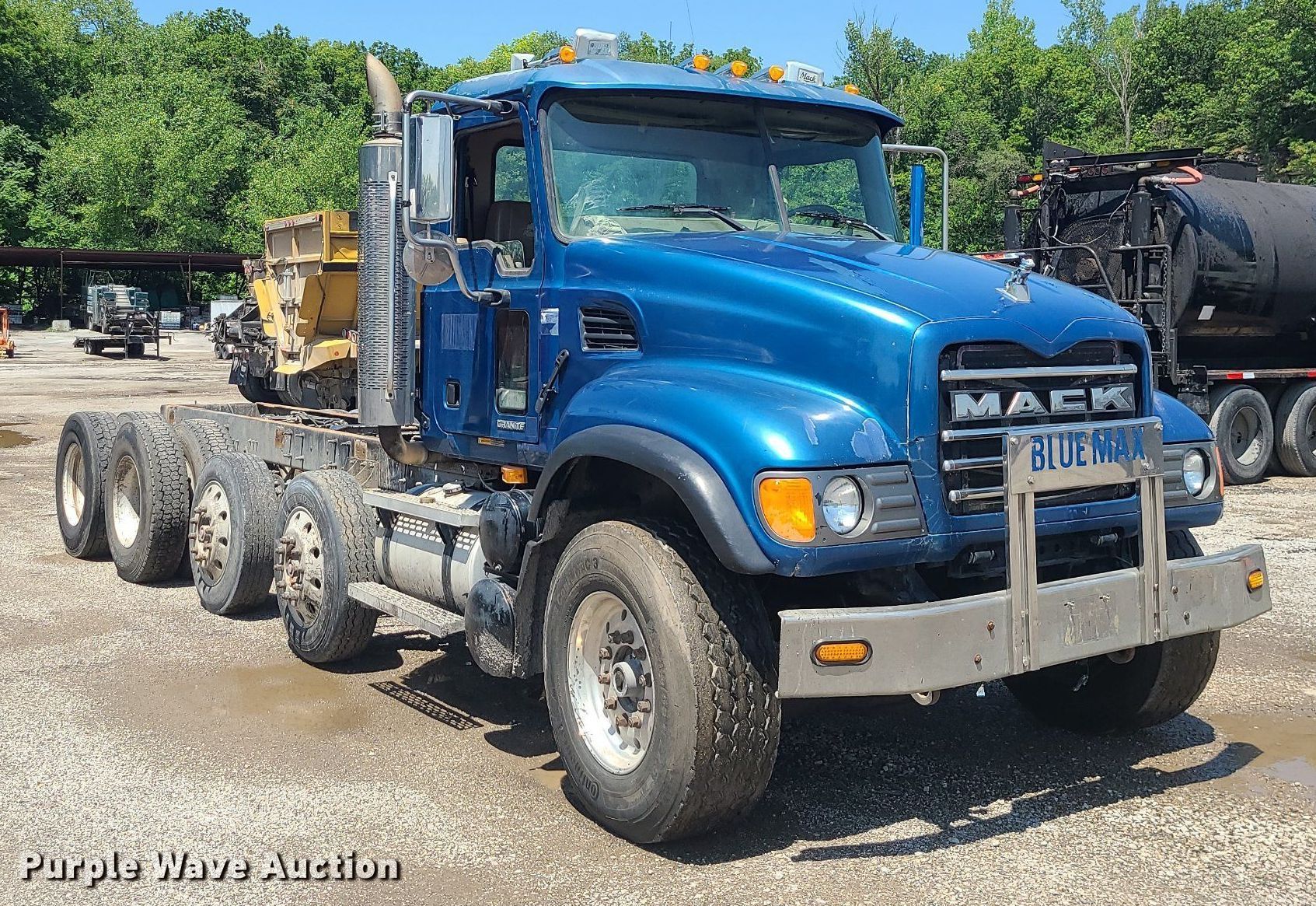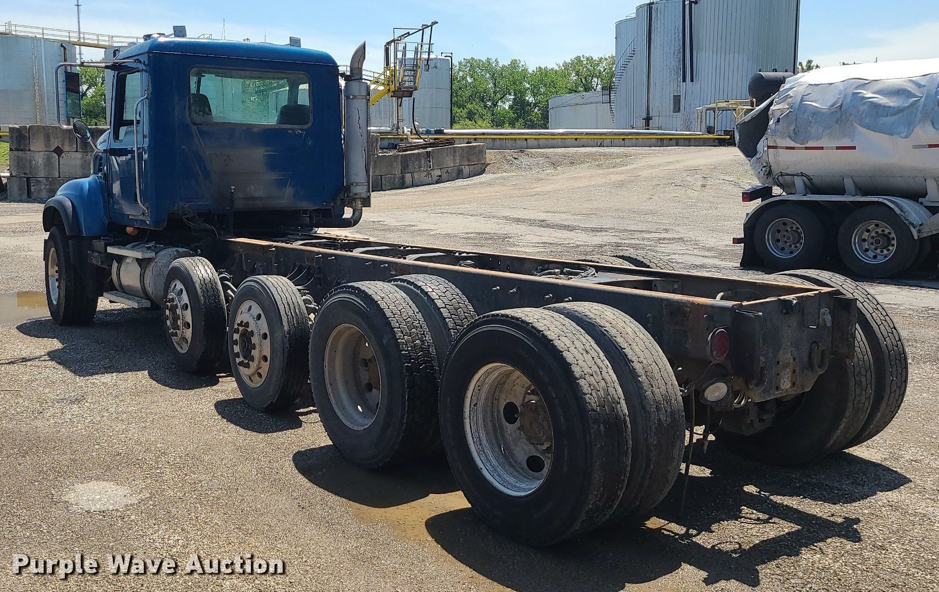 2002 Mack CV713 semi truck. Miles: 500,966 on odometer, VIN: 1M2AG12C42M002192. Engine Displacement: 12.0L, Cylinders: 6, Fuel type: Diesel. Transmission Automatic. Chassis Axles: 4, Suspension: Camelback, Brakes: Air, PTO, Truck chassis: 17'. Interior AC, Heat. Tires Front: 385/65R22.5, Rear: 11R22.5 , Lift axle: 225/70R22.5. Missouri title. Title distribution may be delayed up to 14 days from verification of funds. Vance Bros Inc.. 5201 Brighton Ave. Kansas City, MO 64130
