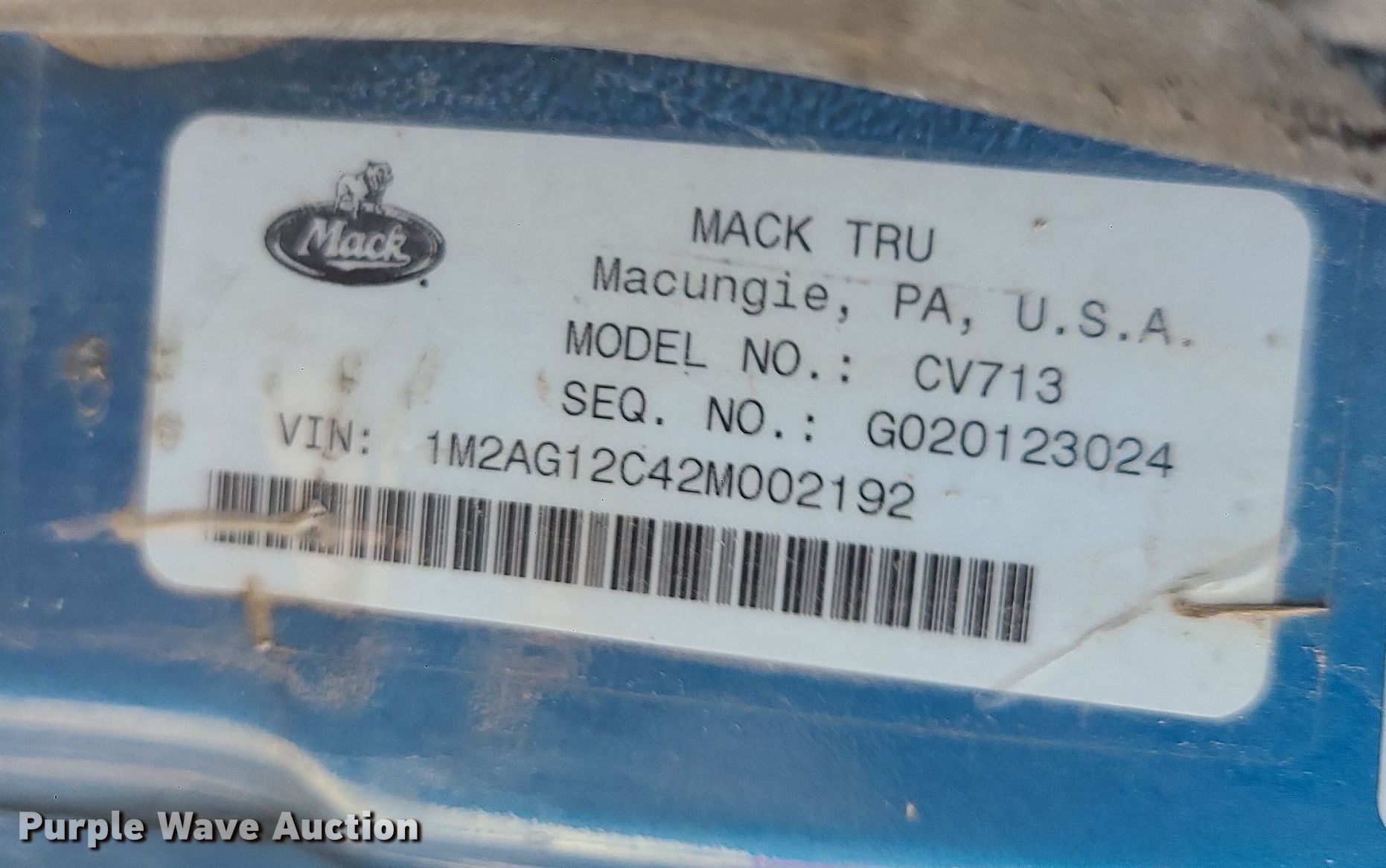 Purple Wave is selling a used Truck Tractor in Missouri. This item is a 2002 Mack CV713 semi truck with the following: Miles: 500,966 on odometer, VIN: 1M2AG12C42M002192