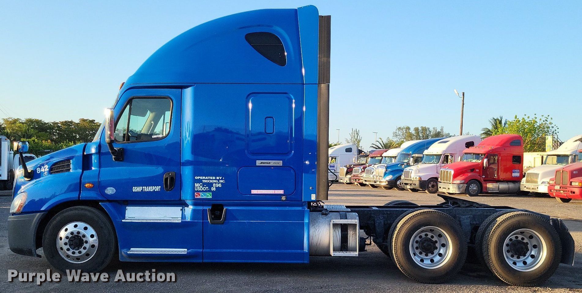 Purple Wave is selling a used Truck Tractor in Florida. This item is a 2015 Freightliner Cascadia 113 semi truck with the following: Miles: 672,336 on odometer, Hours: 22,022 on meter, Miles or hours may vary, unit still in use, VIN: 1FUJGHDV3FLGE4272, Unit #: 842