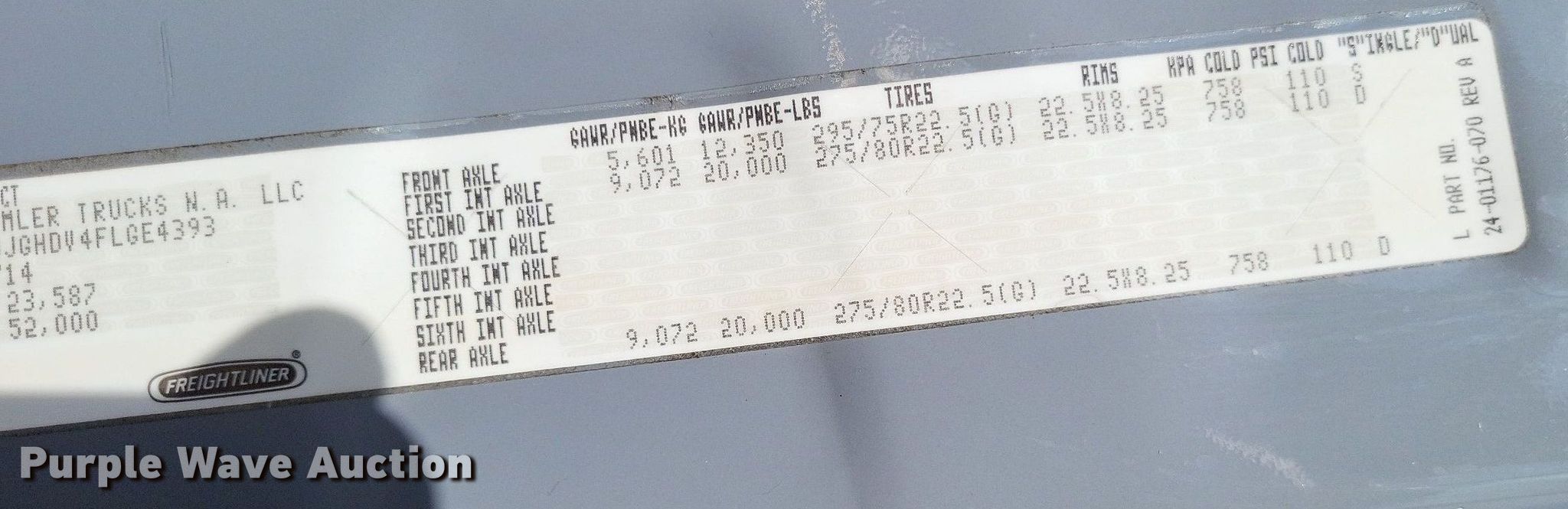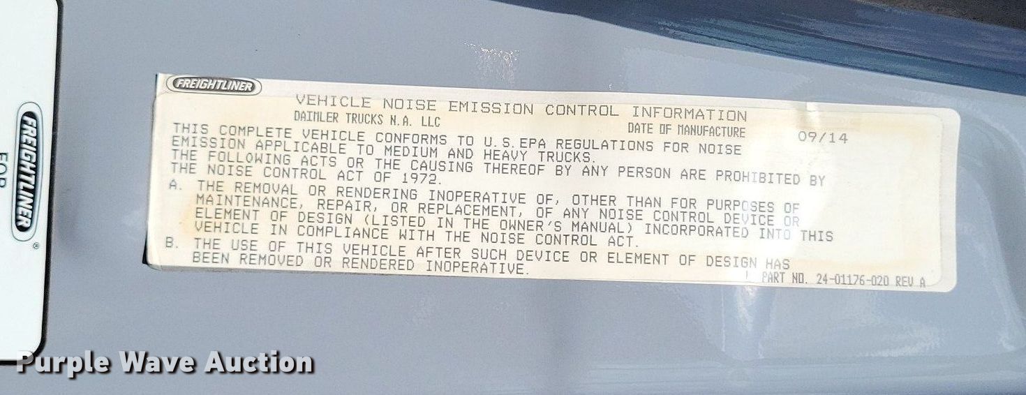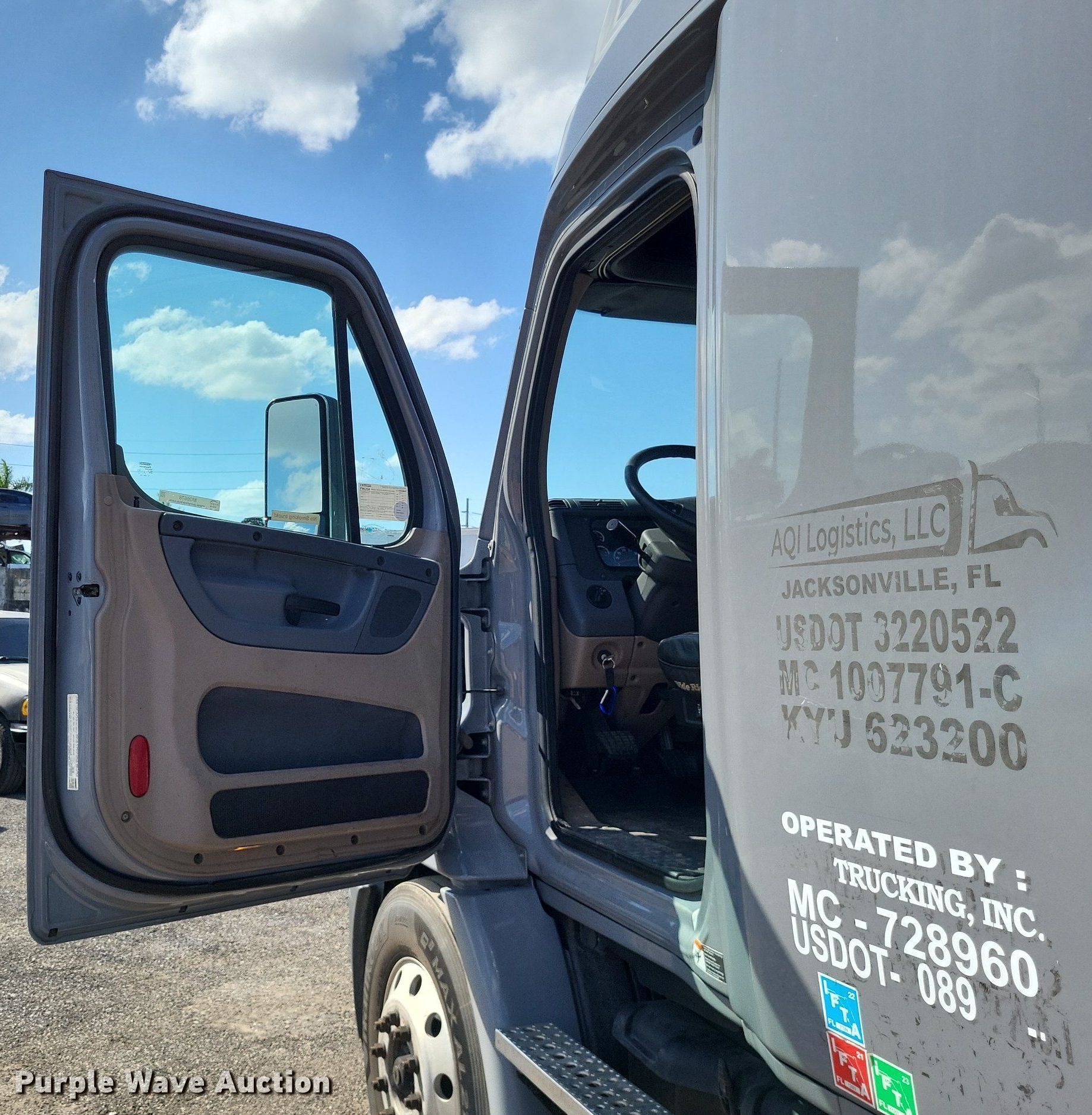 2015 Freightliner Cascadia 113 semi truck. Miles: 663,389 on odometer, Hours: 1,451 on meter, VIN: 1FUJGHDV4FLGE4393, Unit #: 829. Engine Detroit Diesel DD13, Displacement: 12.8L, Cylinders: 6, Fuel type: Diesel, Engine brake. Transmission Manual, Speed: 10. Chassis Axles: Tandem, Differential lock: Inter-axle, Suspension: Air Dump valves, Brakes: Air, GVWR: 52,000 lbs FAWR: 12,350 lbs, IAWR: 20,000 lbs, RAWR: 20,000 lbs. Interior AC, Heat, Heated mirrors, Power windows, Cruise control, Air ride cab, Sleeper Sleeper length: 5', Beds: Double bunk, Refrigerator. Features Deck plate: Aluminum, Fifth wheel type: Fixed, Fuel tank: Single. Tires Size: 295/75R22.5. Notes Dead battery, Passenger seat missing. Florida title. Title distribution may be delayed up to 30 days from verification of funds.. Sale conducted by order of secured party pursuant to section 9-610 of the Uniform Commercial Code as adopted, each respectively, in the state of Oklahoma and Florida. 2141 Northwest 141st Street. Opa-locka, FL 33054