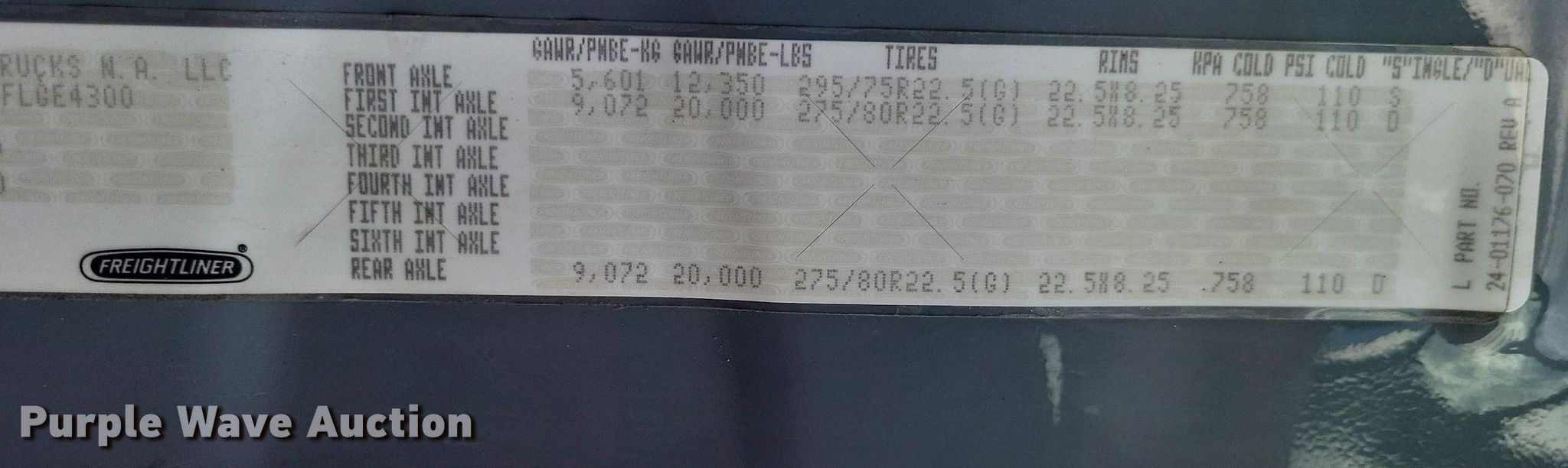 2015 Freightliner Cascadia 113 semi truck. Miles: 599,364 on odometer, Hours: 22,089 on meter, VIN: 1FUJGHDV4FLGE4300, Unit #: 833. Engine Detroit Diesel DD13, Displacement: 12.8L, Cylinders: 6, Fuel type: Diesel, Engine brake. Transmission Manual, Speed: 10. Chassis Axles: Tandem, Differential lock: Inter-axle, Suspension: Air Dump valves, Brakes: Air, GVWR: 52,000 lbs FAWR: 12,350 lbs, IAWR: 20,000 lbs, RAWR: 20,000 lbs. Interior AC, Heat, Heated mirrors, Power windows, Cruise control, Air ride cab, Sleeper Sleeper length: 5', Beds: Double bunk, Refrigerator, Rear climate control. Features Deck plate: Aluminum, Fifth wheel type: Fixed, Fuel tank: Single. Tires Size: 295/75R22.5. Notes Windshield chipped or cracked, Dead battery, Passenger seat missing. Florida title. Title distribution may be delayed up to 30 days from verification of funds.. Sale conducted by order of secured party pursuant to section 9-610 of the Uniform Commercial Code as adopted, each respectively, in the state of Oklahoma and Florida. 2141 Northwest 141st Street. Opa-locka, FL 33054