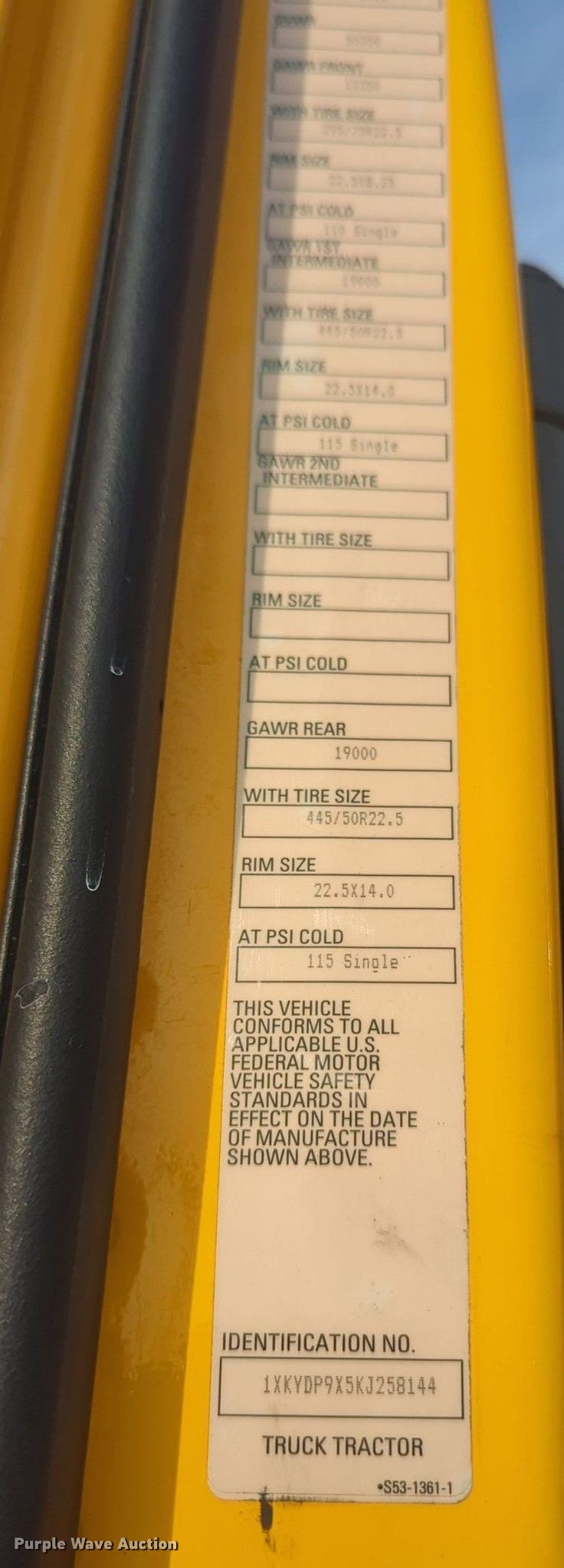 - VIN: 1XKYDP9X5KJ258144