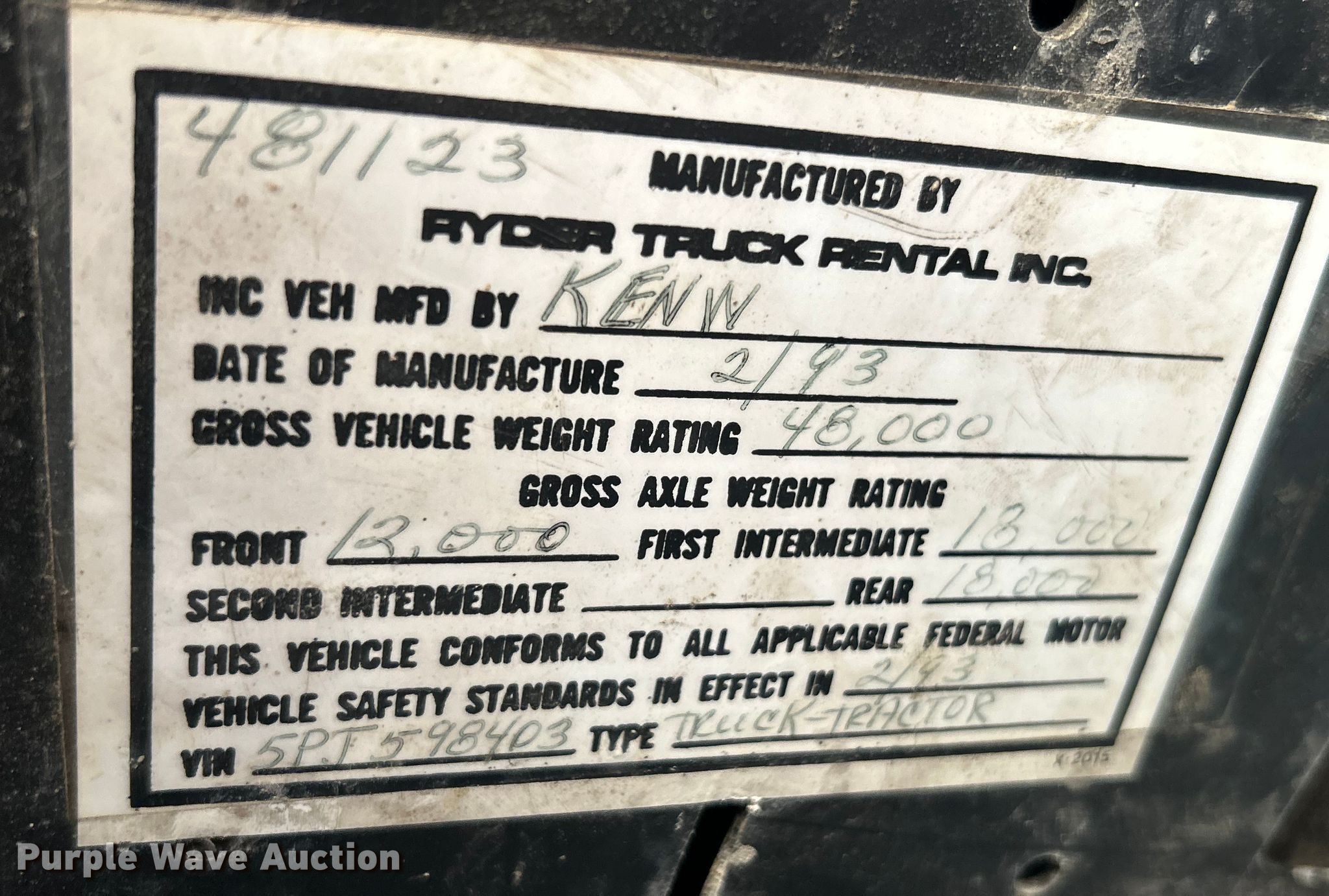 Purple Wave is selling a used Truck Tractor in Missouri. This item is a 1993 Kenworth T800 semi truck with the following: Miles: 580,300 on odometer, VIN: 1NKDLE9X5PJ598403