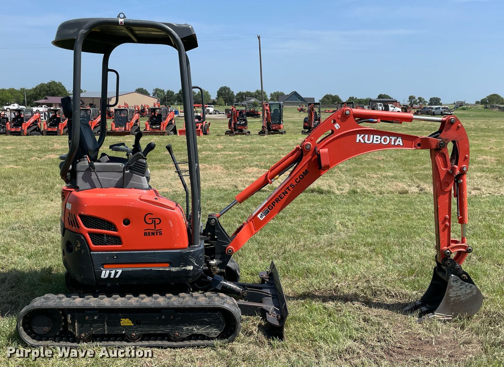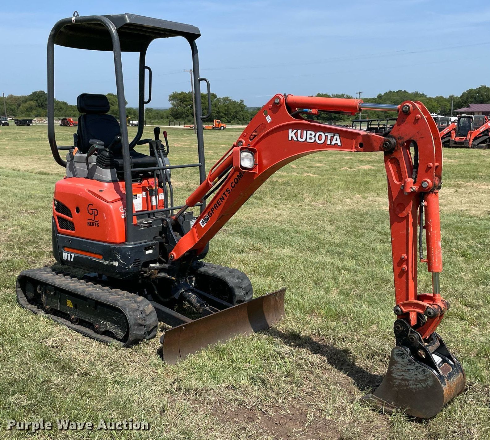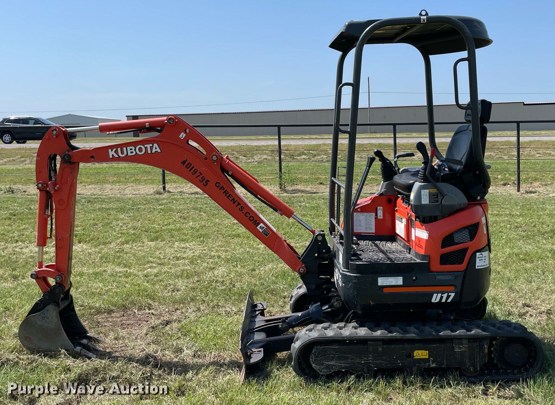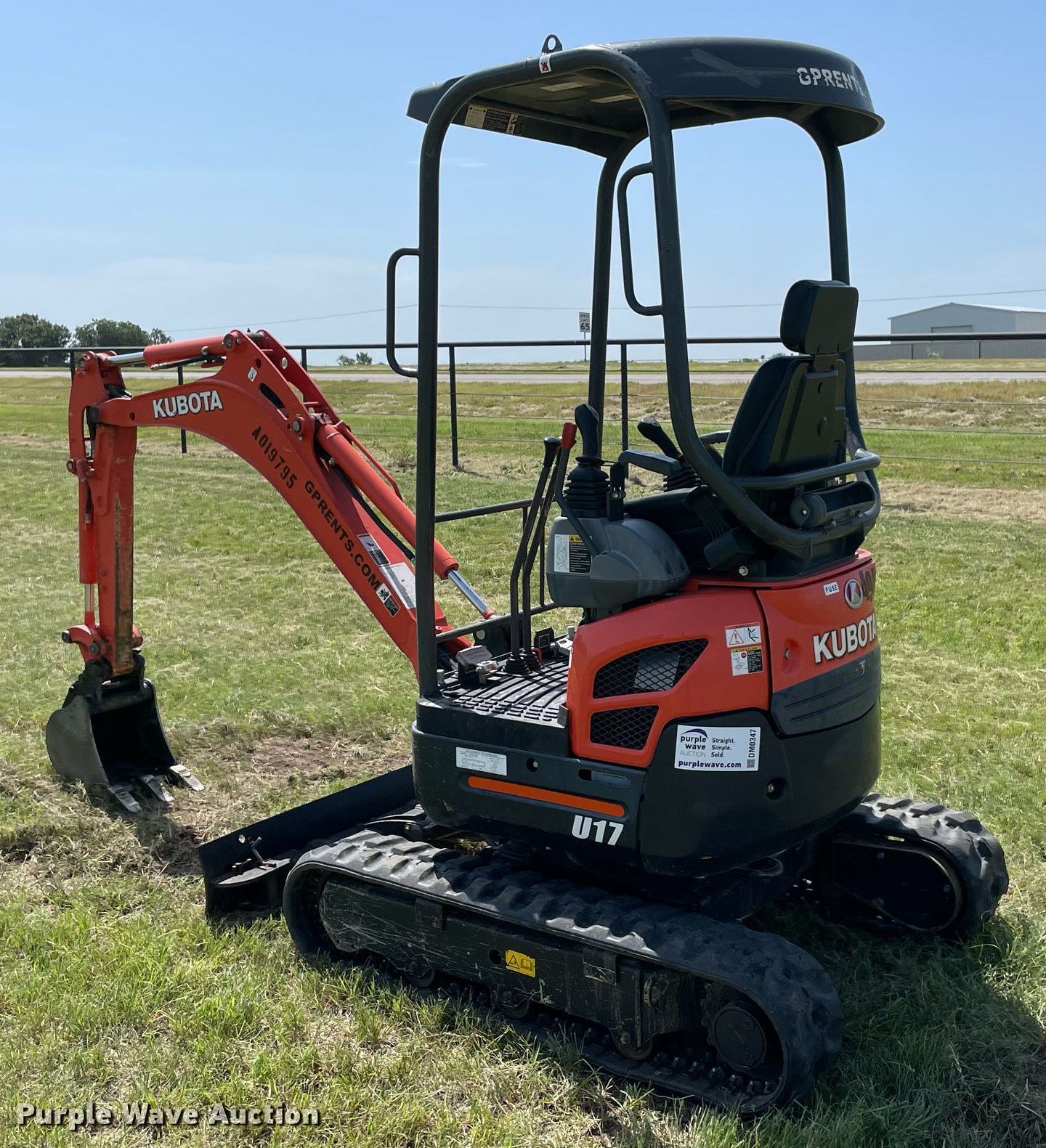Purple Wave is selling a used Mini Excavator in Oklahoma. This item is a 2019 Kubota U17 mini excavator with the following: Hours: 665 on meter, Serial: KBCU0173LK3J49405