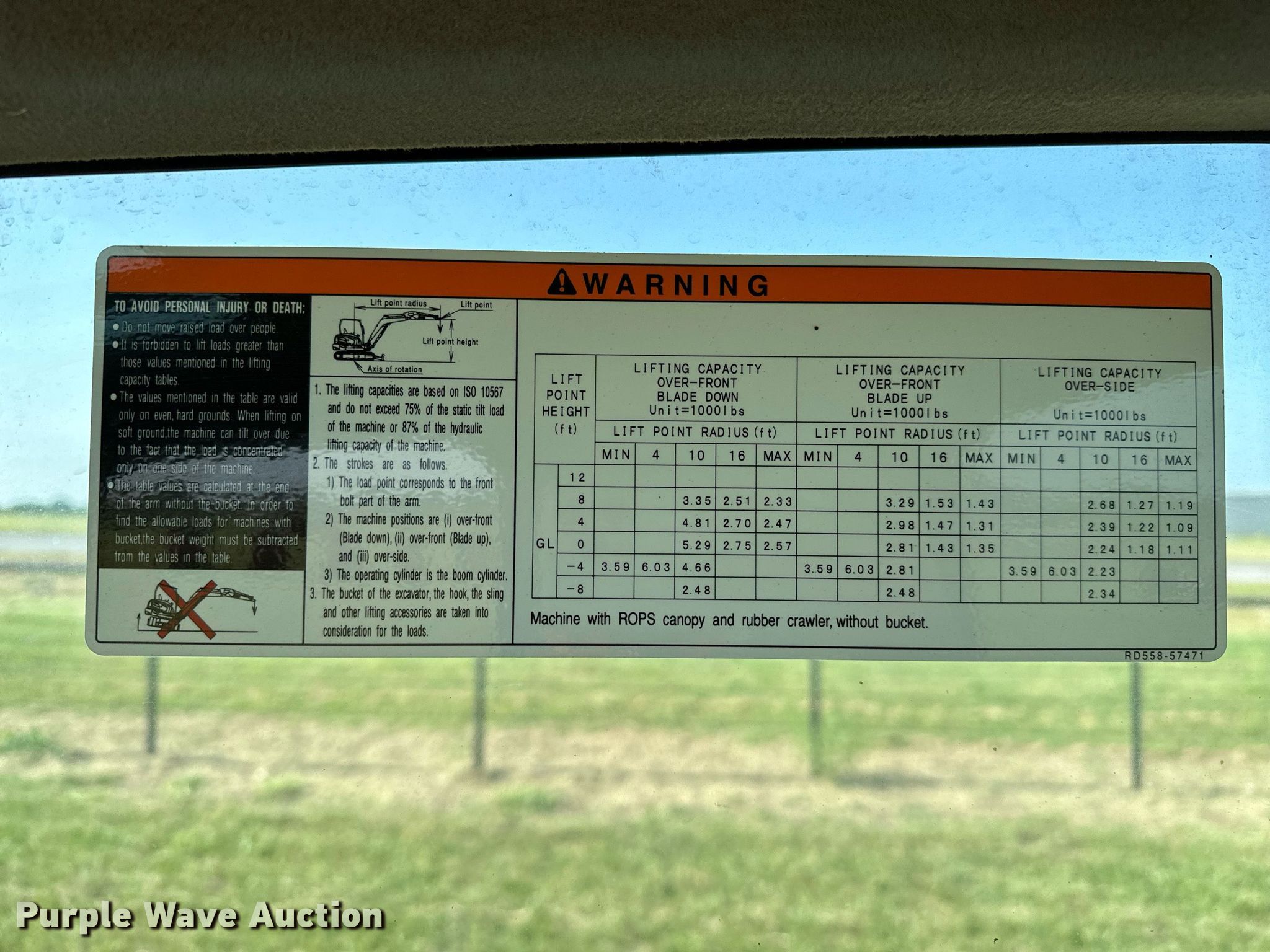 Purple Wave is selling a used Mini Excavator in Oklahoma. This item is a 2020 Kubota U55-4 mini excavator with the following: Hours: 1,333 on meter, Serial: KBCU0554CK3J28228