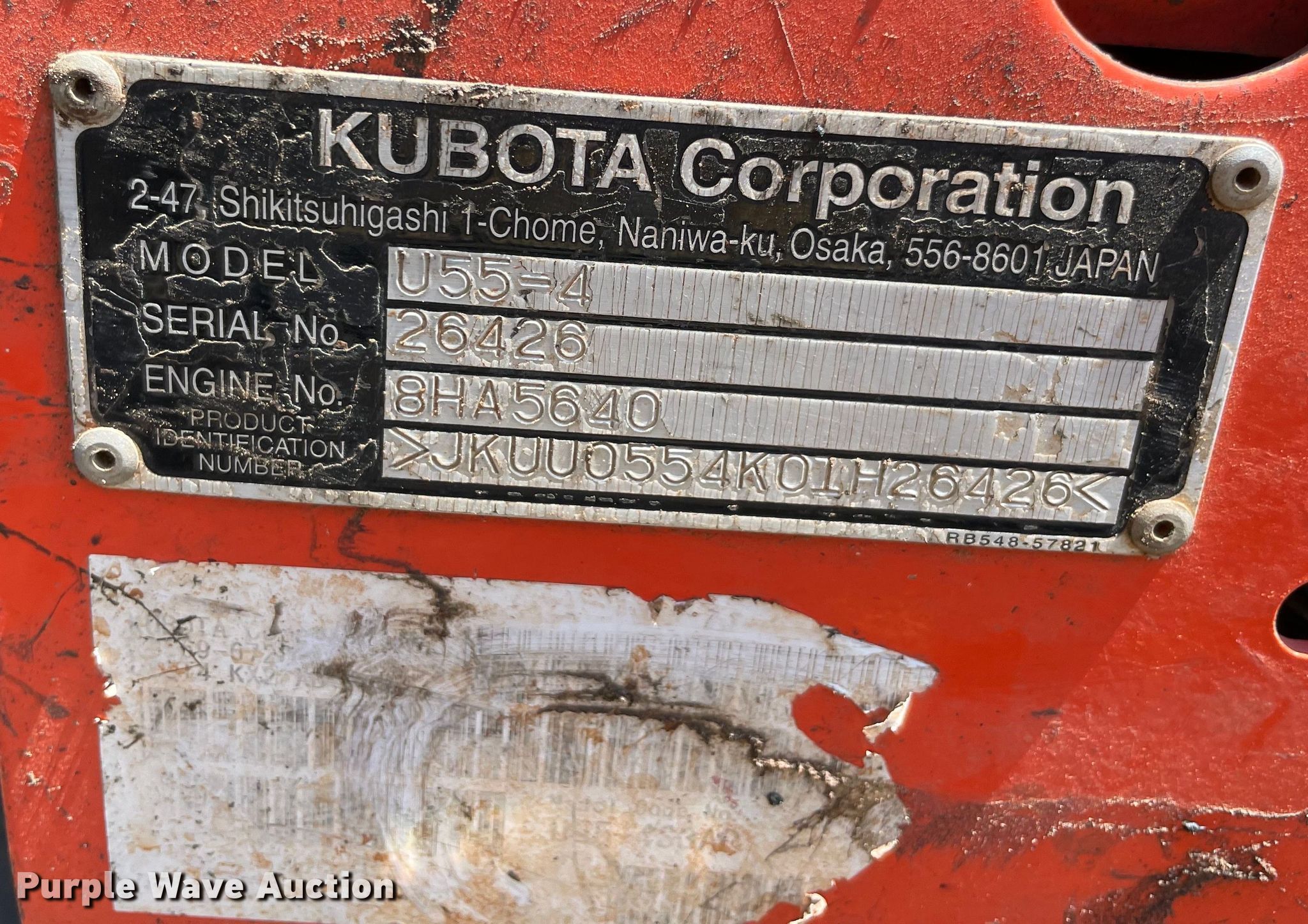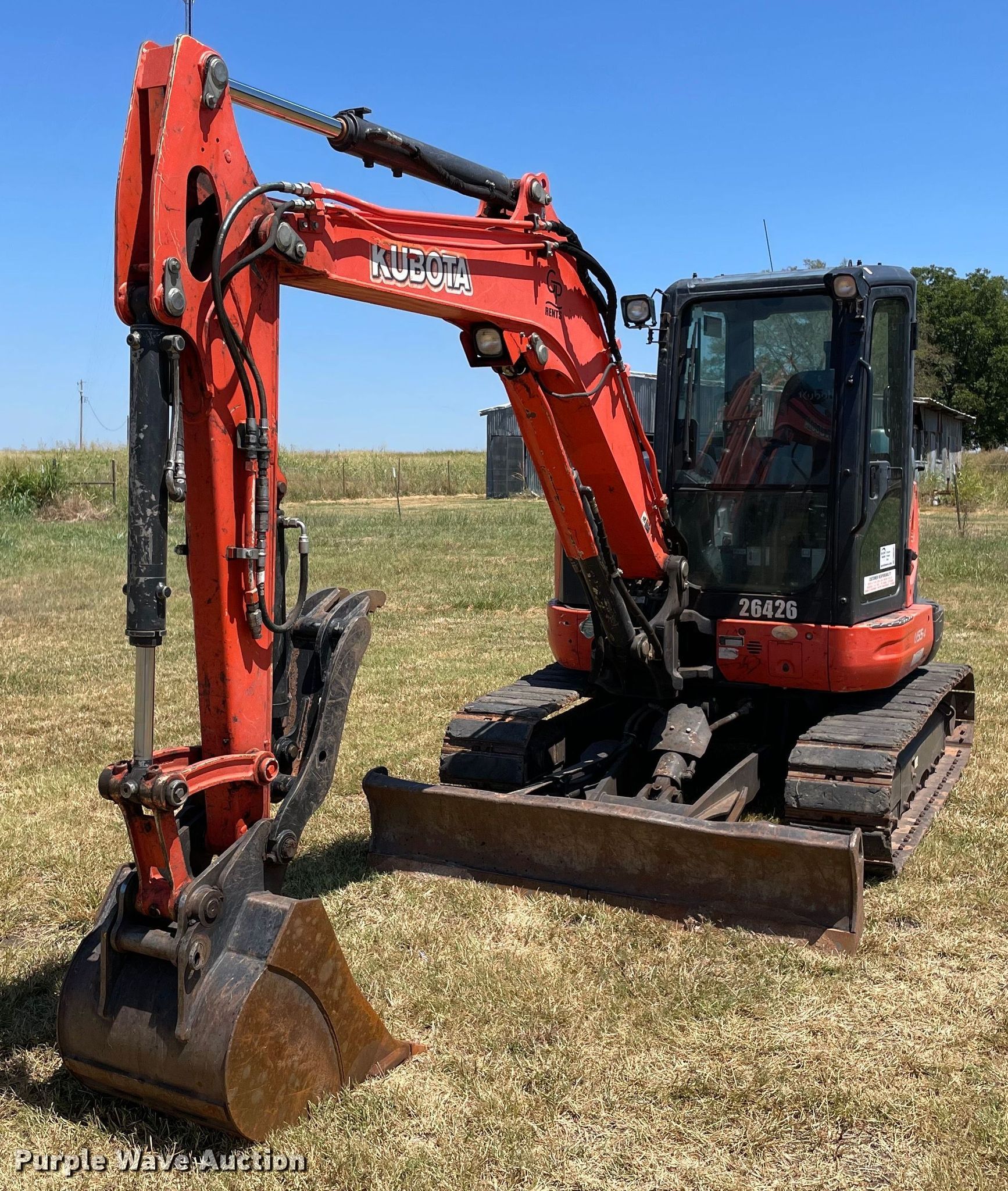 Purple Wave is selling a used Mini Excavator in Oklahoma. This item is a 2017 Kubota U55-4 excavator with the following: Hours: 1 on meter, Serial: 26426