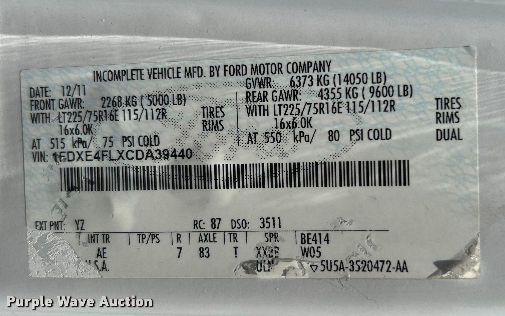 - VIN: 1FDXE4FLXCDA39440