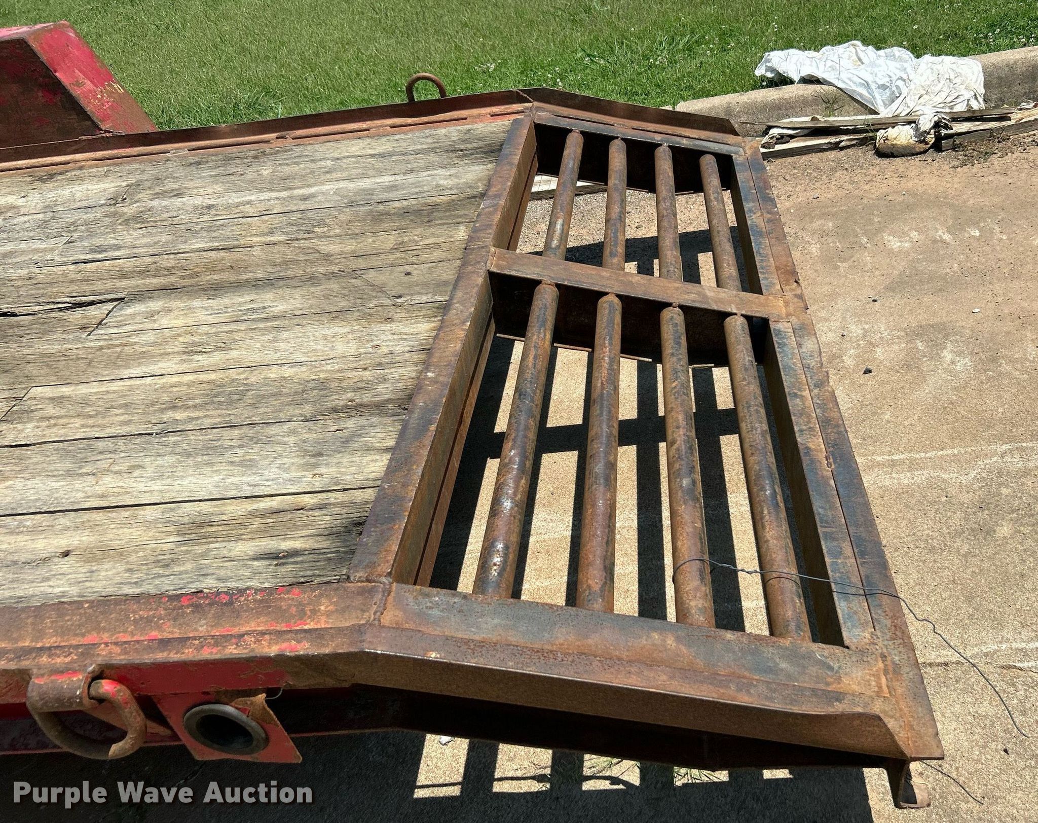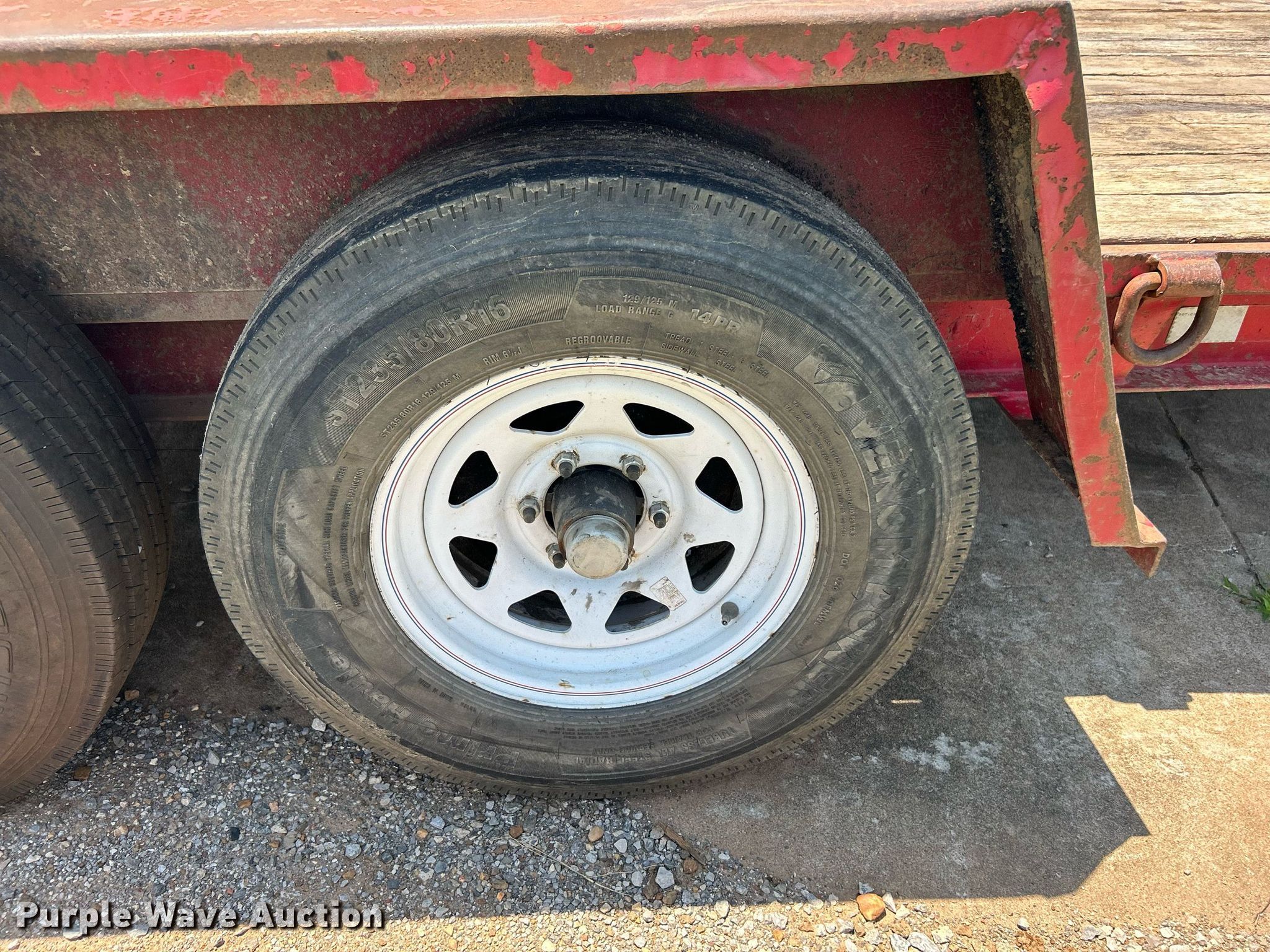 2001 Towmaster utility trailer. VIN: 4KNUT18221L161445, Unit #: 14-256. Dimensions Overall: 24' L x 101" W, Deck: 16' L x 81" W, Tail length: 2'. Features Deck type: Wood. Chassis Ball hitch: 2 5/16", Landing gear: Single, Suspension: Spring, Brakes: Electric, Axles: Tandem, GVWR: 15,100 lbs, GAWR: 12,000 lbs. Tires Size: 235/80R16. Oklahoma title. Title distribution may be delayed up to 14 days from verification of funds. Manhattan Road & Bridge. 2553 South 55th Street East. Muskogee, OK 74403