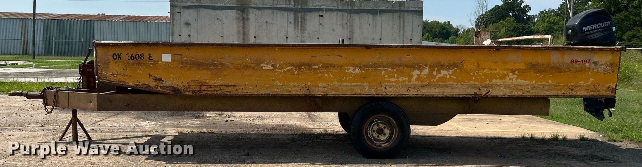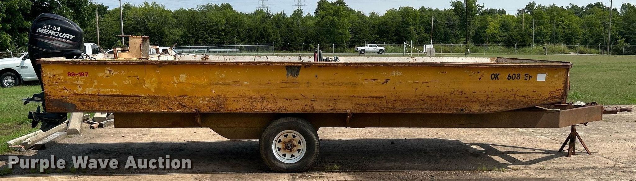 2012 Shop built boat. Length: 20', Hull ID: OKZR007AA313, Unit #: 99-197, Engine unit#: 97-01. Engine Engine type: Outboard, Mercury, Serial: 1C244198, Displacement: 0.996L, Cylinders: 4, Fuel type: Gas, HP: 40. Trailer Shop Built, Overall length: 20', Overall width: 94", Ball hitch size: 2", Axles: Single, Tire size: 7.00-15LT. Manhattan Road & Bridge. 2553 South 55th Street East. Muskogee, OK 74403