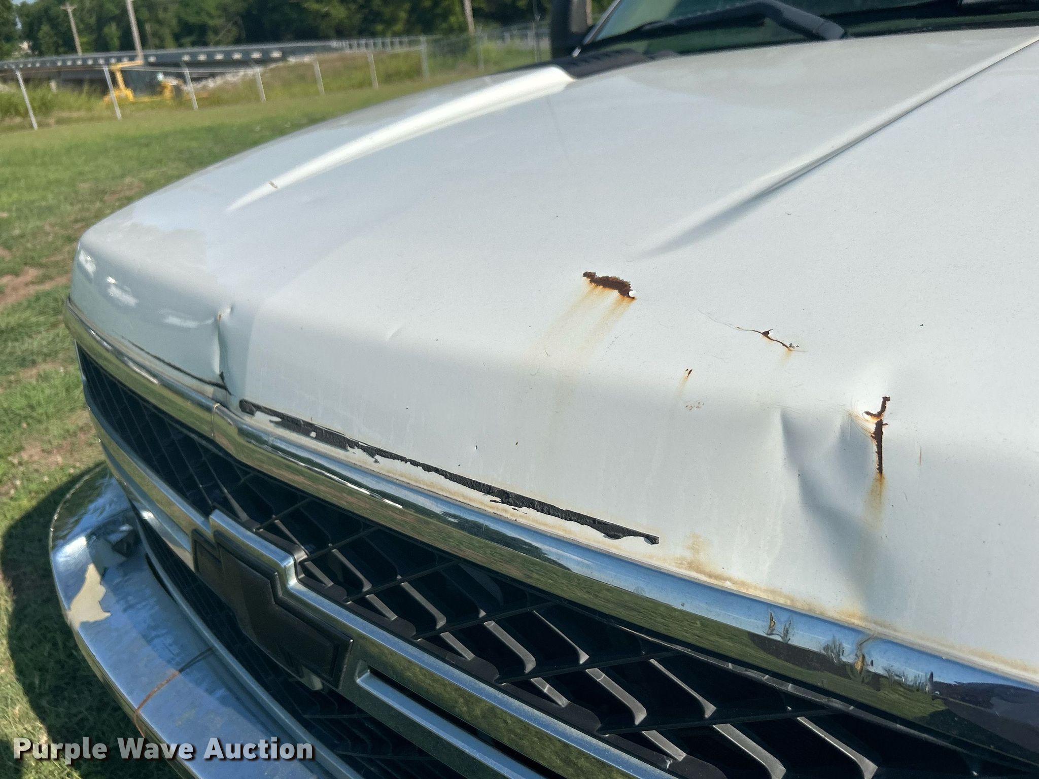 2009 Chevrolet Silverado 3500 HD flatbed pickup truck. Miles: 94,648 on odometer, VIN: 1GBJC74KX9E126743, Unit #: 10-136. Engine Displacement: 6.0L V8 OHV, Cylinders: 8, Fuel type: Gas. Transmission Automatic. Interior AC, Heat, Cruise control. Features Flatbed 11' L x 8' W, Hitch: Gooseneck, Auxiliary fuel tank Capacity: 100 gallons, Fill rite pump, Nozzle. Tires Size: 235/80R17. Notes Dash warning indicator: Check engine, Windshield chipped or cracked. Arkansas title. Title distribution may be delayed up to 14 days from verification of funds. Manhattan Road & Bridge. 2553 South 55th Street East. Muskogee, OK 74403