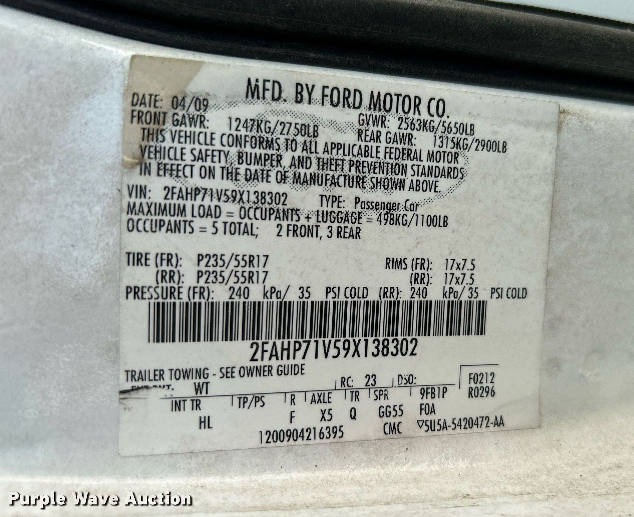 Purple Wave is selling a used Passenger Vehicle in Oklahoma. This item is a 2009 Ford Crown Victoria Police Interceptor with the following: Miles: 115,876 on odometer, VIN: 2FAHP71V59X138302, Unit #: 10-638