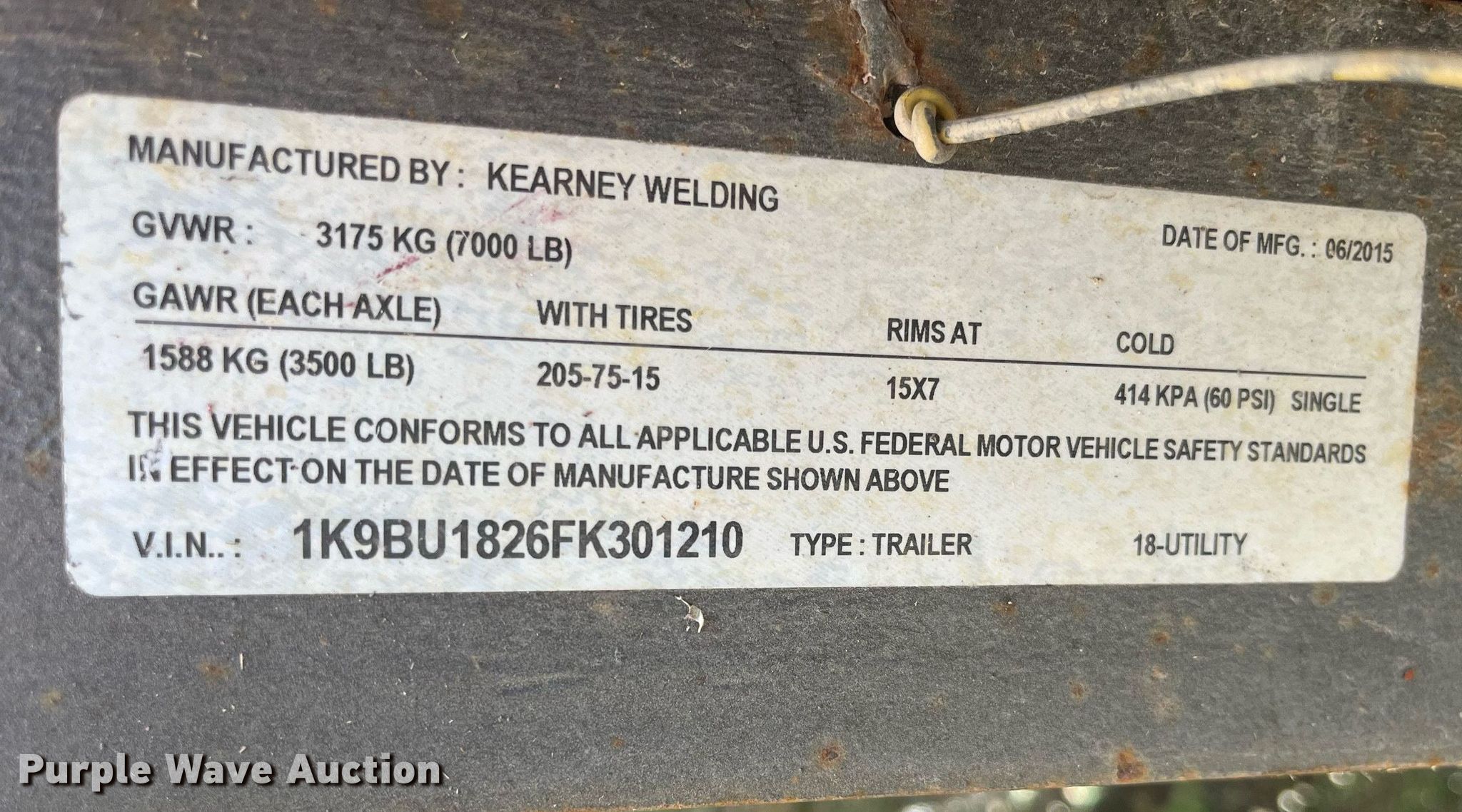 2016 Kearney utility trailer | SOLD! August 30 Vehicles and Equipment Auction