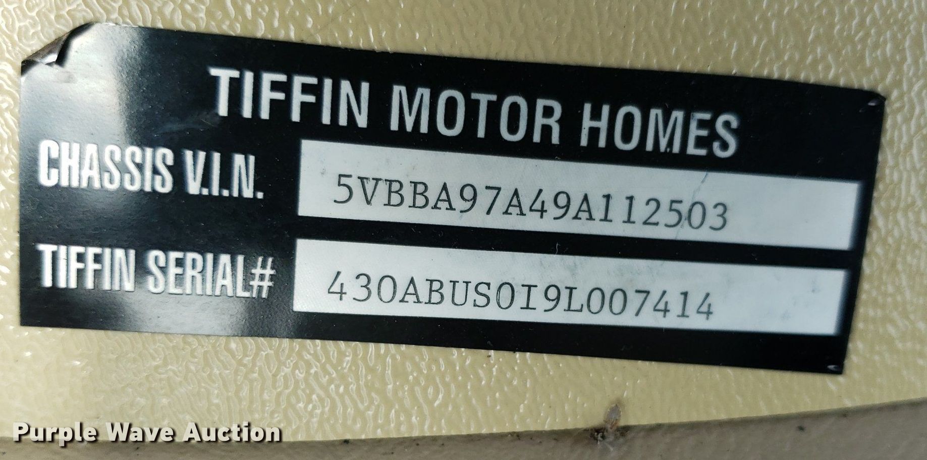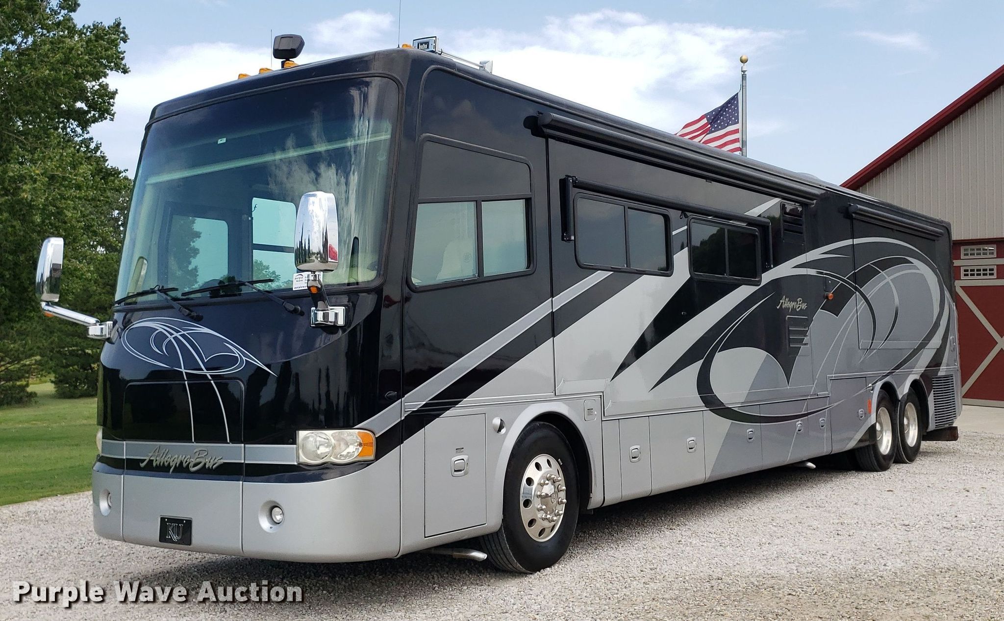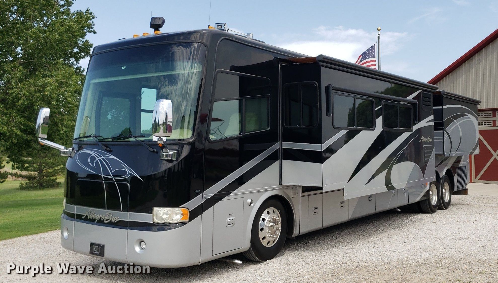 Purple Wave is selling a used RV or Camper in Kansas. This item is a 2009 Tiffin Motor Homes Allegra Bus RV with the following: Miles: 49,741 on odometer, Hours: 1,317 on meter, VIN: 5VBBA97A49A112503