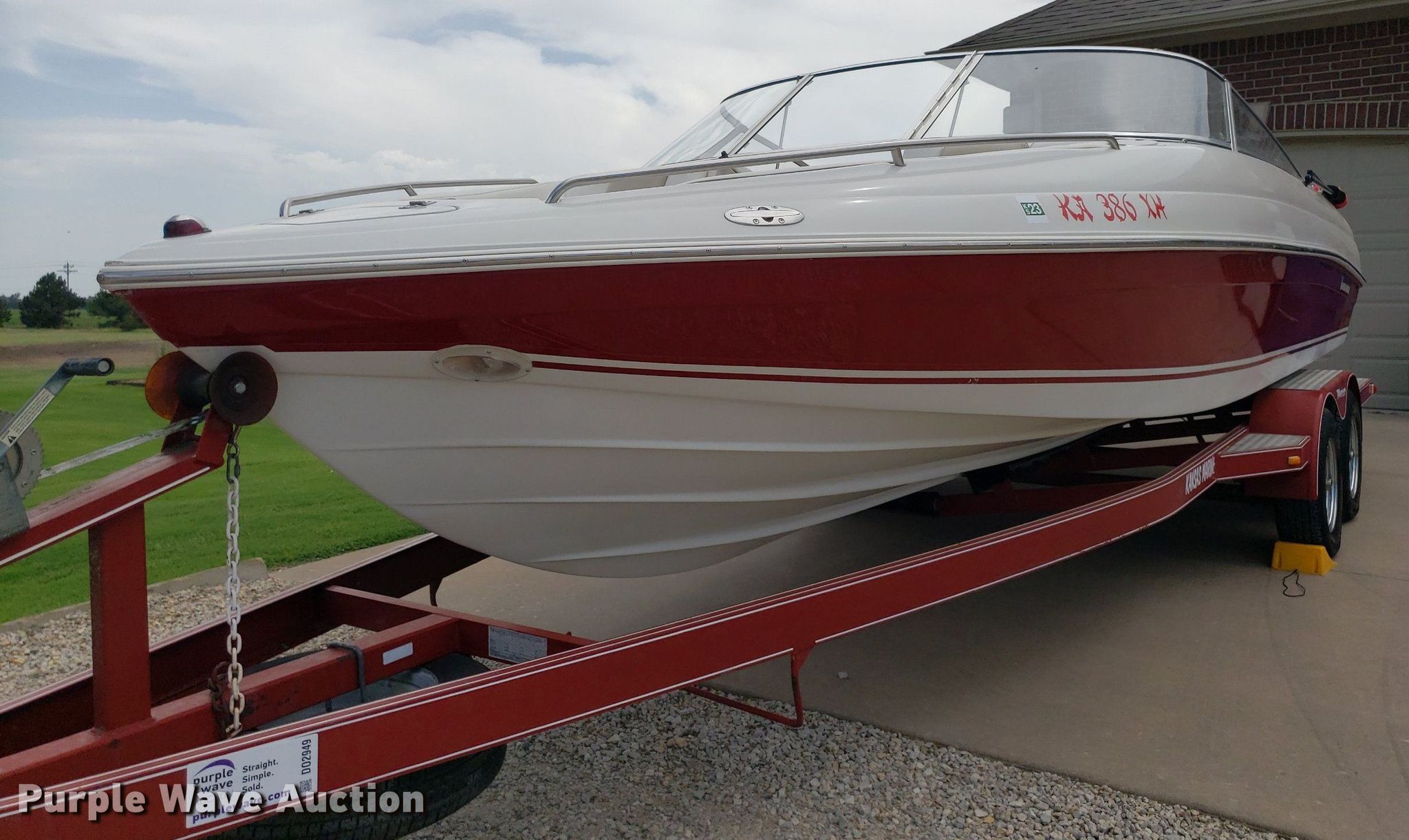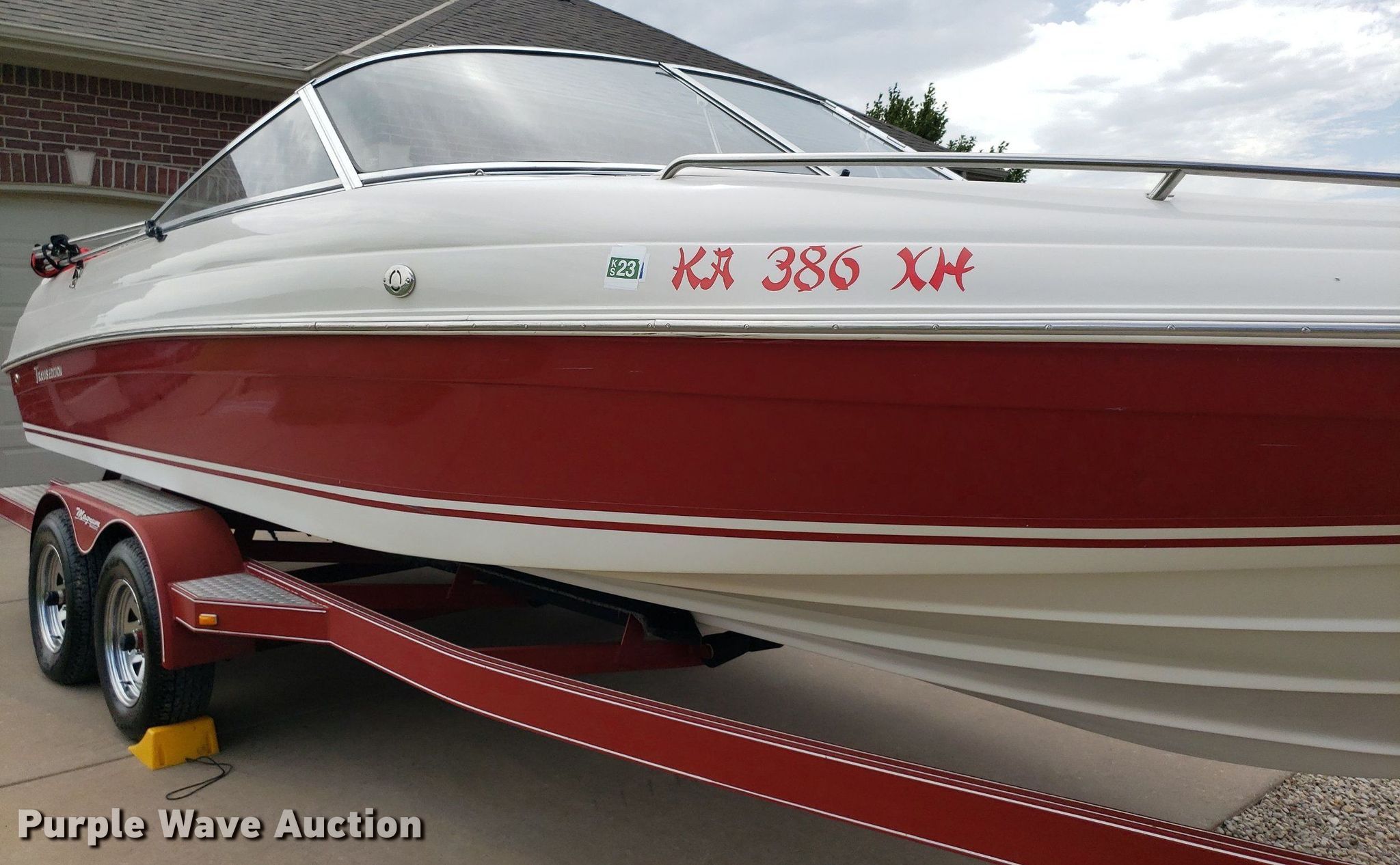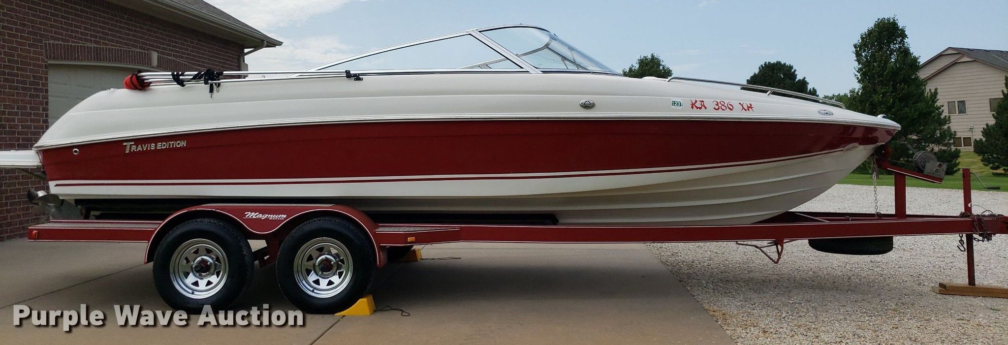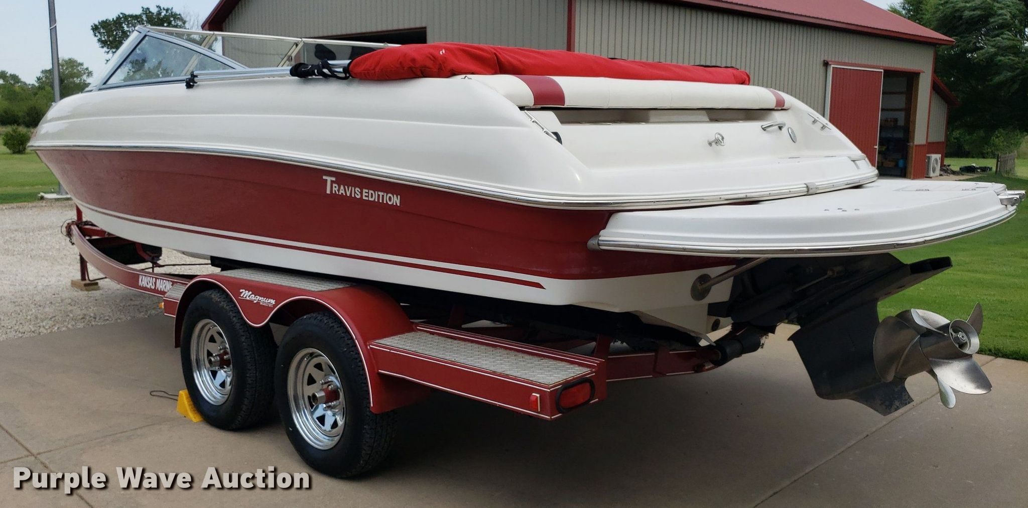 2002 Starcraft Stardeck 2410 Travis Edition boat. Length: 24', Hull ID: PLX65256J102, Unit #: KA386XH. Engine Engine type: Inboard, Volvo Penta, Cylinders: 8, Fuel type: Gas, Outdrive Make: Volvo Penta, Propeller: Stainless steel. Operators station Capacity Person: 10, 1,800 lbs. Features Bimini top. Trailer Magnum, Overall length: 26', Overall width: 102", Ball hitch size: 2", Axles: Tandem, Tire size: 205/75R15. Boat- Transfer of ownership documentation will be a bill of sale Trailer- Kansas title. Distribution of ownership documentation may be delayed up to 14 days from verification of funds. Colwich, KS 67030