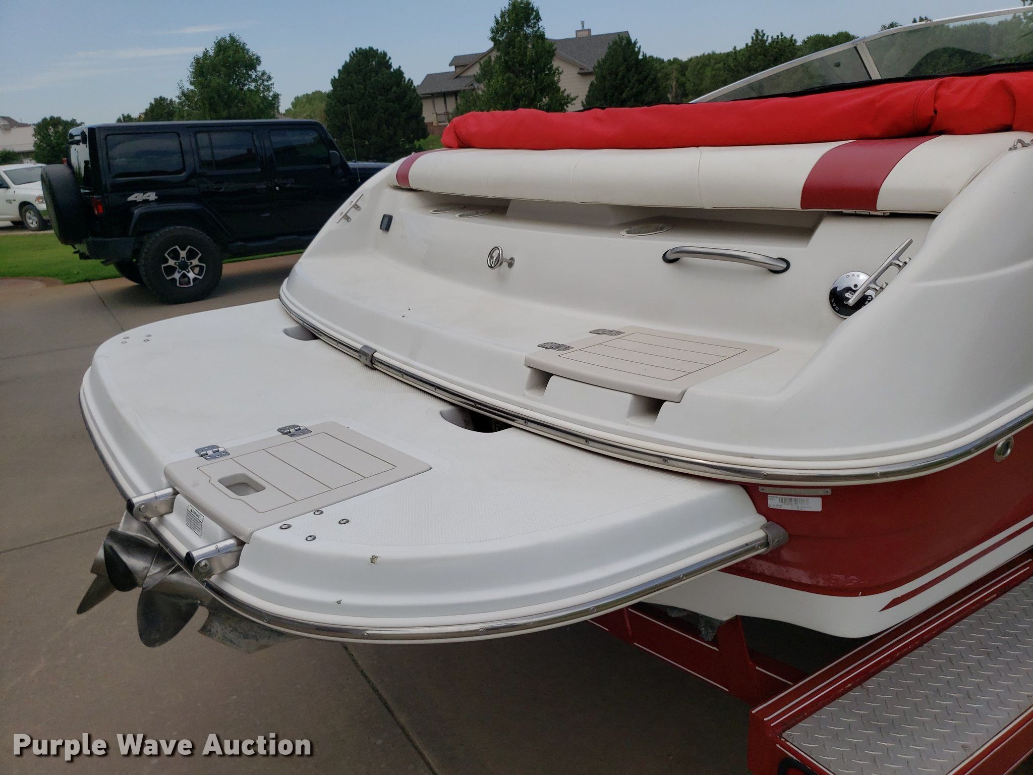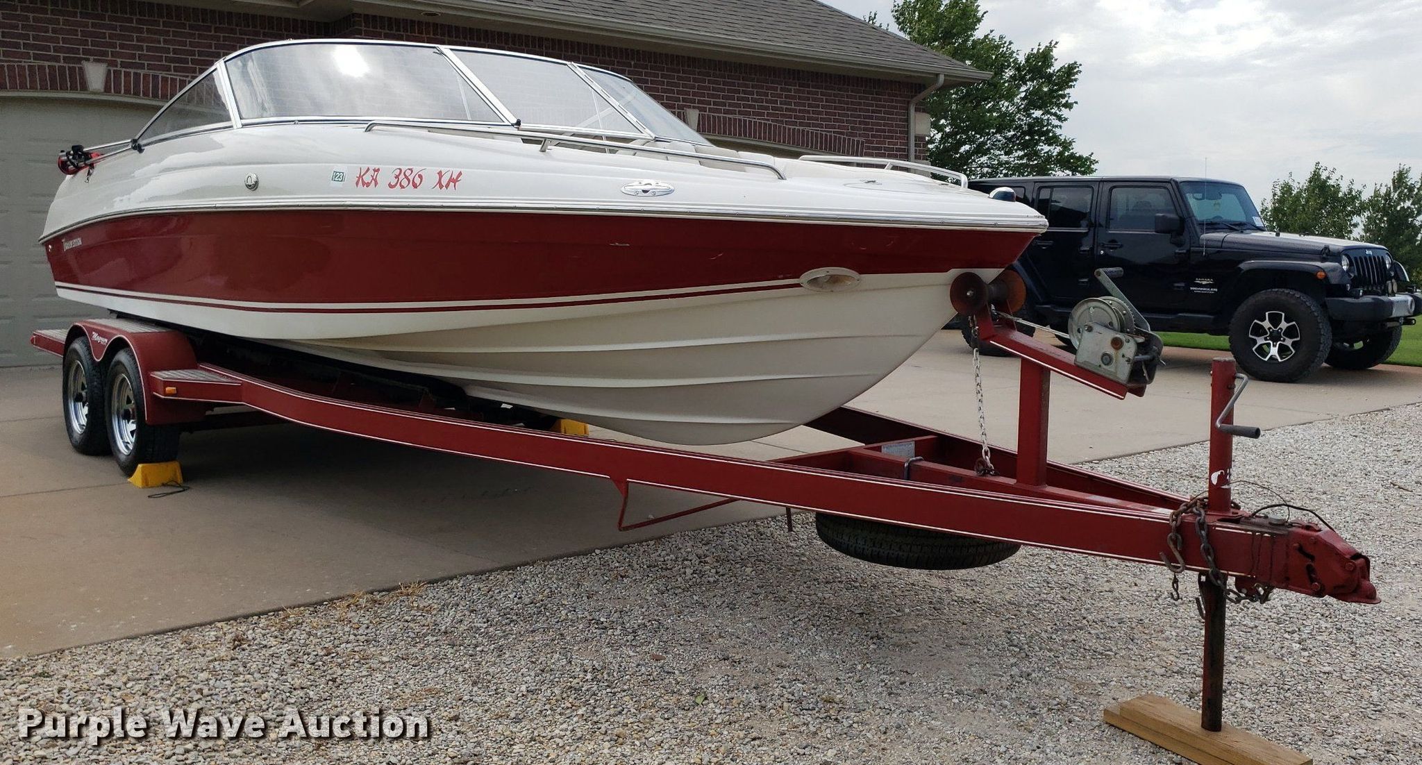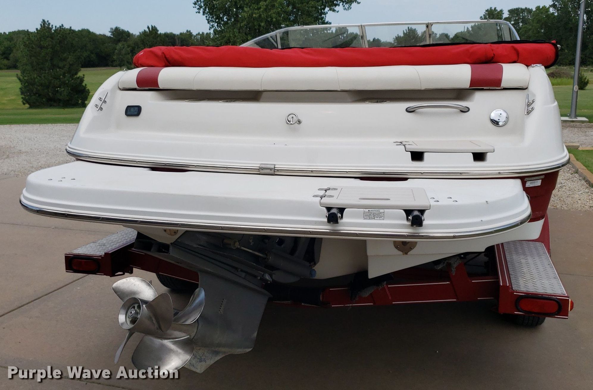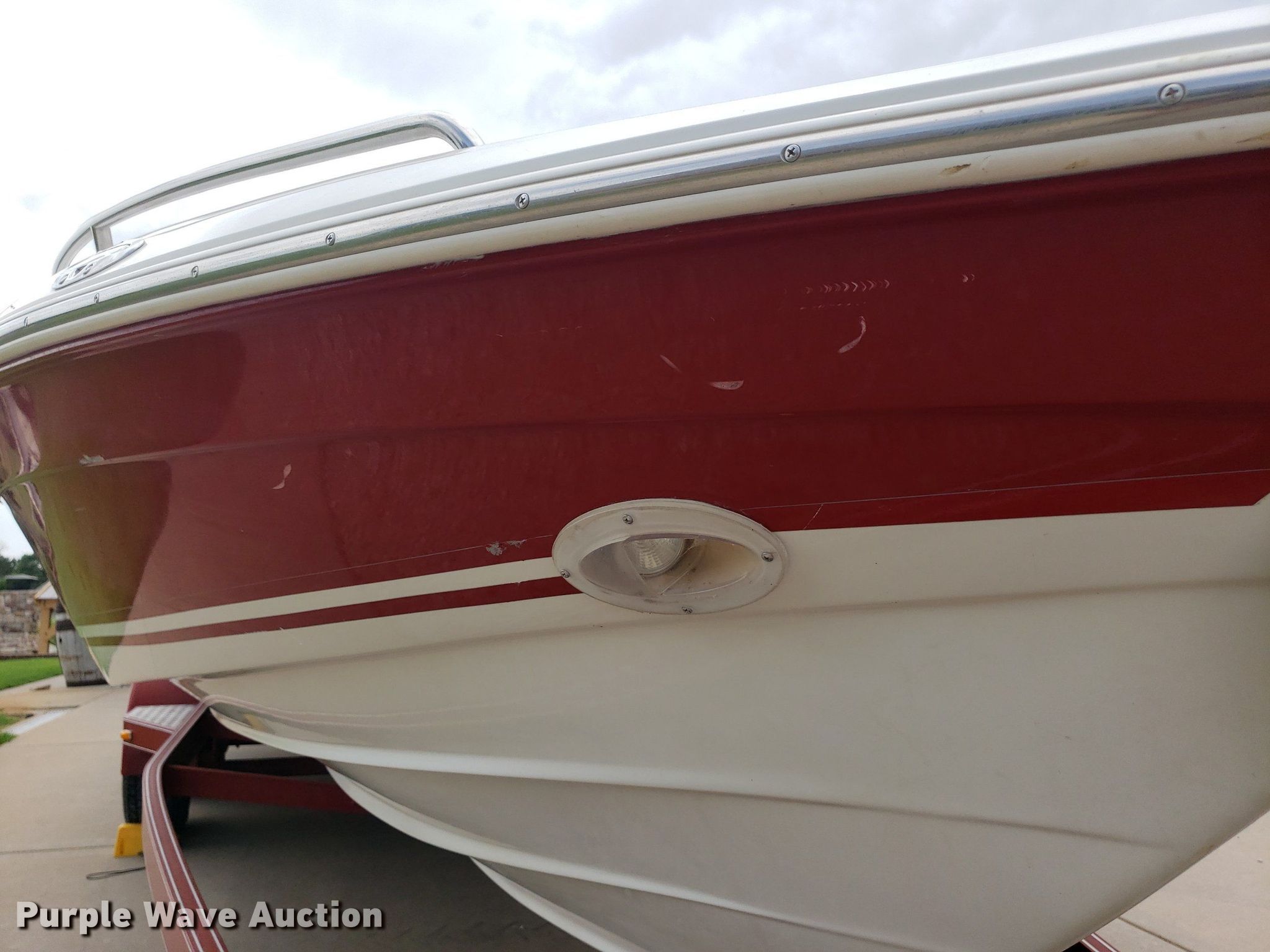 2002 Starcraft Stardeck 2410 Travis Edition boat. Length: 24', Hull ID: PLX65256J102, Unit #: KA386XH. Engine Engine type: Inboard, Volvo Penta, Cylinders: 8, Fuel type: Gas, Outdrive Make: Volvo Penta, Propeller: Stainless steel. Operators station Capacity Person: 10, 1,800 lbs. Features Bimini top. Trailer Magnum, Overall length: 26', Overall width: 102", Ball hitch size: 2", Axles: Tandem, Tire size: 205/75R15. Boat- Transfer of ownership documentation will be a bill of sale Trailer- Kansas title. Distribution of ownership documentation may be delayed up to 14 days from verification of funds. Colwich, KS 67030