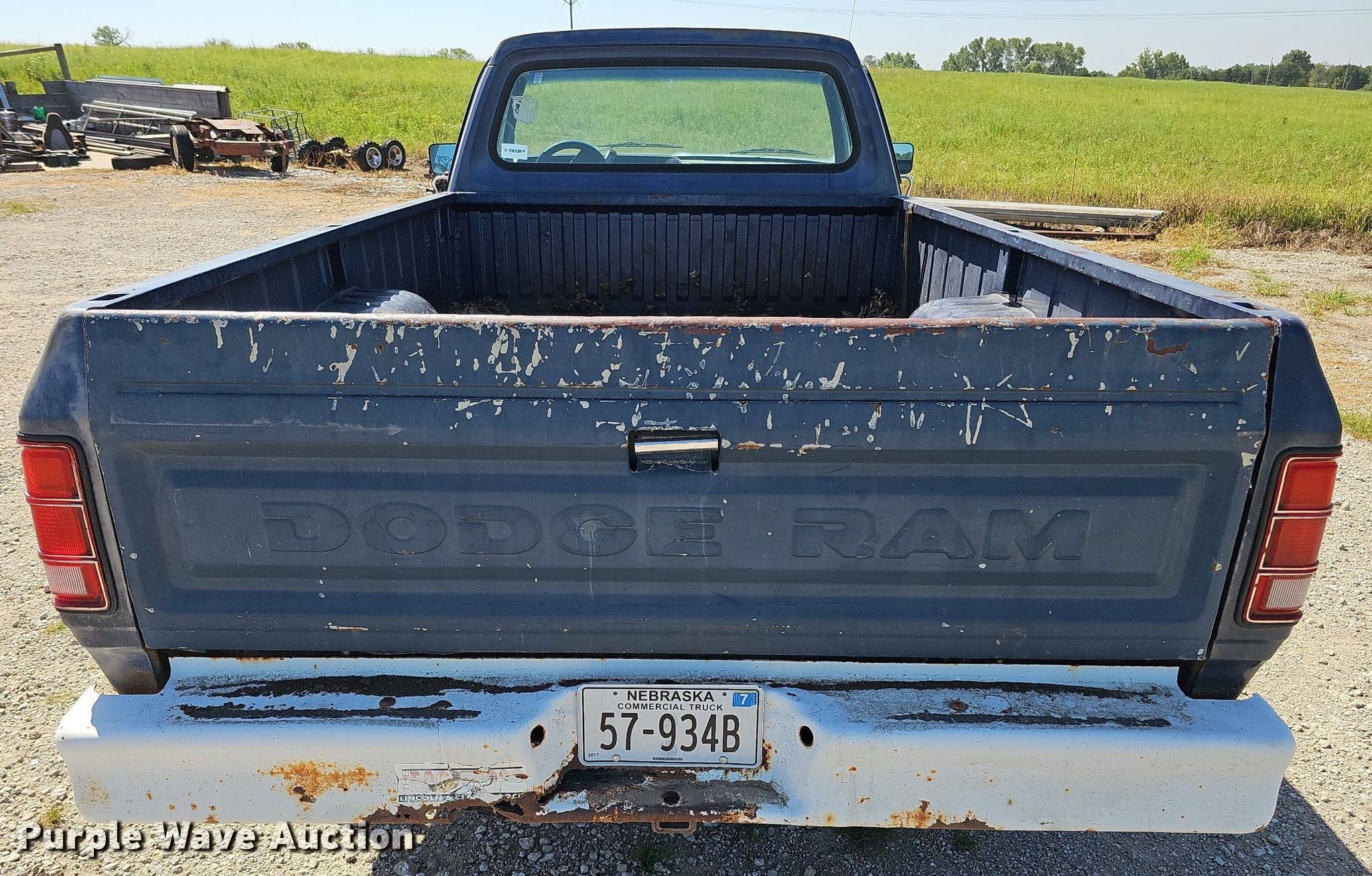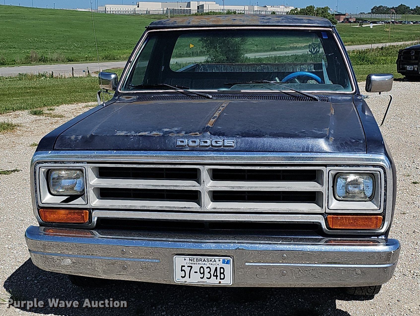 1986 Dodge D100 Custom pickup truck. Miles: 32,041 on odometer, VIN: 1B7FD04T9GS005277. Engine Displacement: 5.2L V8 OHV, Cylinders: 8, Fuel type: Gas. Transmission Automatic. Interior AC, Heat. Tires Size: LT235/75R15. Notes Dash warning indicator: Brake, Non-operational AC, compressor lines missing, Non-operational driver side exterior door handle. Nebraska title. Mileage has not been verified. Exempt will be written in the odometer disclosure on the title. Title distribution may be delayed up to 14 days from verification of funds. 72932 Nebraska 50. Tecumseh, NE 68450