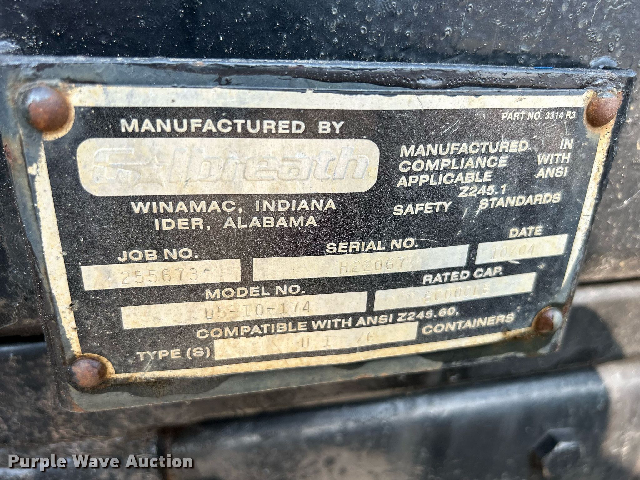 1998 Mack RB690S roll-off container truck. Miles: 653,049 on odometer, Hours: 33,676 on meter, VIN: 1M2AM20C2WM003073. Engine Mack EM7-300, Displacement: 12.0L, Cylinders: 6, Fuel type: Diesel, HP: 300. Transmission Mack Maxitorque T2070, Manual, Speed: 7. Chassis Axles: Tandem, Suspension: Camelback, Brakes: Air, PTO, Wheelbase: 261". Interior AC, Heat, Heated mirrors, Cruise control. Features Roll-off bed Galdreath U5-IO-174, Serial: H22067, 23' L x 36" W, Roll tarp, Ram: Double. Tires Front: 425/65R22.5, Rear: 315/80R22.5. Notes Windshield chipped or cracked, AC belt missing, Rear winch cylinder issue, leaks. Iowa title. Title distribution may be delayed up to 14 days from verification of funds. wemiga waste inc. 1005 W Washington St. Mount Pleasant, IA 52641