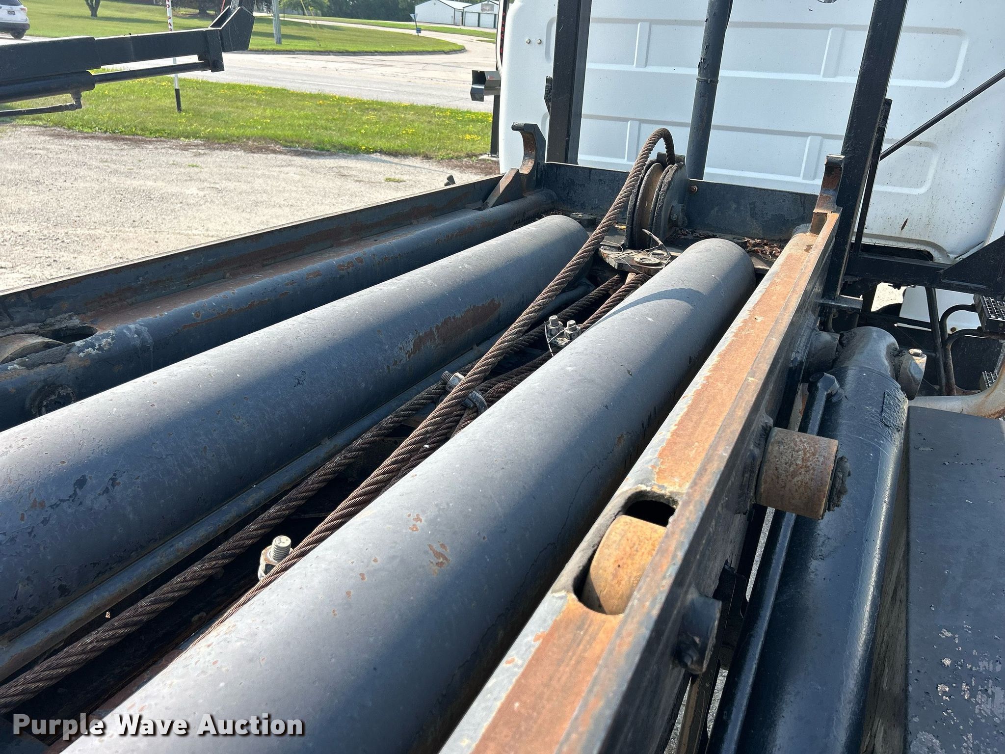Purple Wave is selling a used Rollback or Tow Truck in Iowa. This item is a 1998 Mack RB690S roll-off container truck with the following: Miles: 653,049 on odometer, Hours: 33,676 on meter, VIN: 1M2AM20C2WM003073