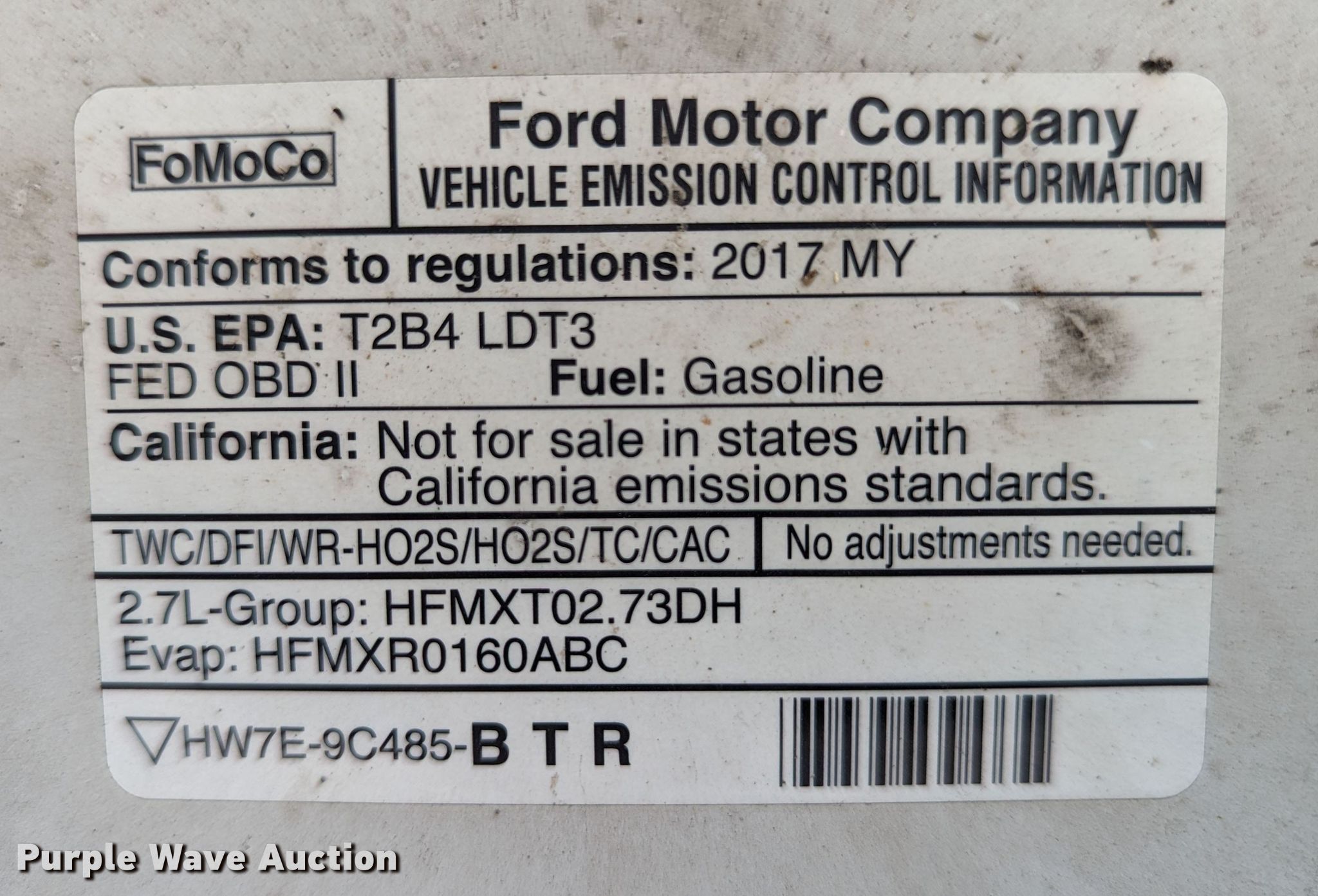 2017 Ford F150 SuperCab pickup truck. Miles: 172,189 on odometer, VIN: 1FTEX1CP6HKD63340, Unit #: 102064. Engine Displacement: 2.7L V6 DOHC, Cylinders: 6, Fuel type: Gas. Transmission Automatic. Interior AC, Heat, Seat: Heated, Power driver, Power passenger, Heated mirrors, Power windows, Power locks, Cruise control, Backup camera. Tires Size: 265/60R18. Oklahoma title. Title distribution may be delayed up to 30 days from verification of funds. TLS, LLC. 13305 N Santa Fe Ave. Oklahoma City, OK 73114