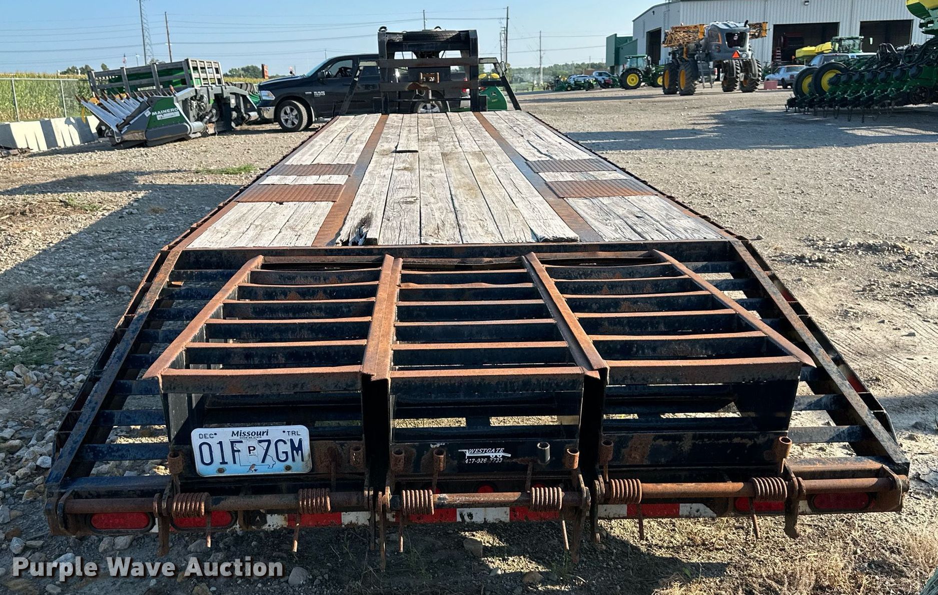 2013 Diamond T equipment trailer. VIN: 5FWFP3229DR015709. Dimensions Overall: 39' L x 102" W, Deck: 27' L x 102" W, Tail length: 5', Ramps: Manual Length: 5'. Features Deck type: Wood. Chassis Hitch: Gooseneck, Ball hitch: 2 5/16", Landing gear: Dual, Suspension: Spring, Brakes: Electric, Axles: Tandem, GAWR: 10,000 lbs. Tires Steel wheels, Size: 235/85R16. Missouri title. Title distribution may be delayed up to 30 days from verification of funds. Heritage Tractor. 2701 US-24. Topeka, KS 66618
