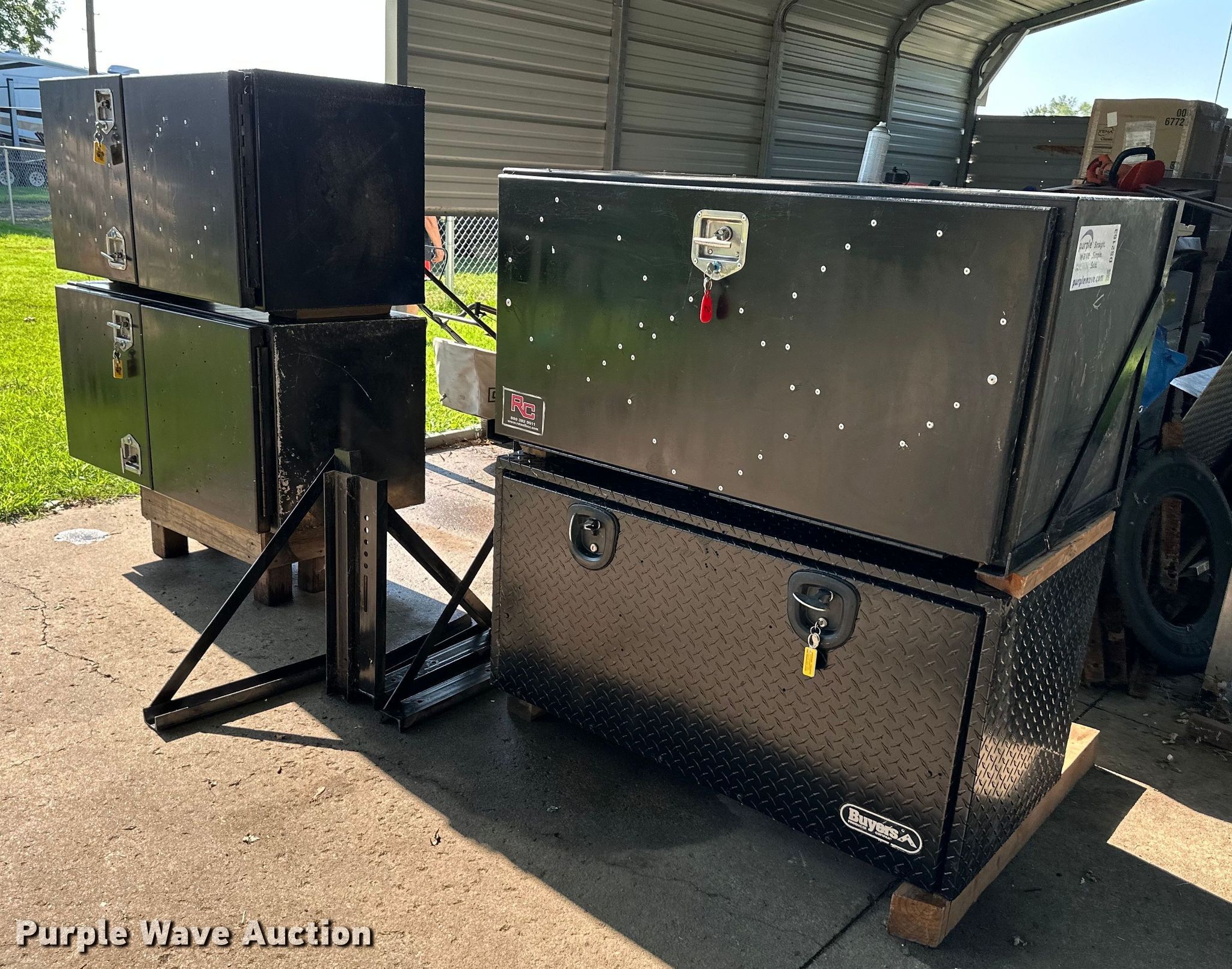 Purple Wave is selling a used Truck Part and Attach. in Kansas. This item is a (4) toolboxes with the following: 48" L x 22" W x 24" H