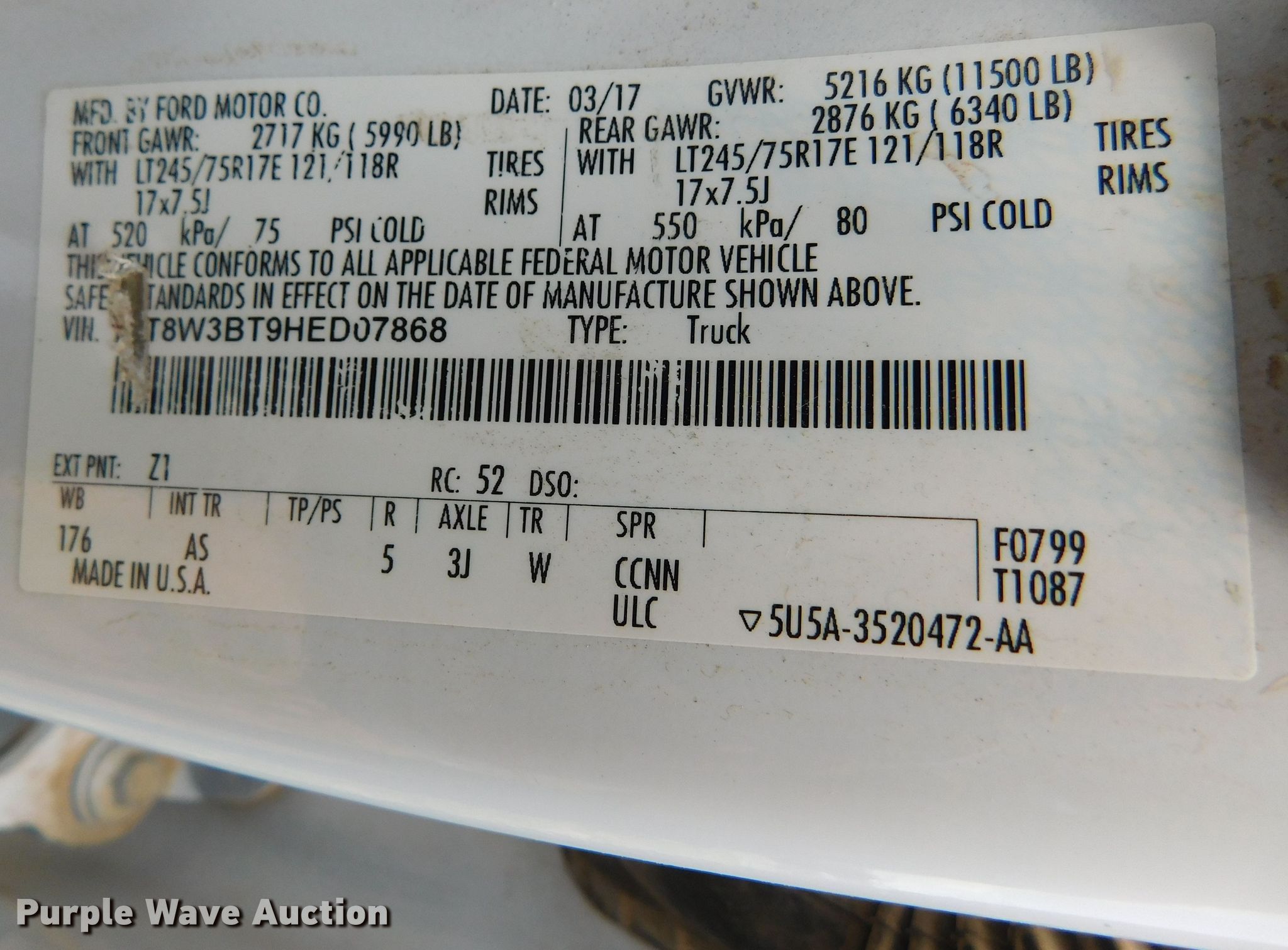 - VIN: 1FT8W3BT9HED07868