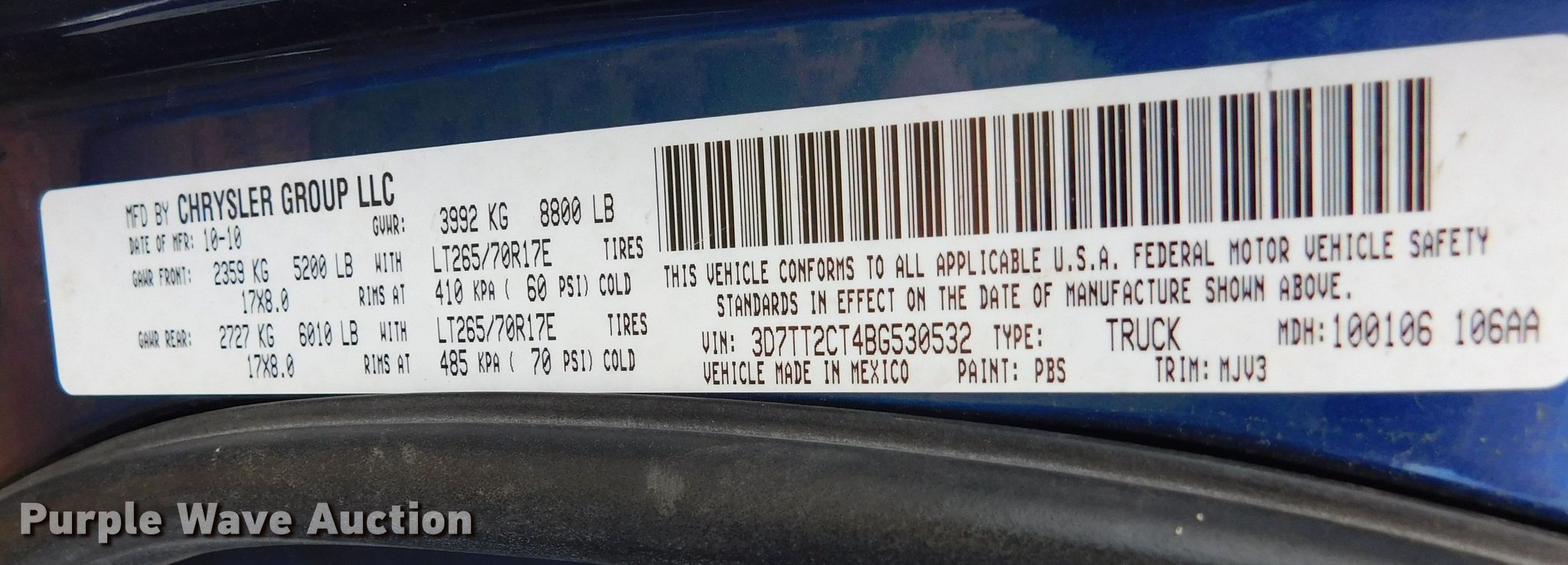 Take a look at this used 2011 Dodge Ram 2500 Crew Cab pickup truck being sold on August 30th, 2023 in the SOLD! August 30 Vehicles and Equipment Auction made by Dodge. Take a look at all of the item information below or take a look at similar auctions for Pickups and Vans.